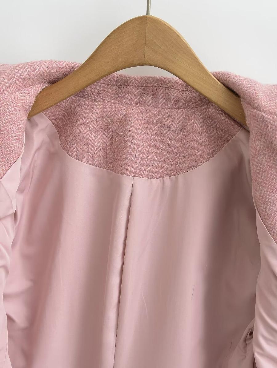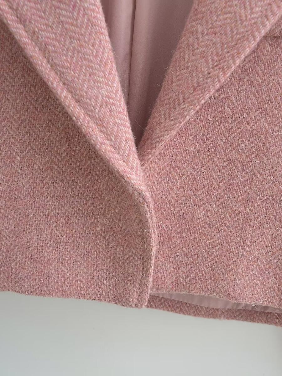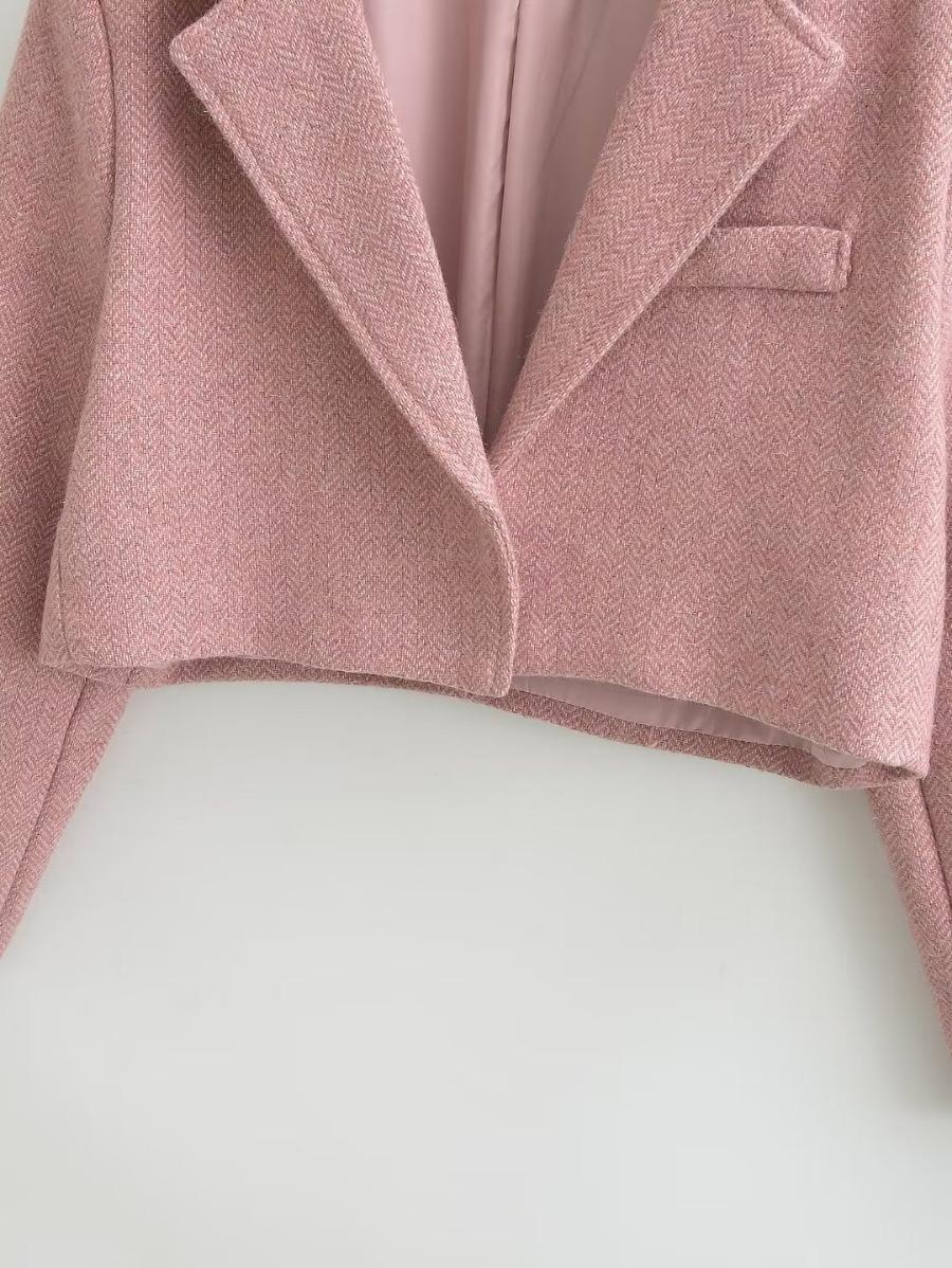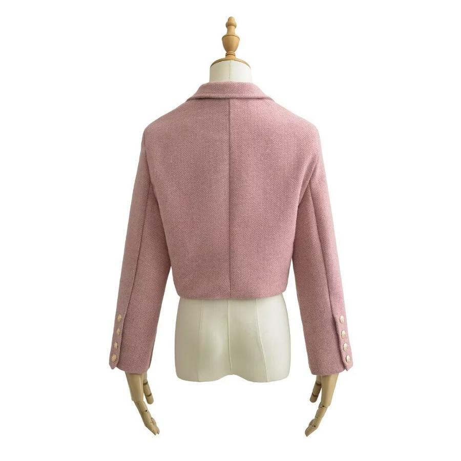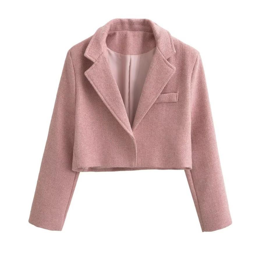 Estilo Europeo y Americano Chica Caliente Retro Solapa Manga Larga Chaqueta Corta Top de Traje Versátil de Nuevo Estilo para Otoño e Invierno para Mujer