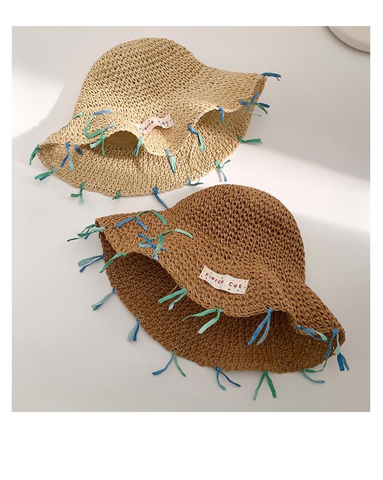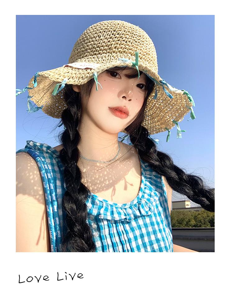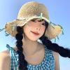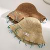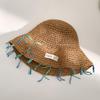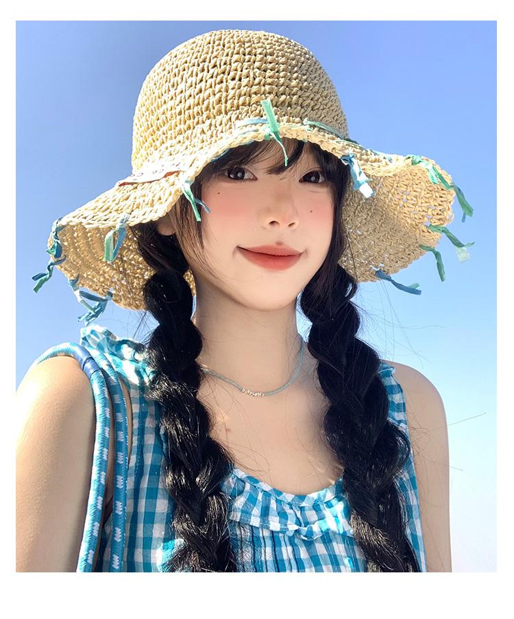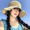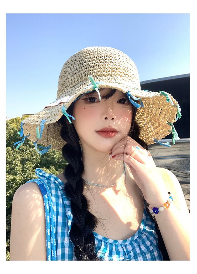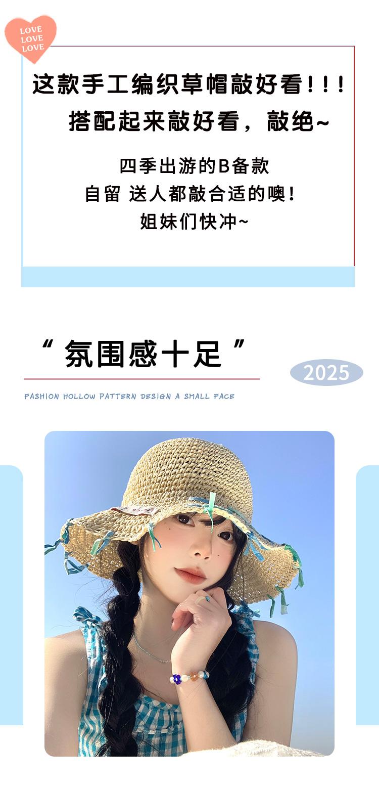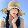Sombrero de paja tejido a mano con cinta para mujer, sombrero de playa de ala grande para vacaciones en la playa, primavera y verano, sombrero de pescador