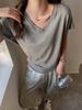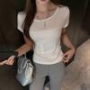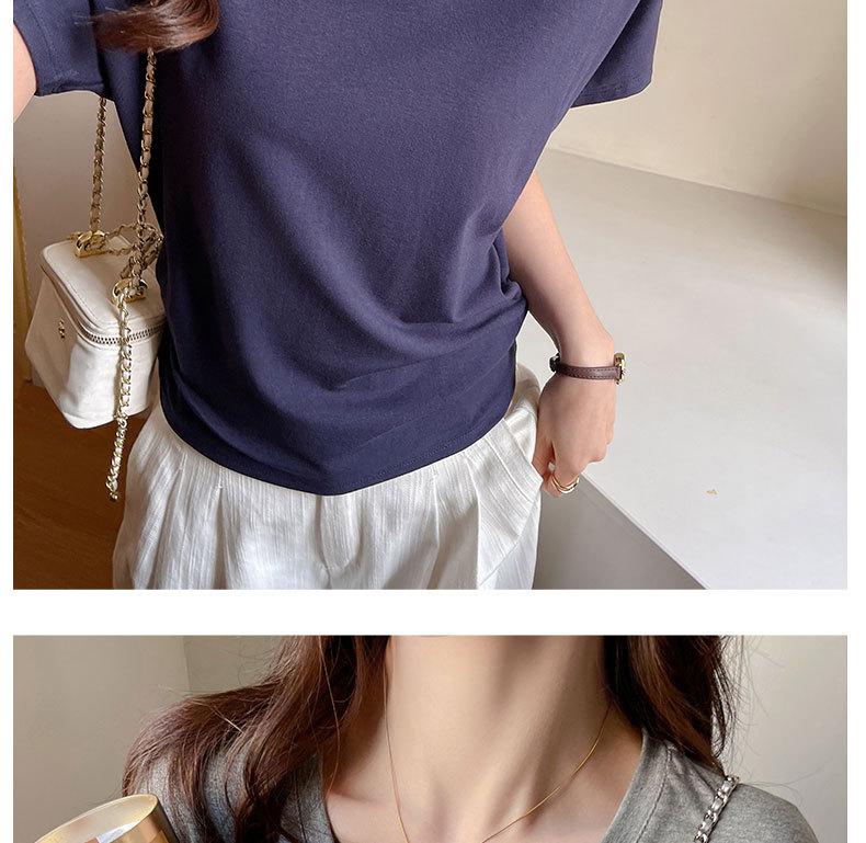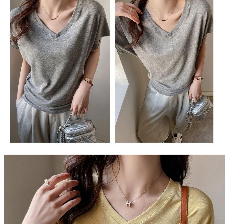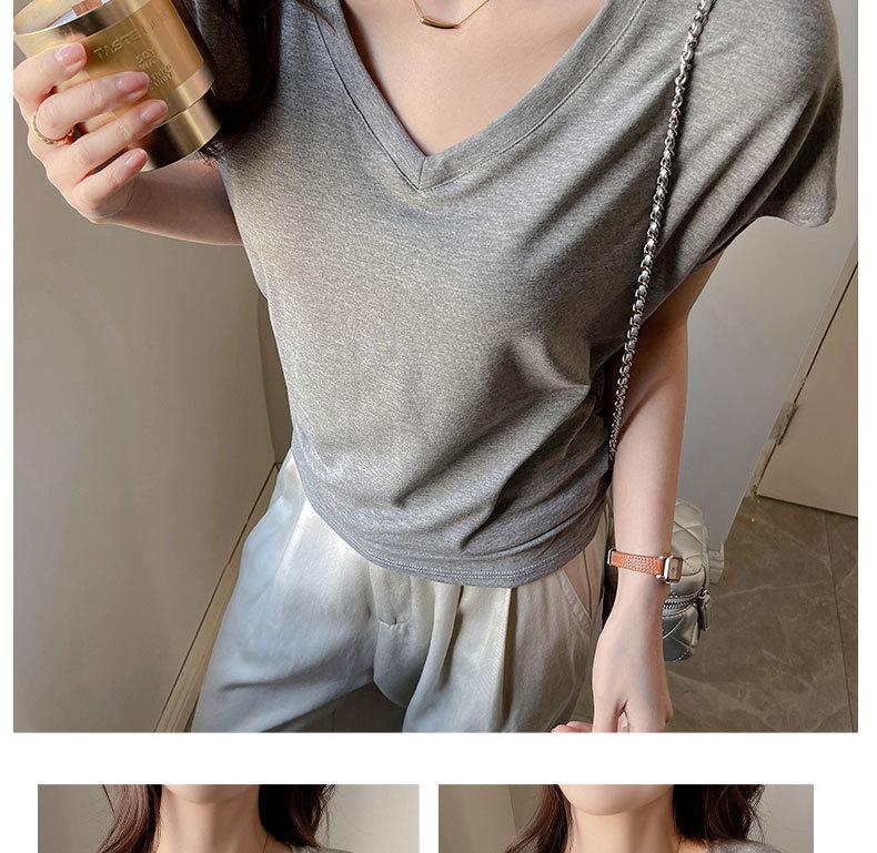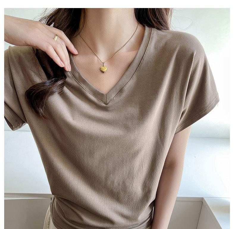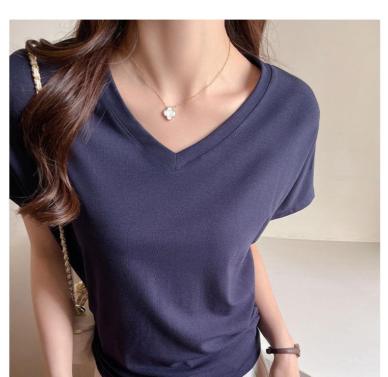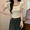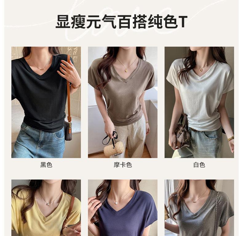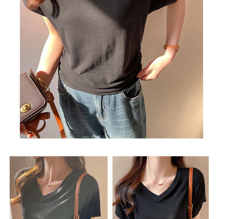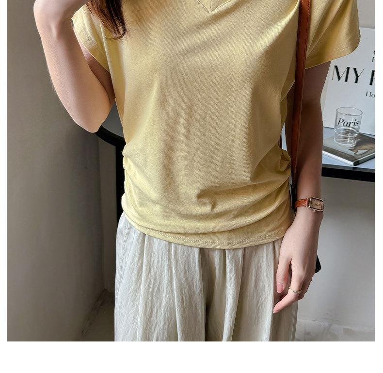 Camiseta de Manga Corta para Mujer con Hombro Derecho Descubierto, Diseño Nicho de Primavera y Verano, Cuello en V, Ajuste Adelgazante en la Cintura, Top Básico Negro Sexy Coreano