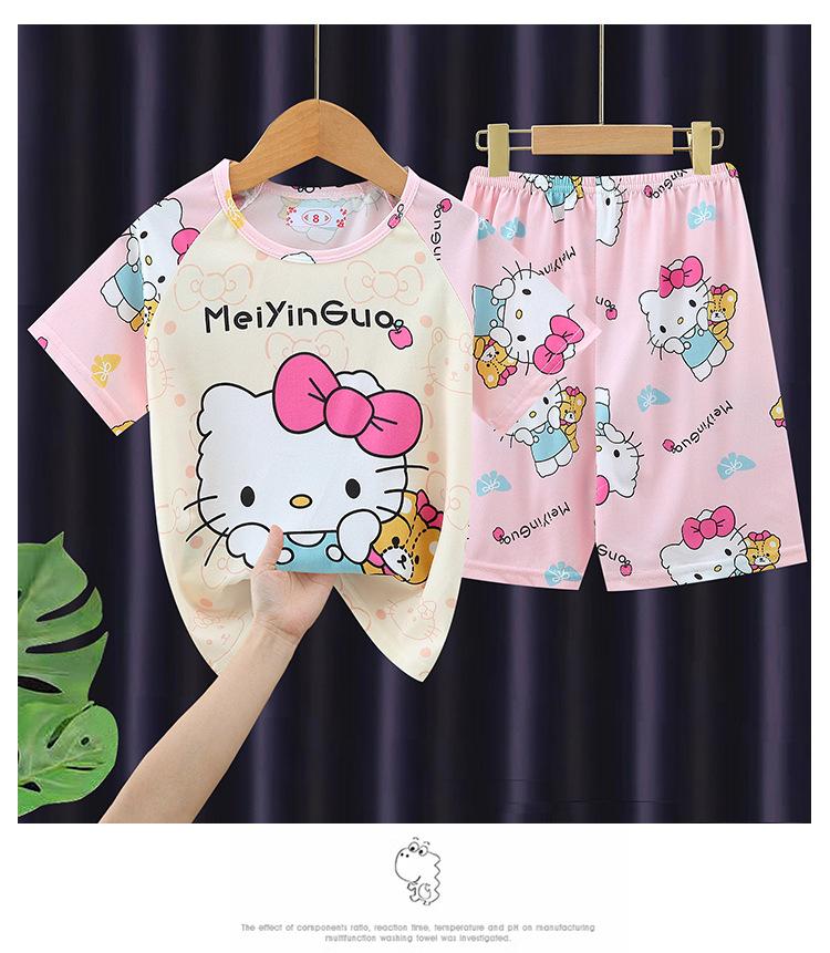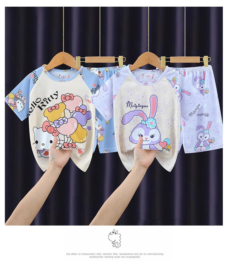 Pijamas de verano para niñas, de manga corta, finos, para niños y niñas, de talla mediana y grande, para el hogar, 2024