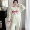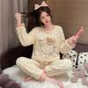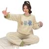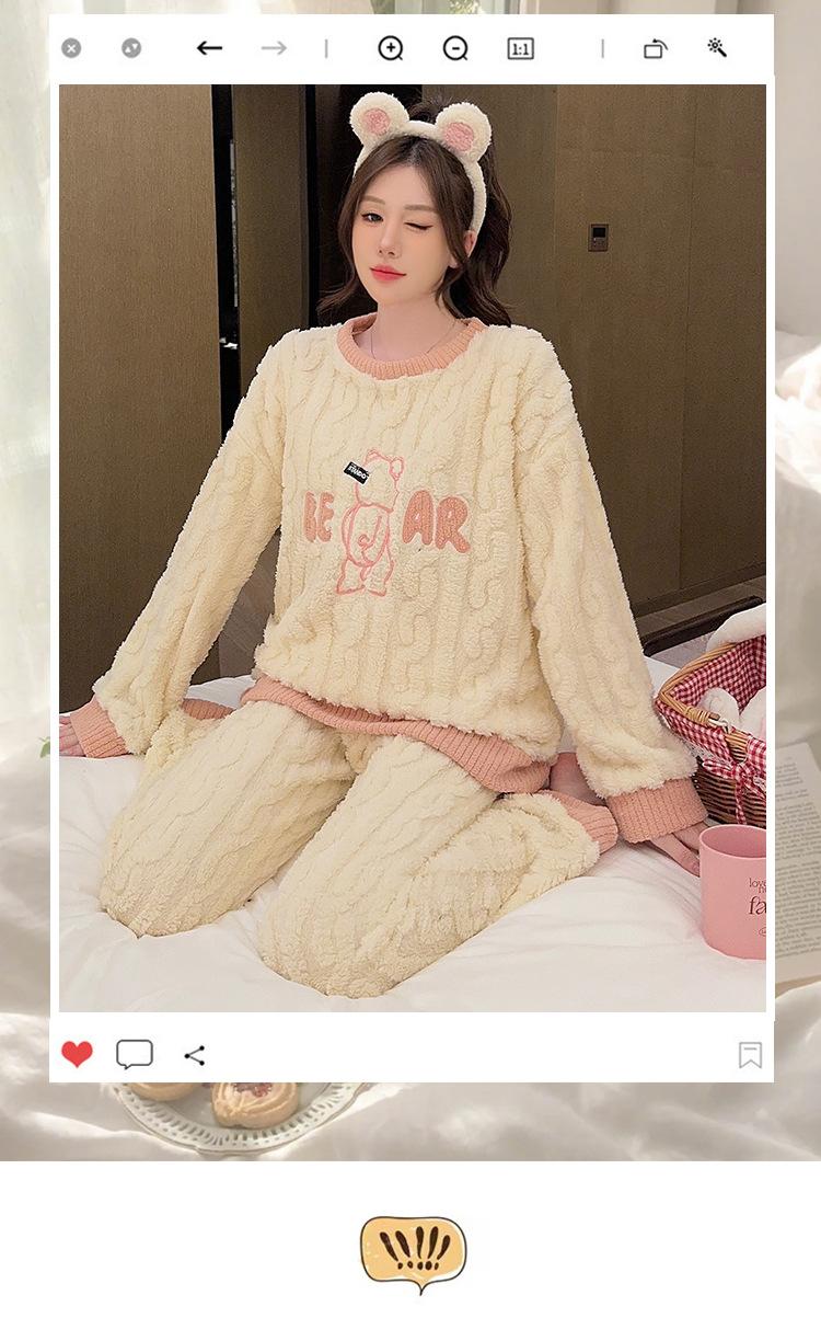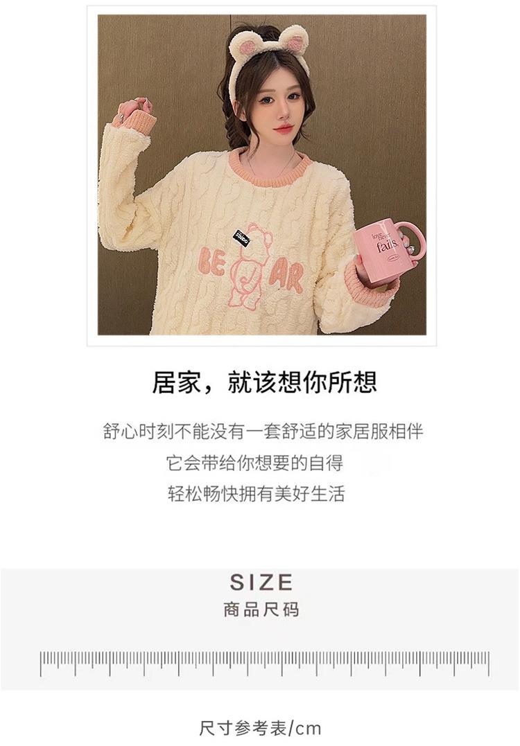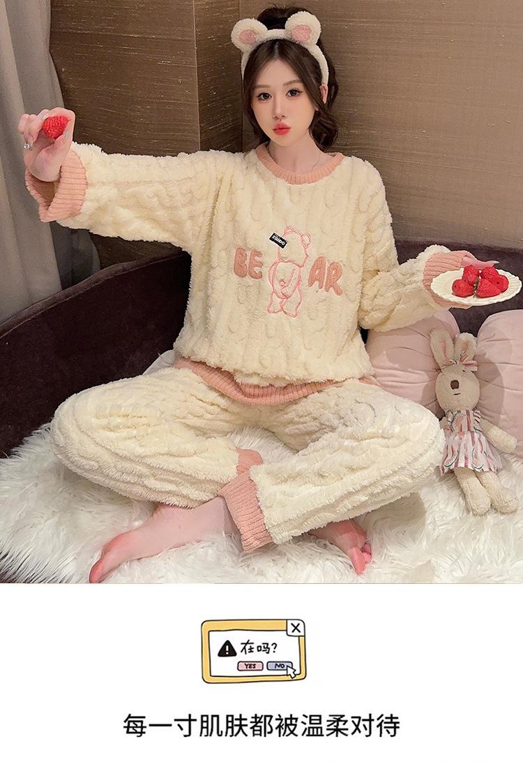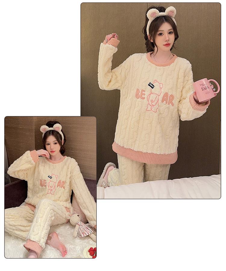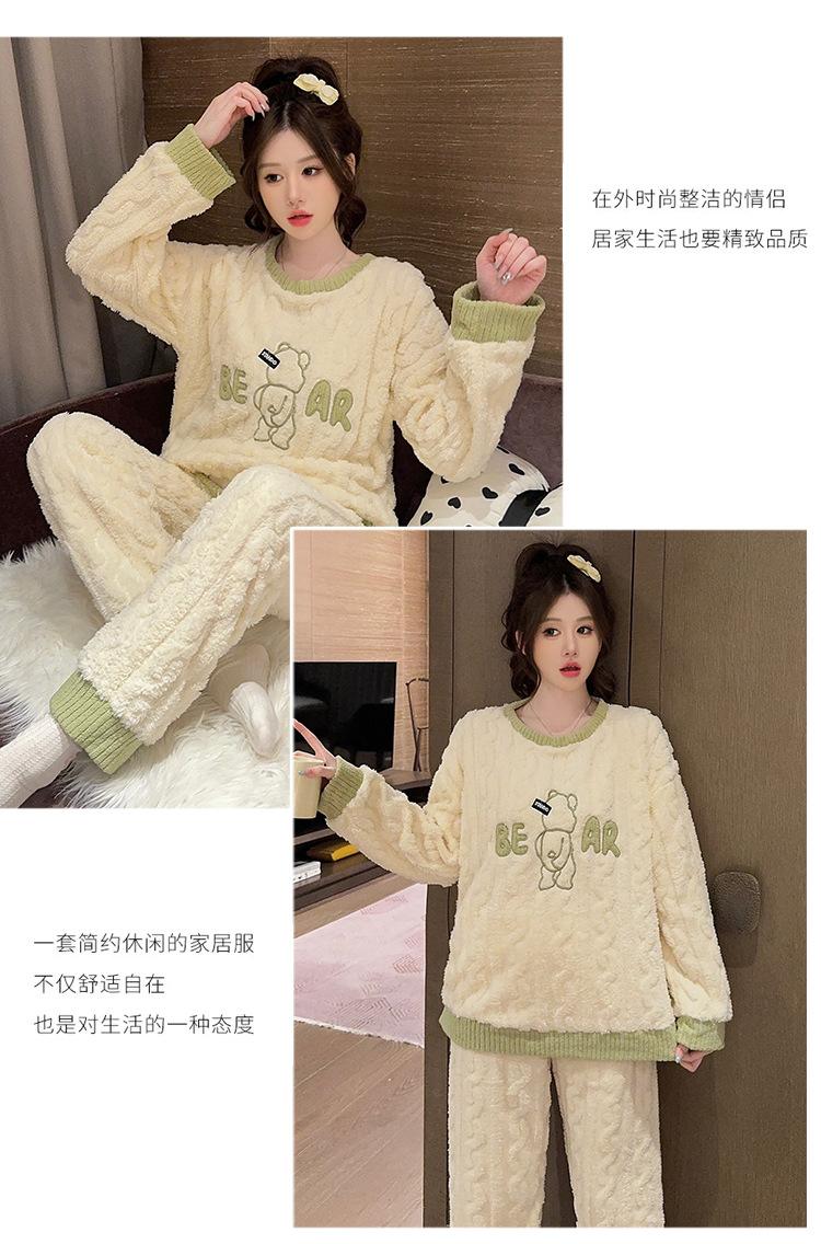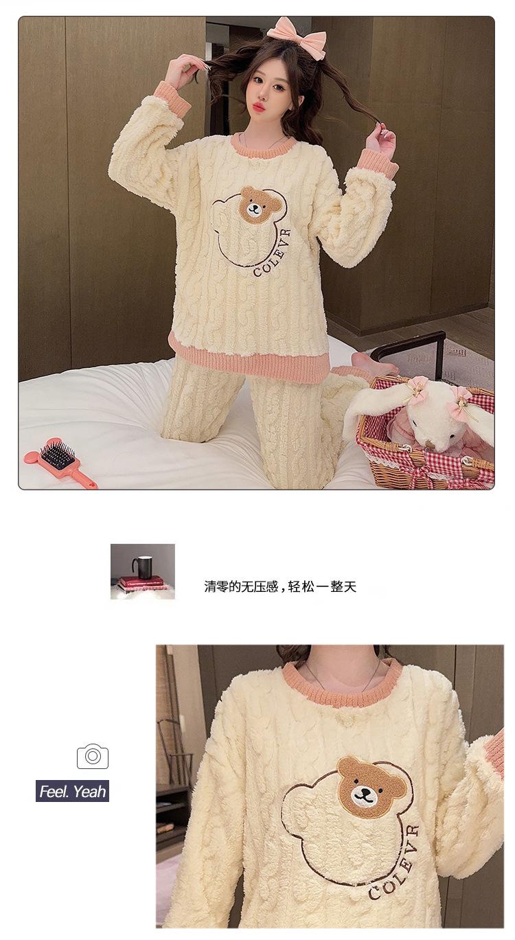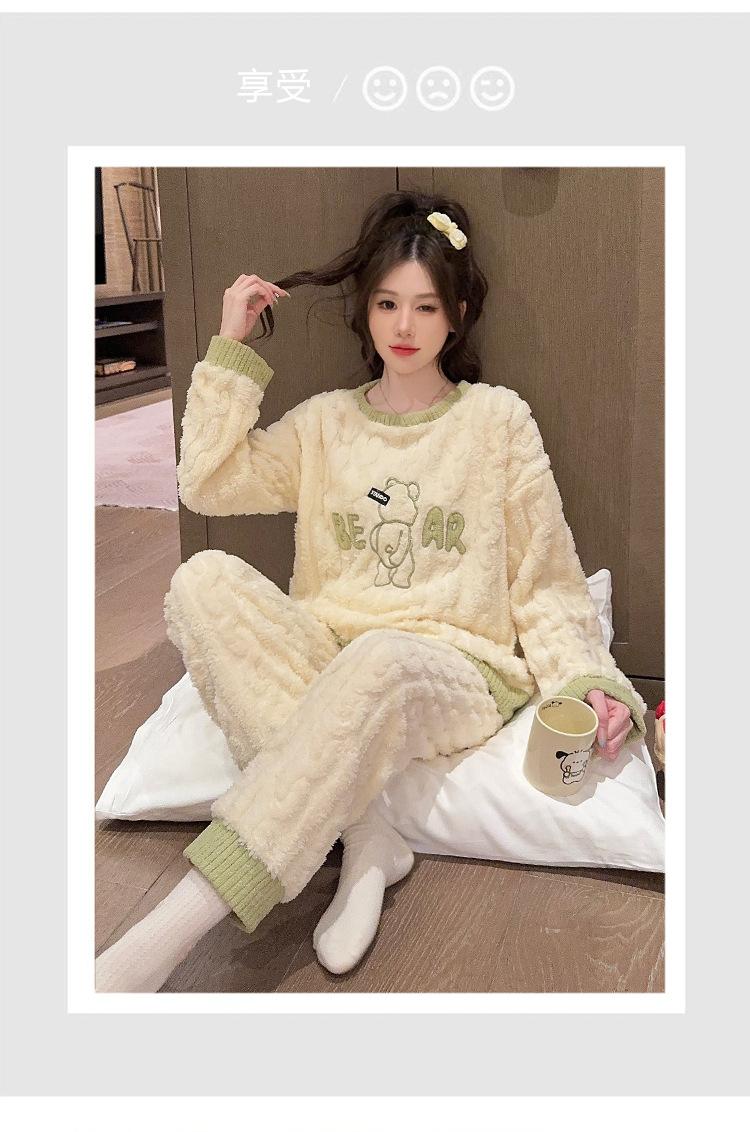 Pijamas de lana coral para mujer, otoño e invierno, nuevos pantalones de manga larga con cuello redondo, ropa de hogar cálida y gruesa con dibujos animados.