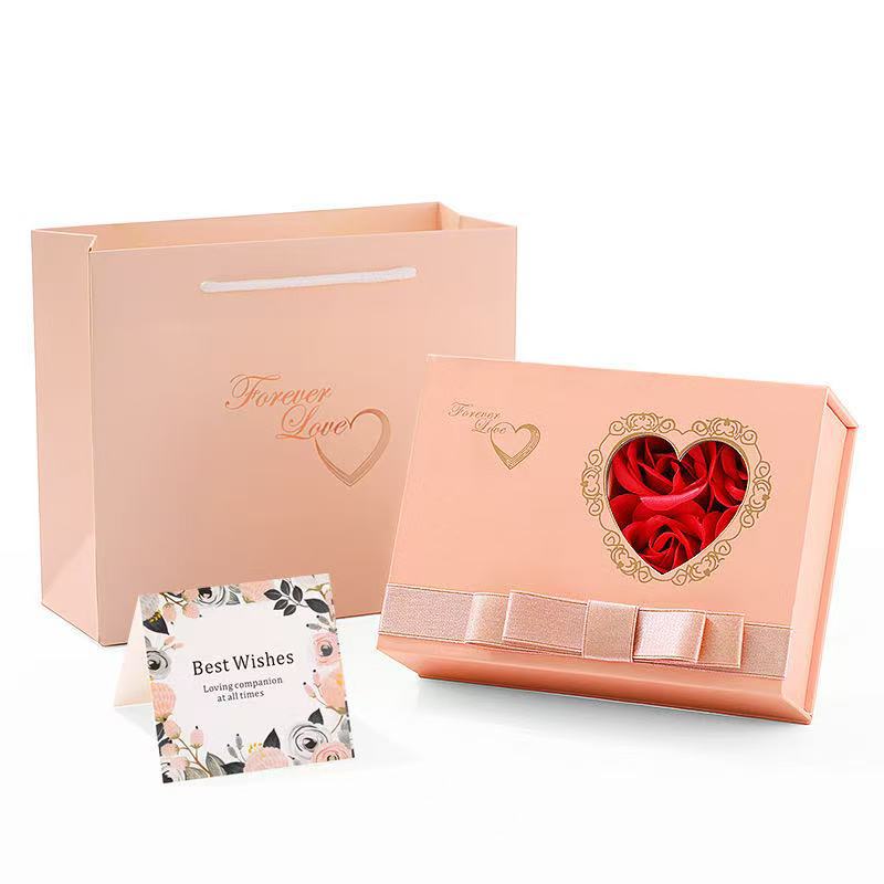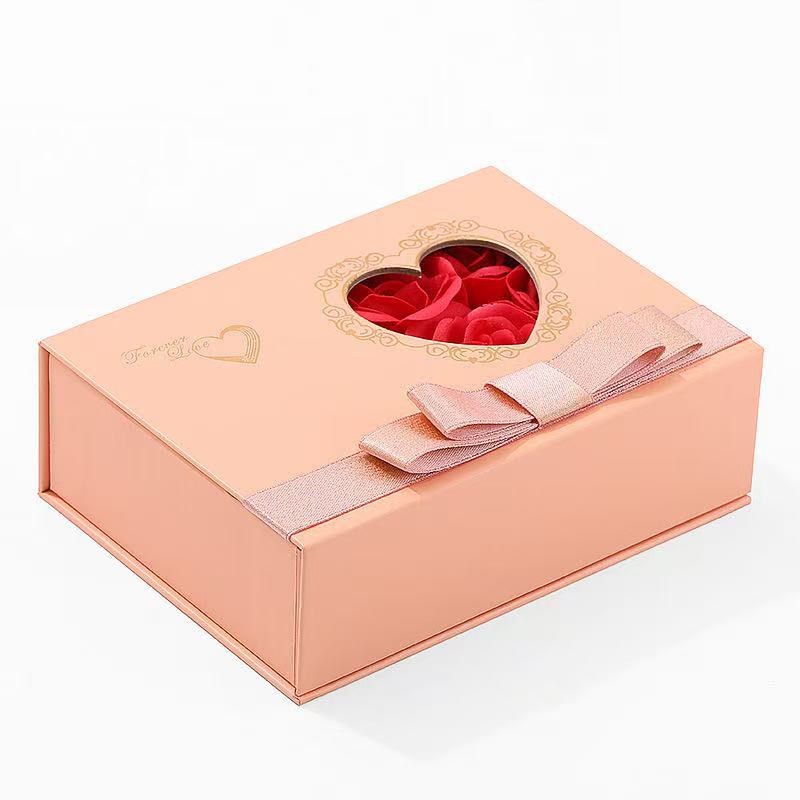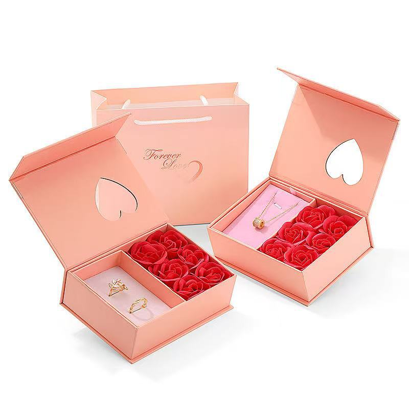 Caja de regalo magnética multifuncional con ventana rectangular y tapa abatible para guardar joyas, caja de regalo con rosas para San Valentín.