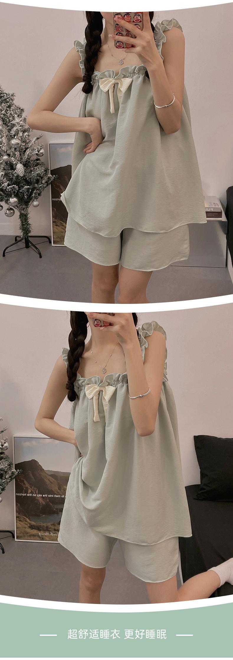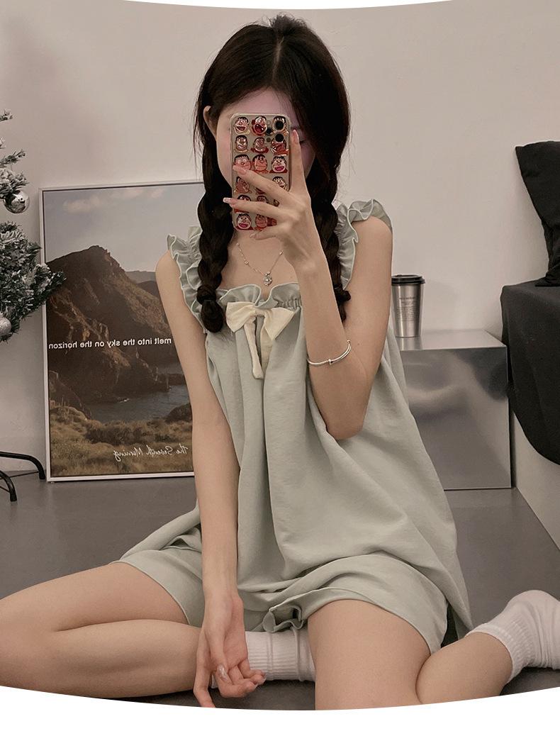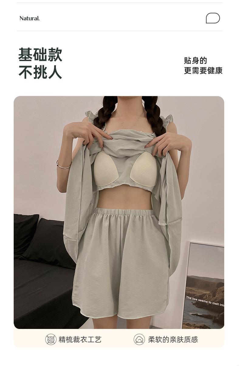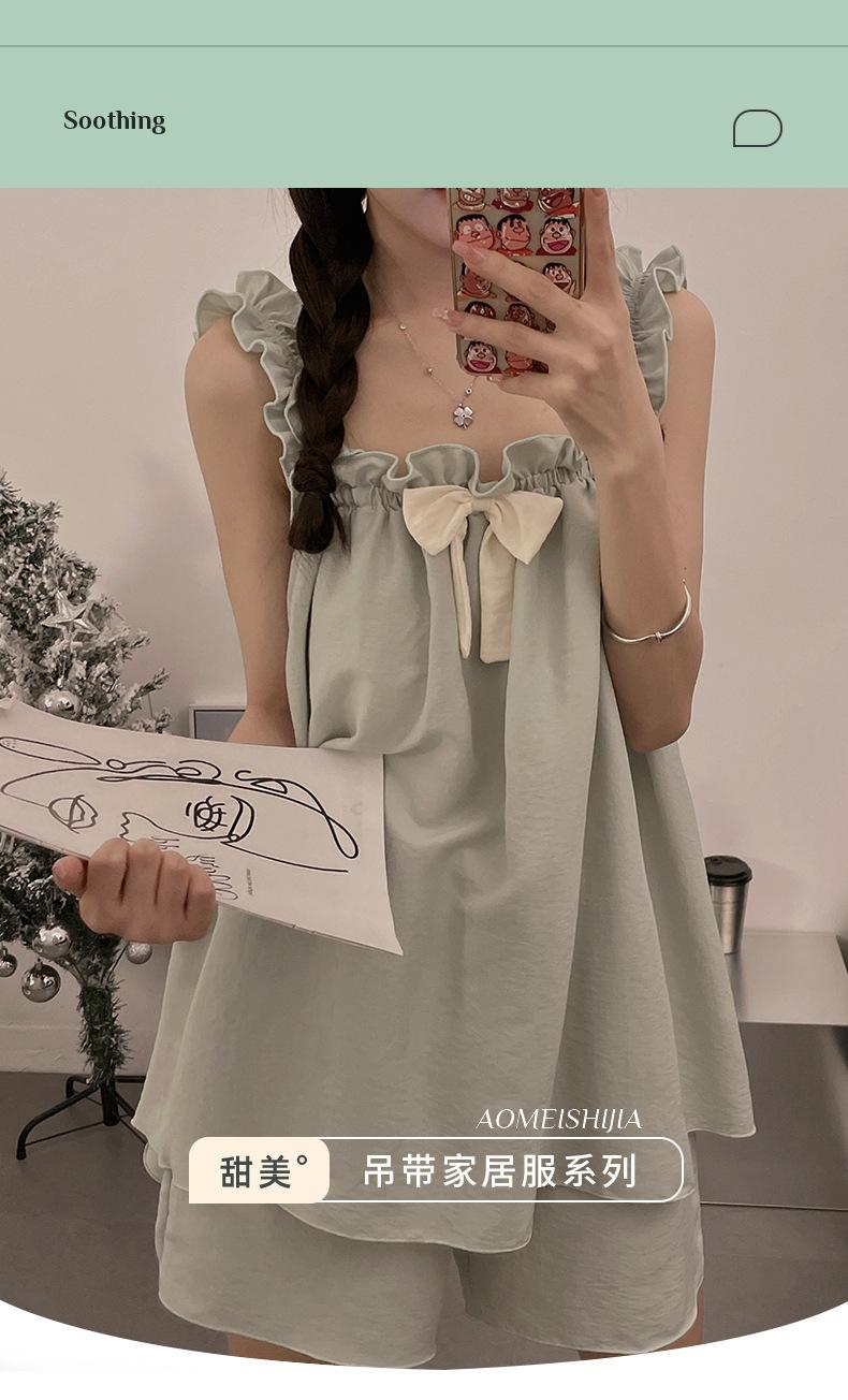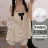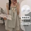 Pijama de Tirantes Xia Xin 2024 para Mujer con Set de Almohadillas para el Busto Algodón Burbuja Estilo Coreano Lindo Shorts de Tirantes Conjunto para el Hogar