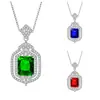 Collar Colgante de Piedra Preciosa Rectangular Diamante Nuevo y Elegante Más Vendido en Transmisión en Vivo, Diamante Sintético Azul, Rojo, Verde Turmalina Colgante de Diamante Cuadrado