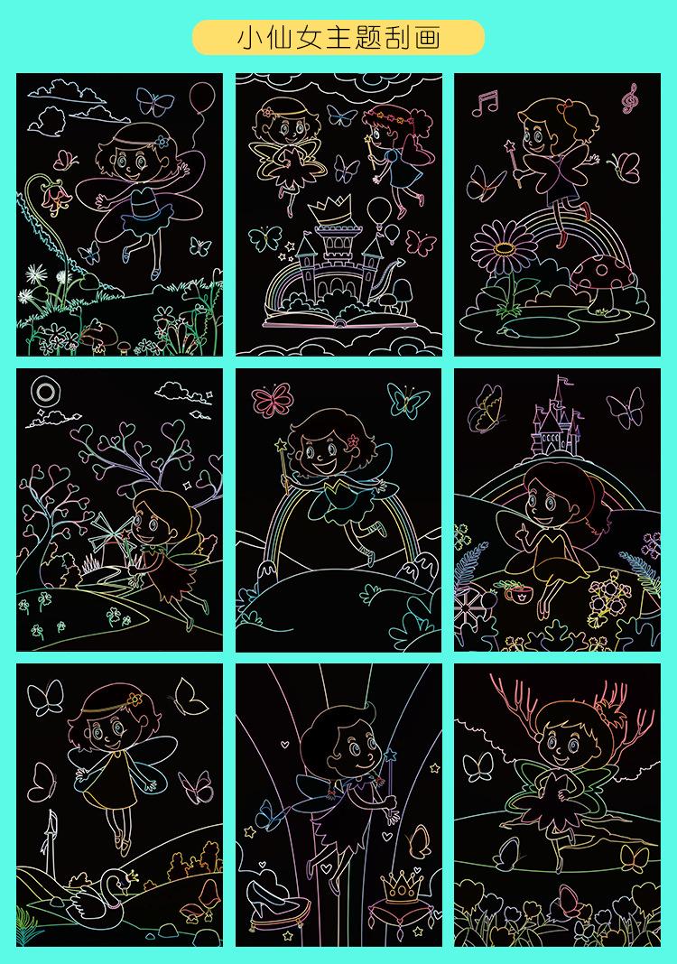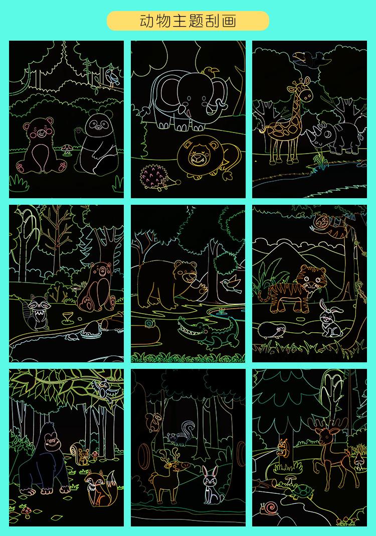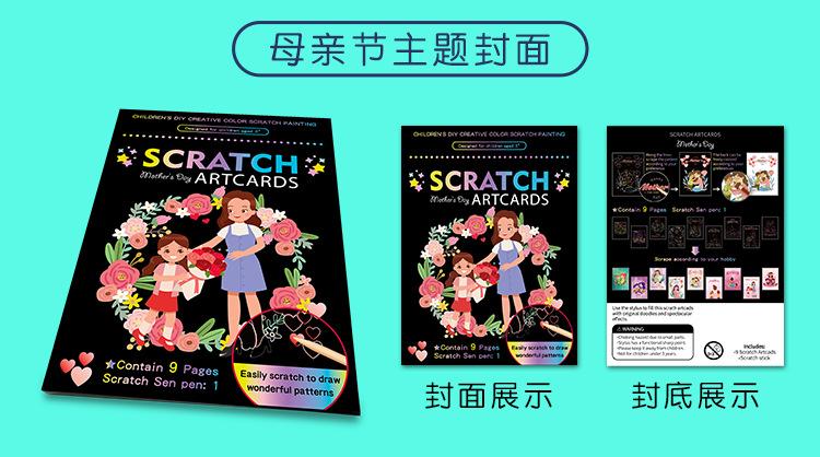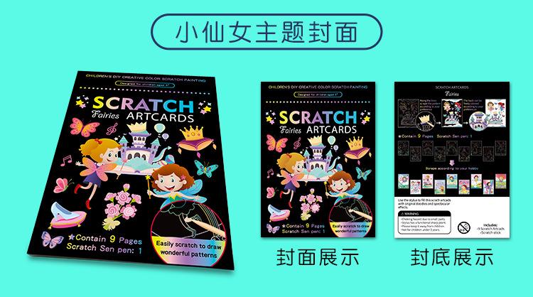 Pintura de Rascar Dibujos Animados para Niños Estudiante de Jardín de Infancia Arte Creativo DIY Graffiti Suministros Set Libro de Pintura de Rascar Colorido