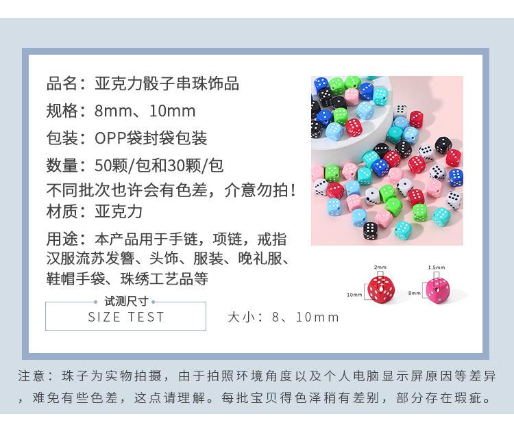 8mm randomly mixed colors, oblique hole diameter about 1.5mm, 50 pieces/pack