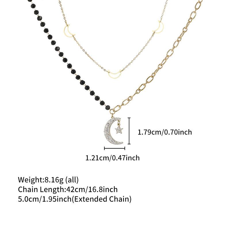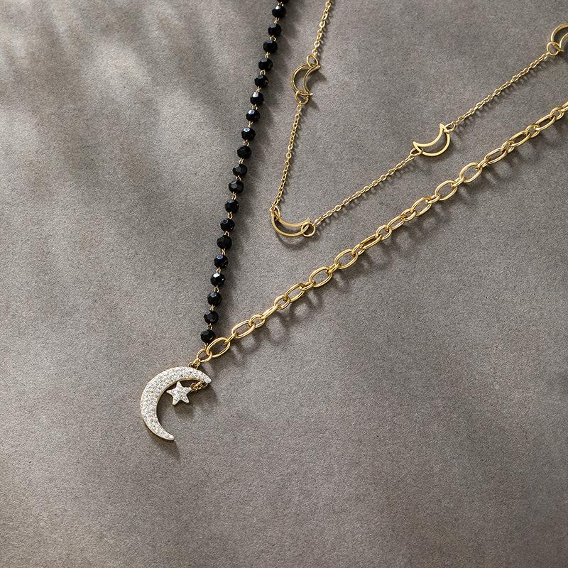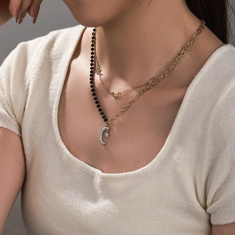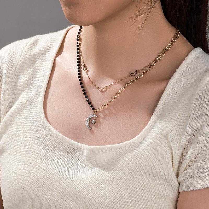 Collar de Cadena para Clavícula de Doble Capa con Diseño Nicho de Moda Nueva de Xuping Chapado en Oro de 14K con Cuentas Negras de Estrella Luna