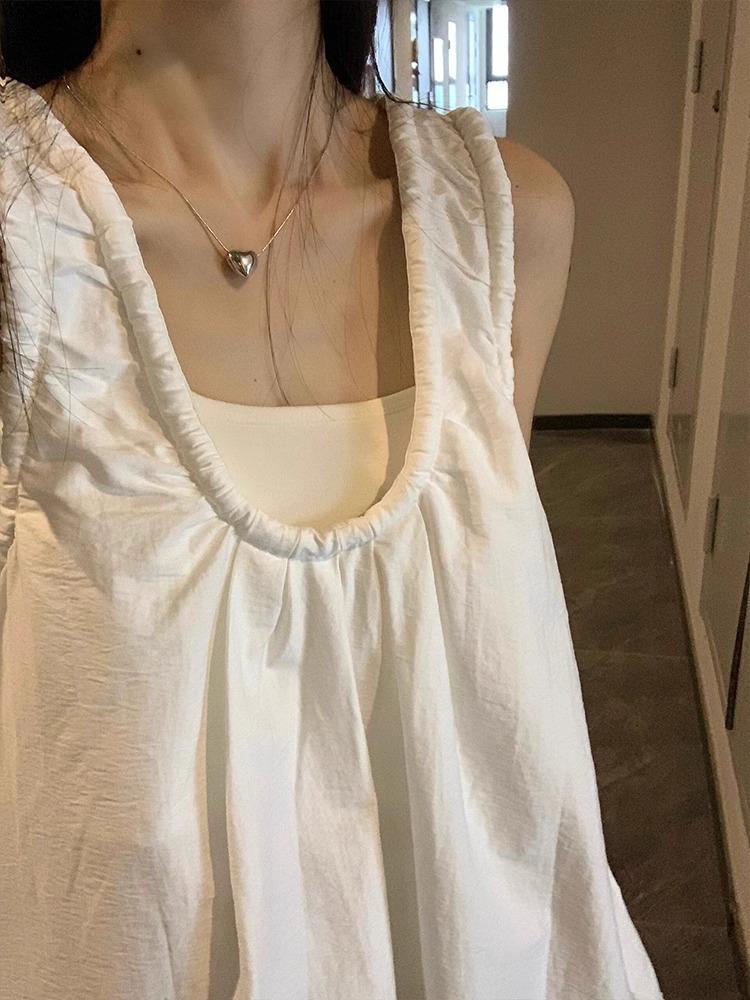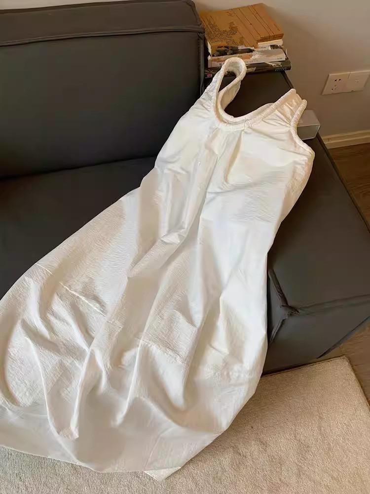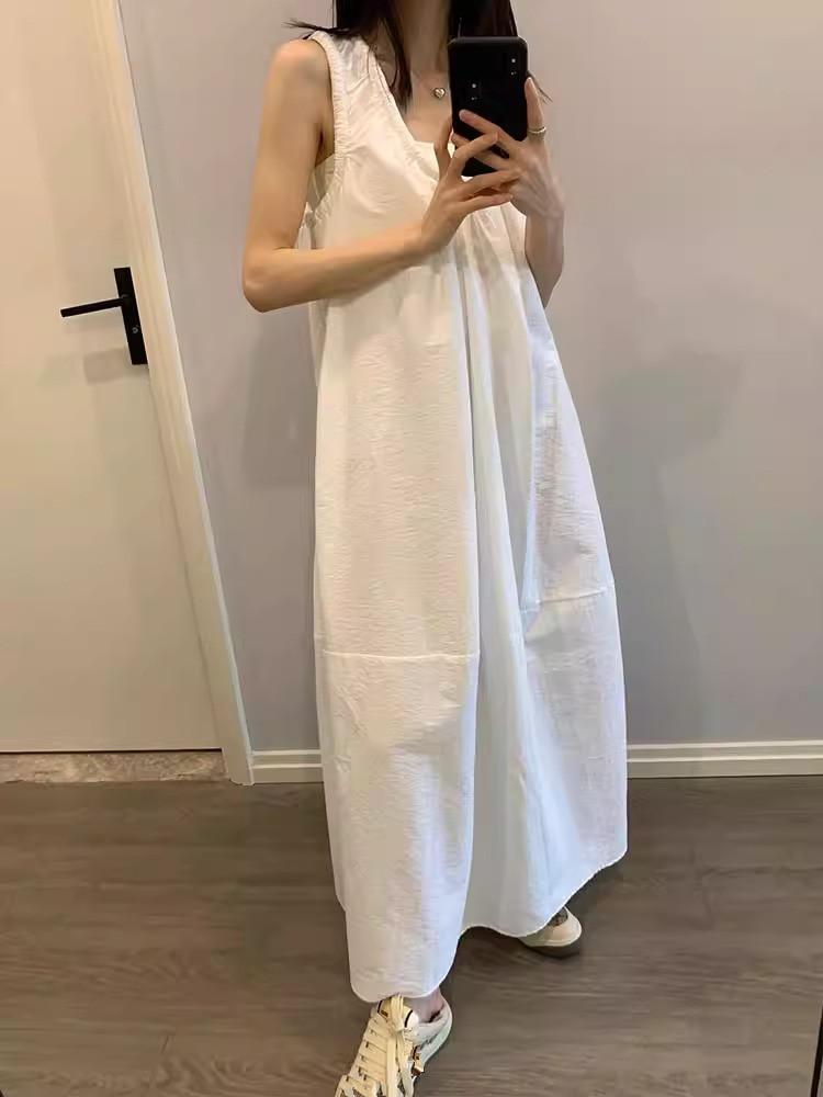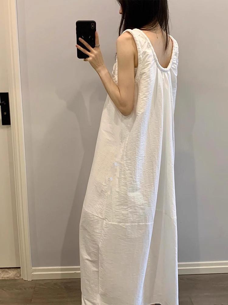 Vestido coreano blanco sin mangas para mujer Verano 2025 Nuevo estilo de vacaciones junto al mar Falda larga