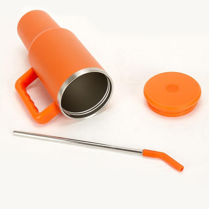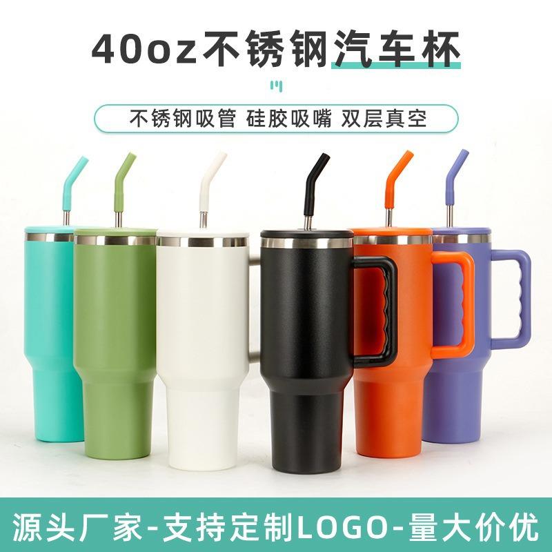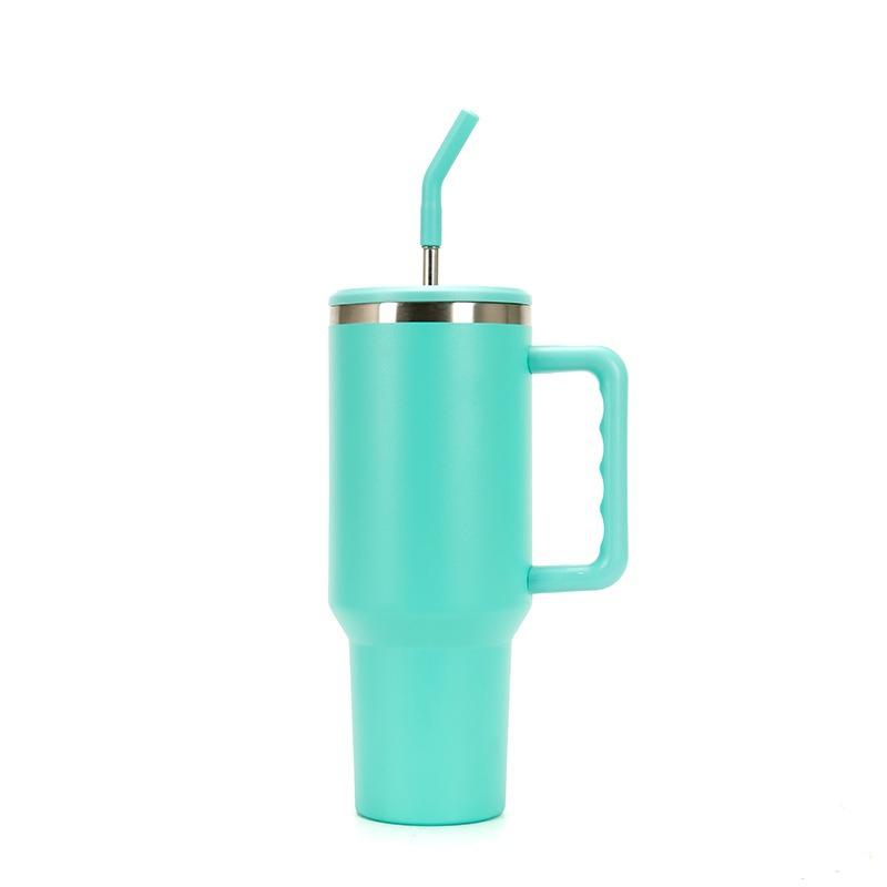 Vaso de Hielo Vaso para Coche Acero Inoxidable 304 40oz con Asa y Popote Vaso Aislado Portátil para Exterior Montado en Coche