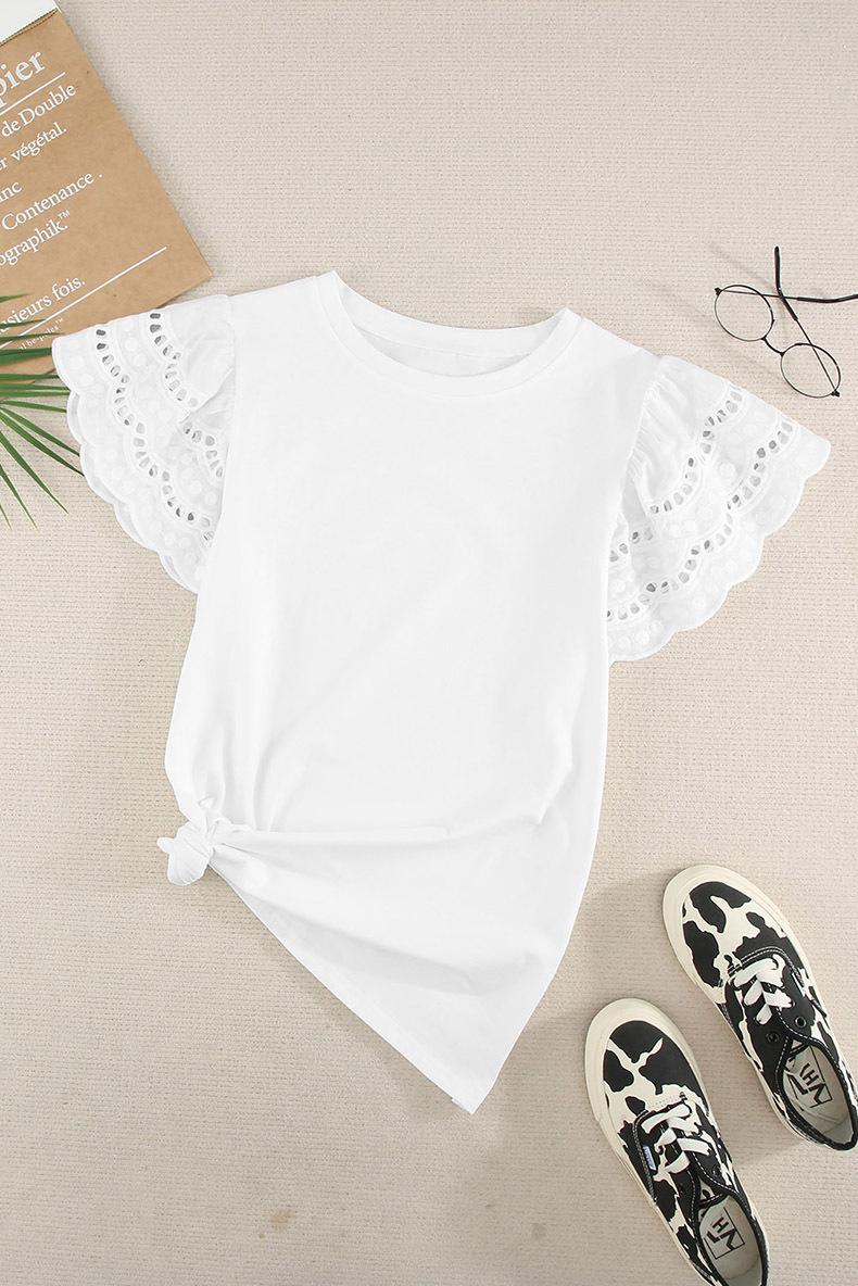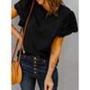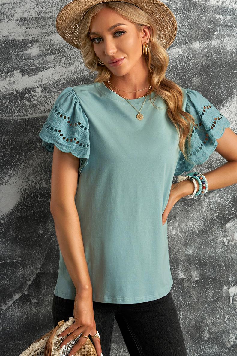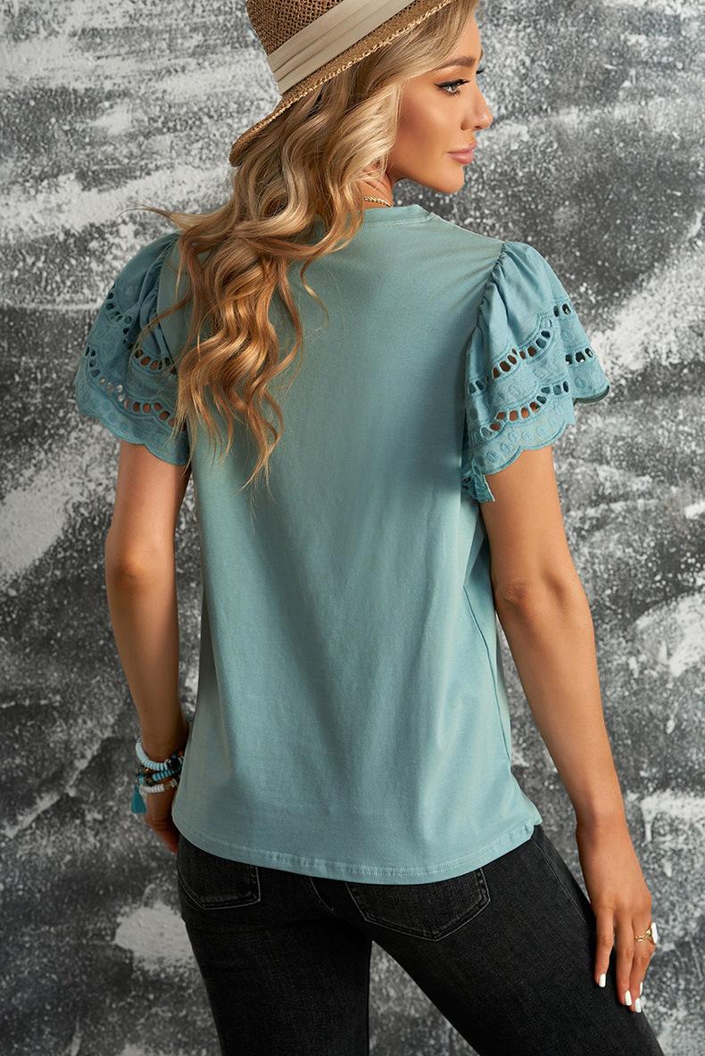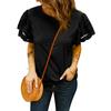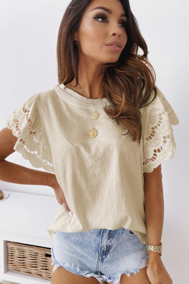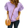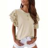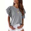 Verano nuevo encaje trompeta manga corta top mujer europeo y americano color sólido cuello redondo jersey top casual mujer una generación de cabello