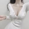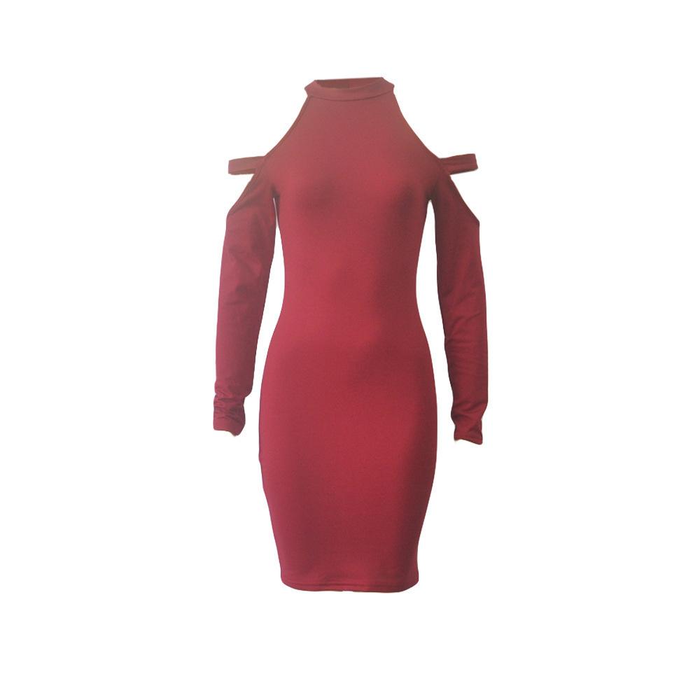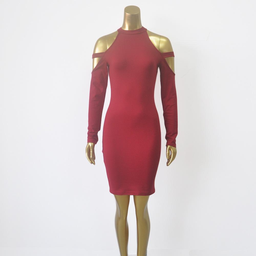 2025 Exportación Europea y Americana Nuevo Vestido de Noche Sexy Ajustado Elástico con Hombros Descubiertos de Manga Larga para Mujer