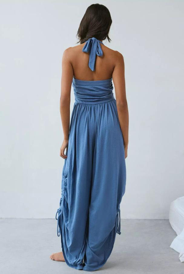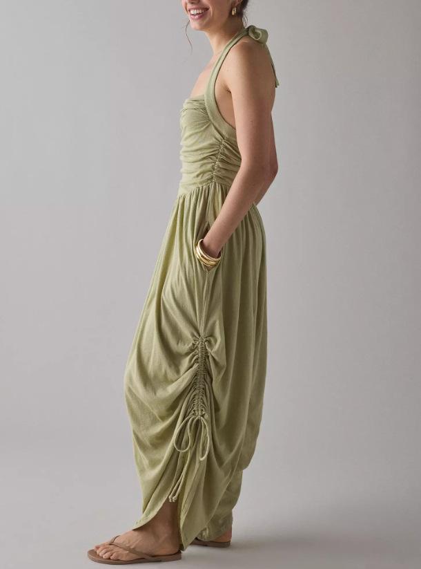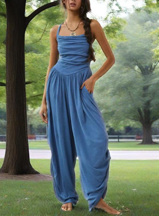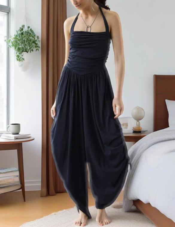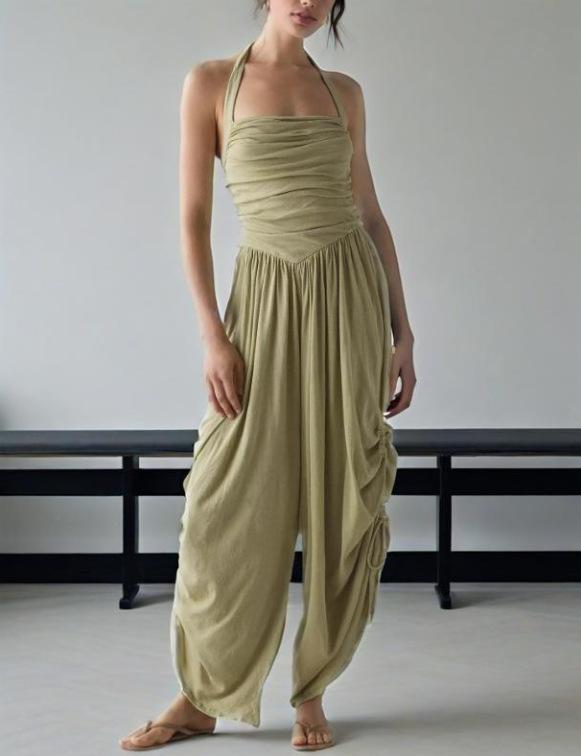 2025 Verano Nuevo Comercio Exterior Transfronterizo Mono Halter de Tirantes Sueltos Adelgazante con Cintura Plisada
