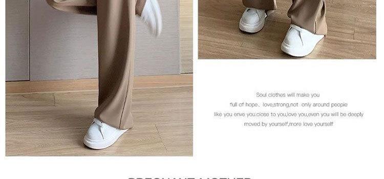 Pantalones para Mujeres Embarazadas Primavera y Verano Nuevo Ropa Exterior Delgada Principio de Embarazo Cintura Baja Casual Recto Traje Pantalones de Pierna Ancha