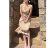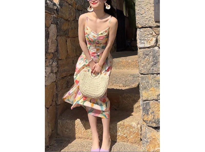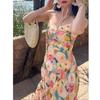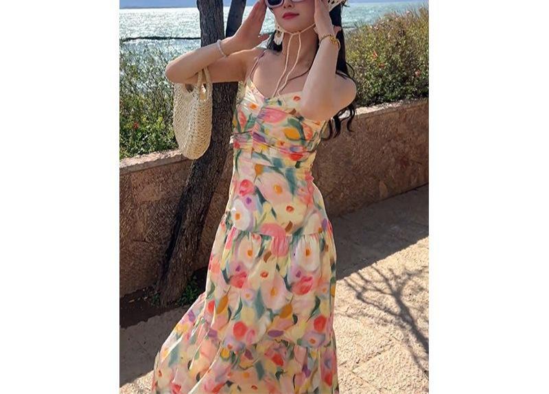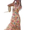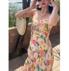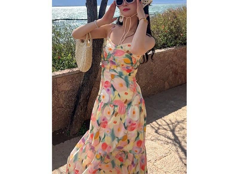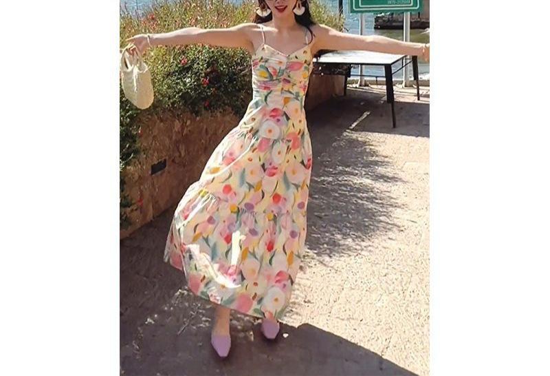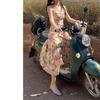 Pausa para el Té Pintura al Óleo Francesa Vestido Floral con Tirantes Verano 2025 Nuevo Vacaciones en la Costa Playa Vestido Largo
