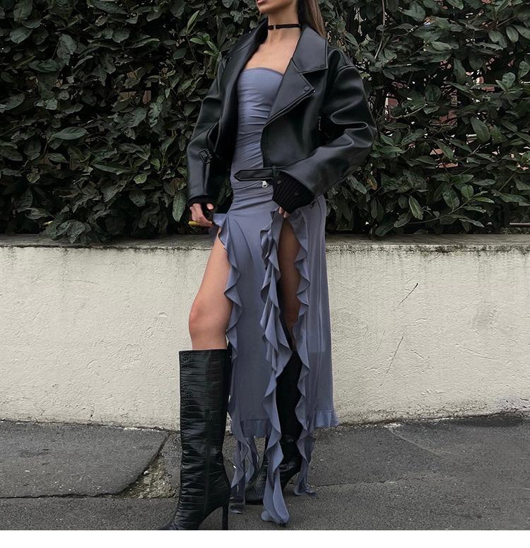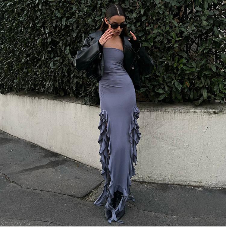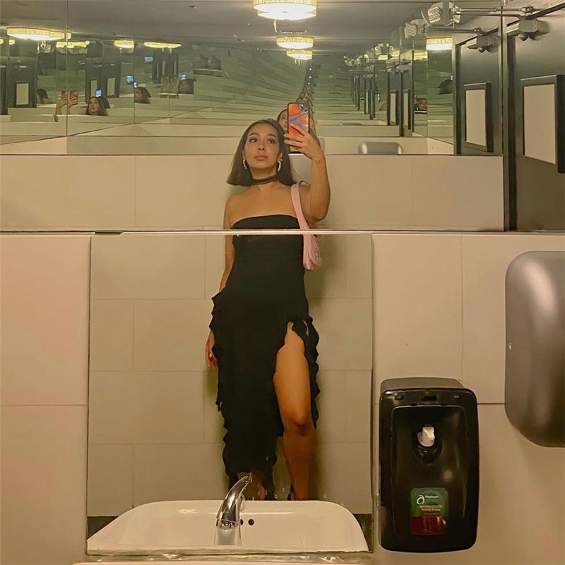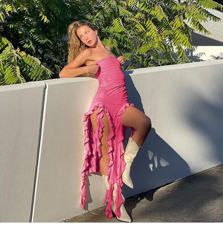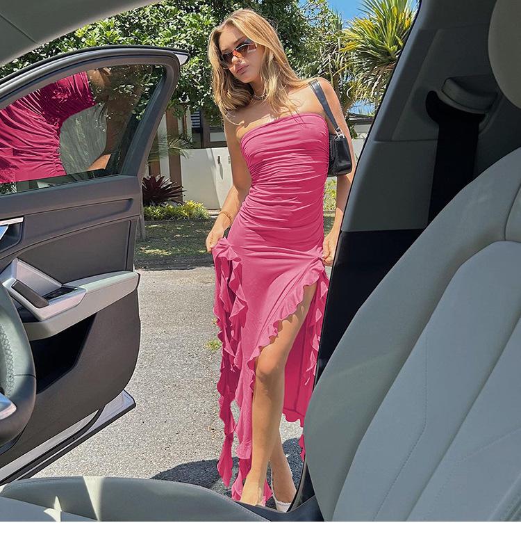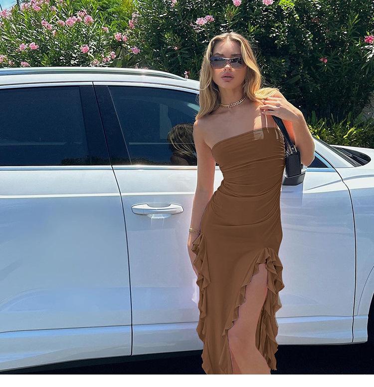 Tendencia de Moda Primavera Transfronteriza 2025 Nuevo Top Tubo de un Hombro para Mujer Vestido Irregular Slim que Cubre las Caderas