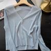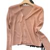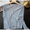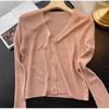Cárdigan de punto de manga larga de seda helada con protección solar para mujer Verano Popular Nuevo Color puro Celebridad de Internet Corto Aire acondicionado Exterior Primavera Top