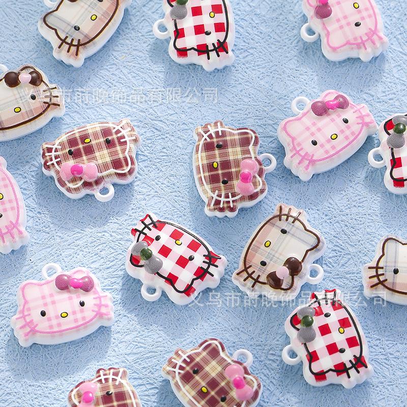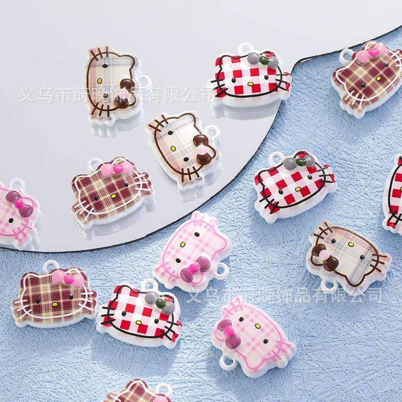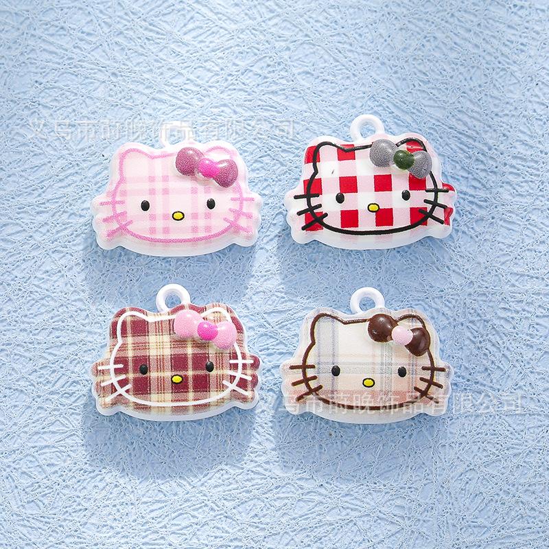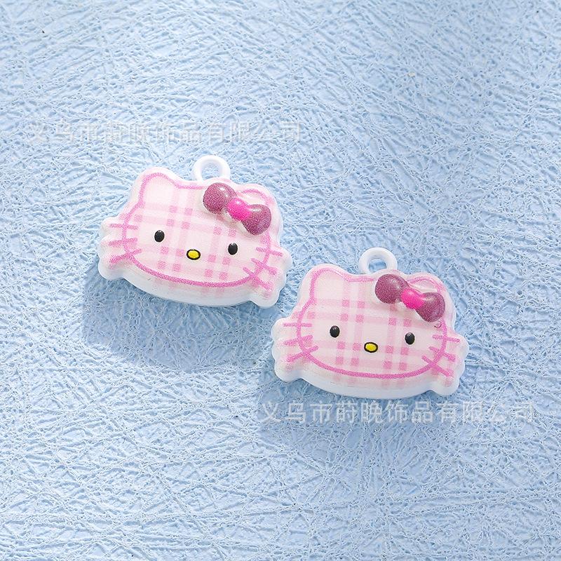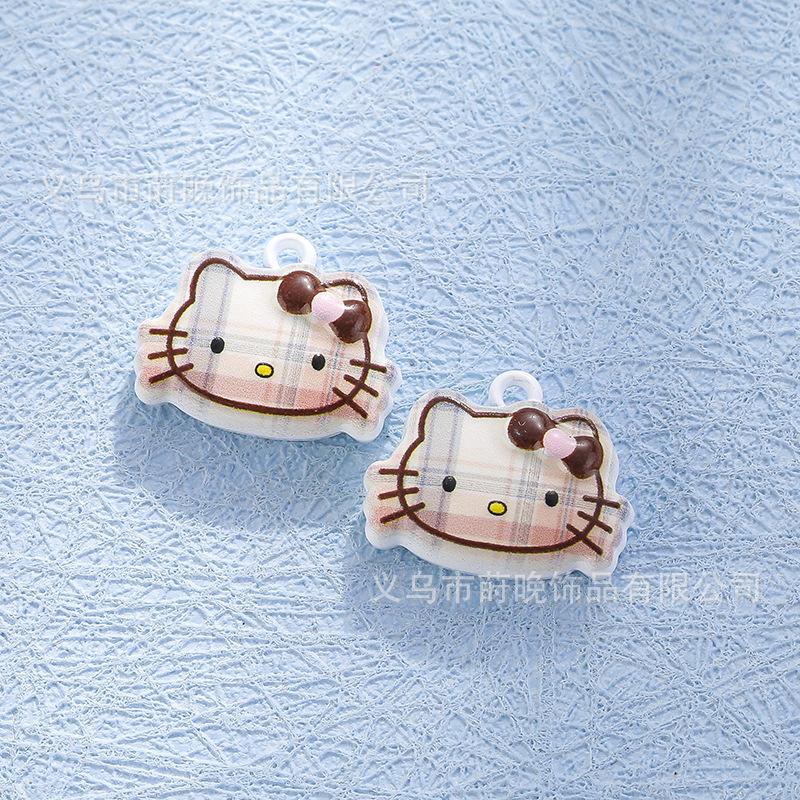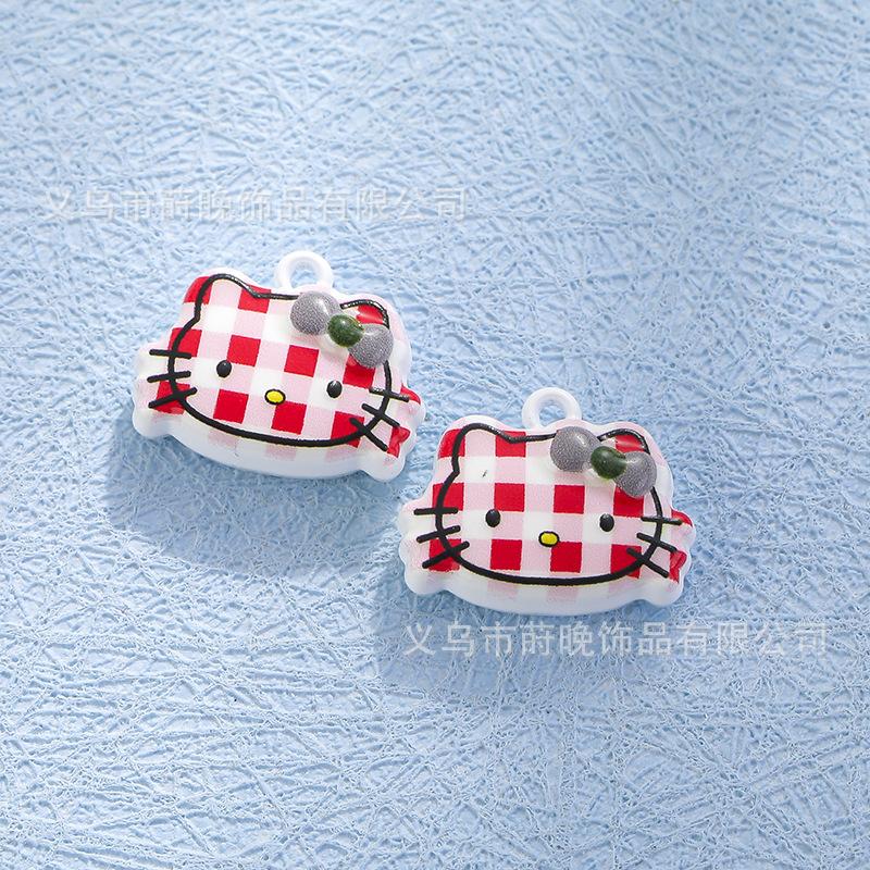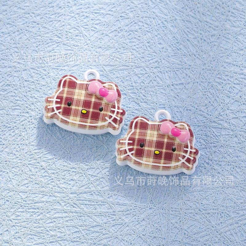 Aleación de Zinc Pintura Lindo Dibujos Animados Cuadros Cabeza de Gato KT Colgante DIY Cadena para Teléfono Móvil Llavero Accesorios para Pulsera