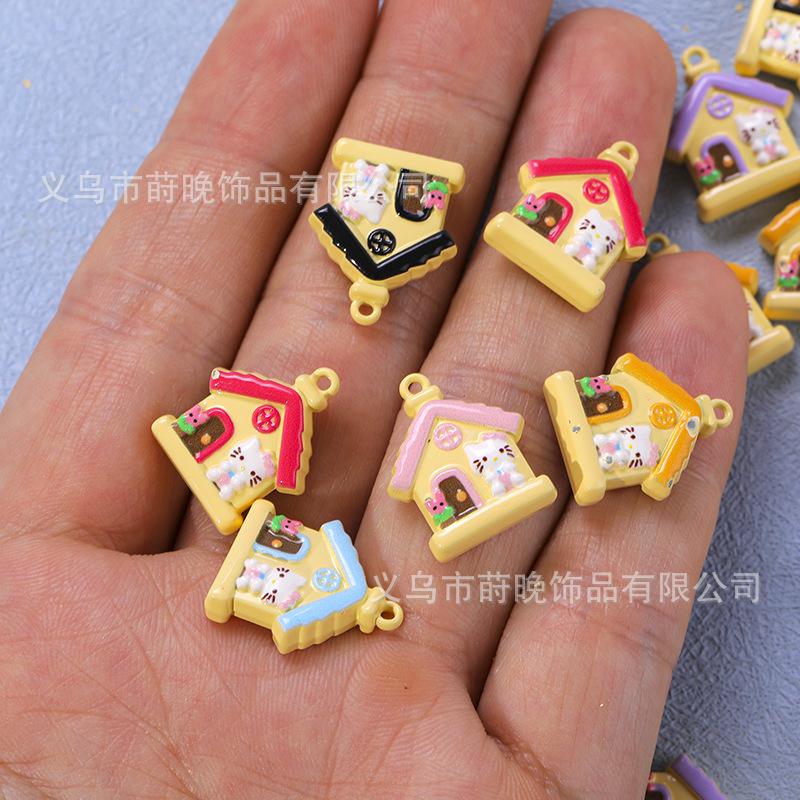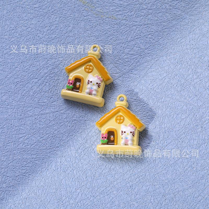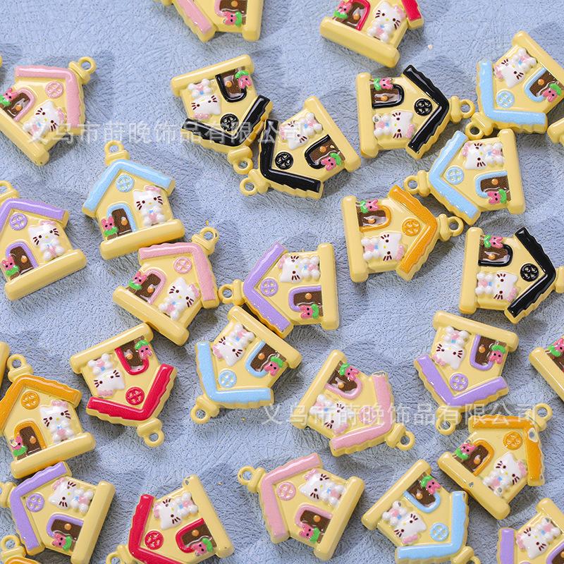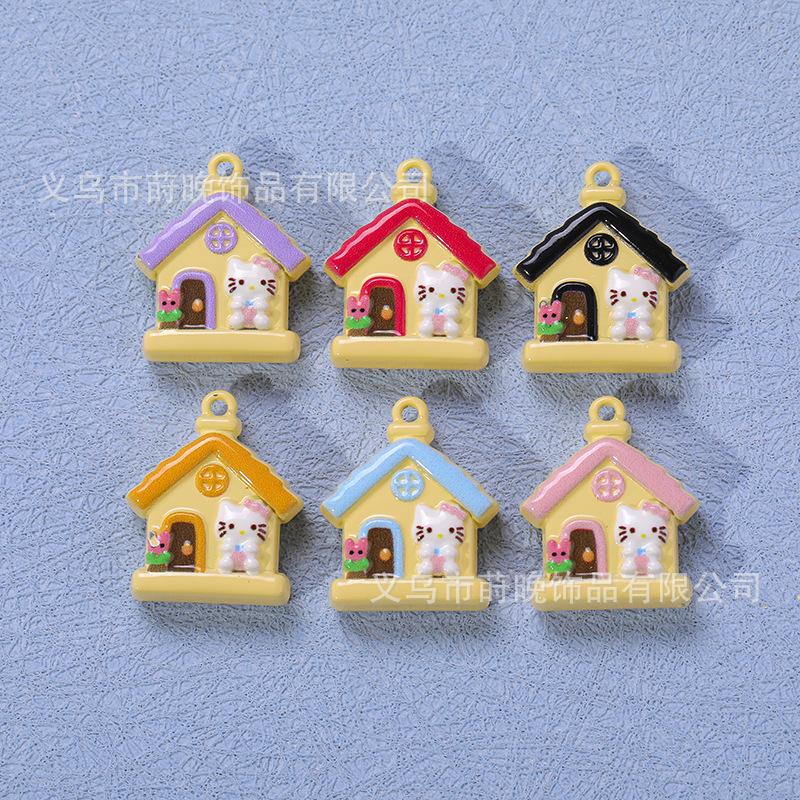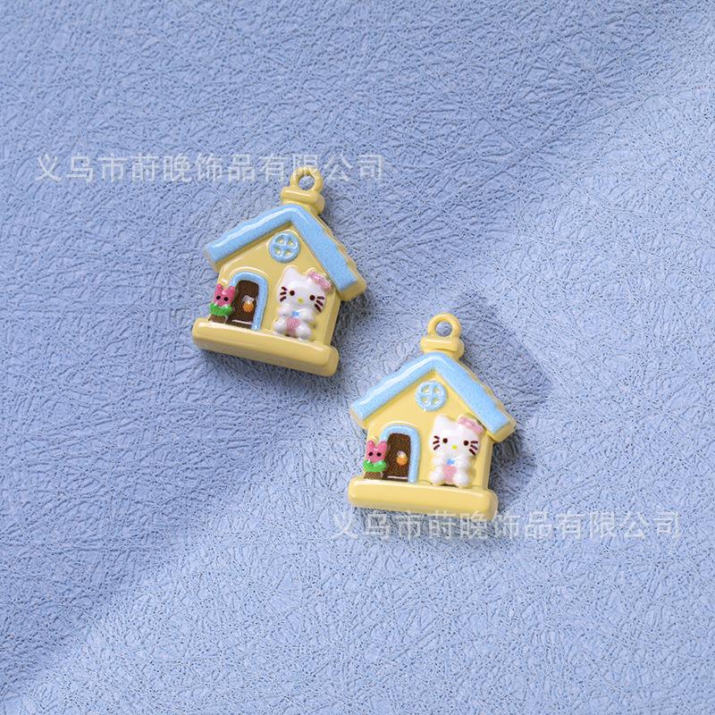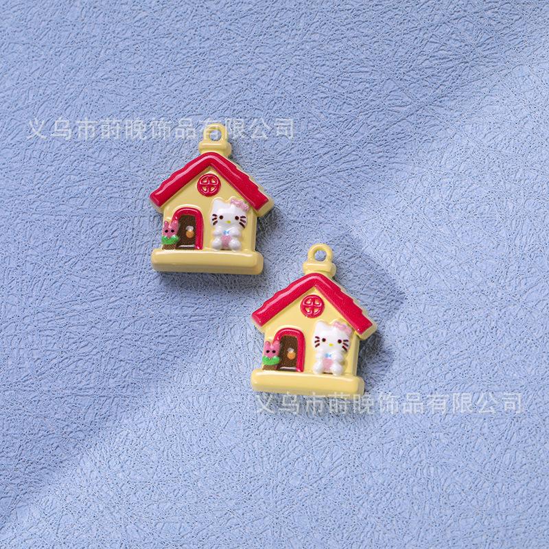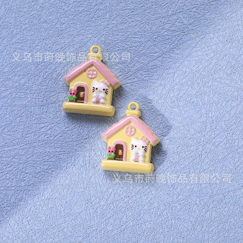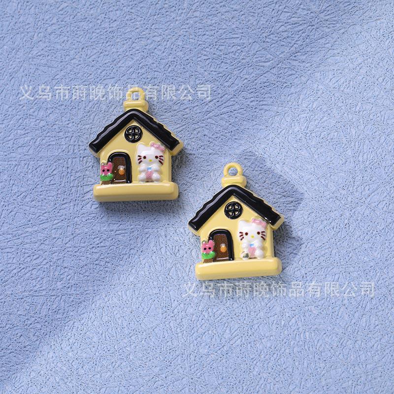 Aleación de Zinc Pintura Lindo Dibujo Animado Casa de Gato Kt Casa Colgante DIY Cadena para Teléfono Móvil Llavero Colgante Pulsera