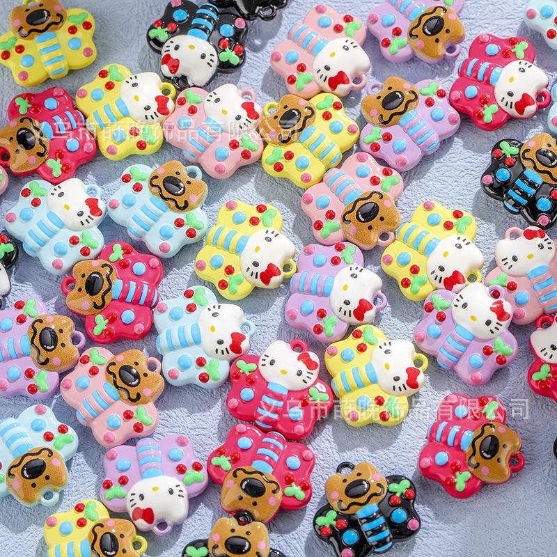 Aleación de Zinc Pintura Creativo Abstracto Kt Gato Oso Mariposa Colgante DIY Cadena para Teléfono Móvil Llavero Pulsera Colgante