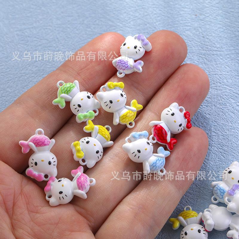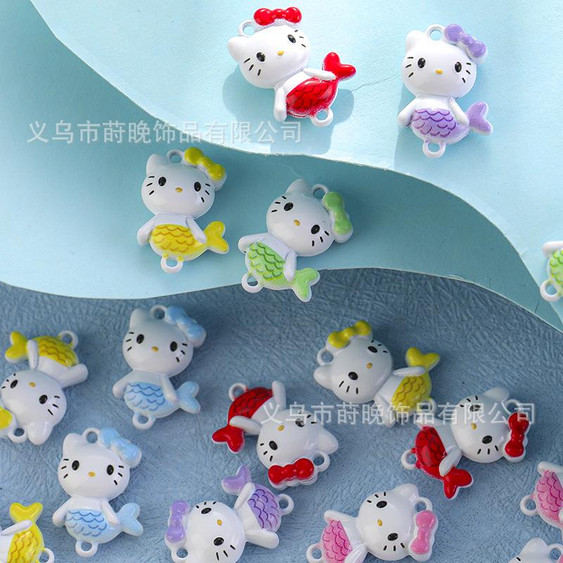 Aleación de zinc pintura lindo caricatura sirena KT gato colgante diy cadena para teléfono móvil pulsera accesorios de doble colgante