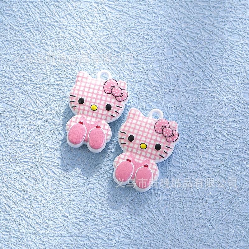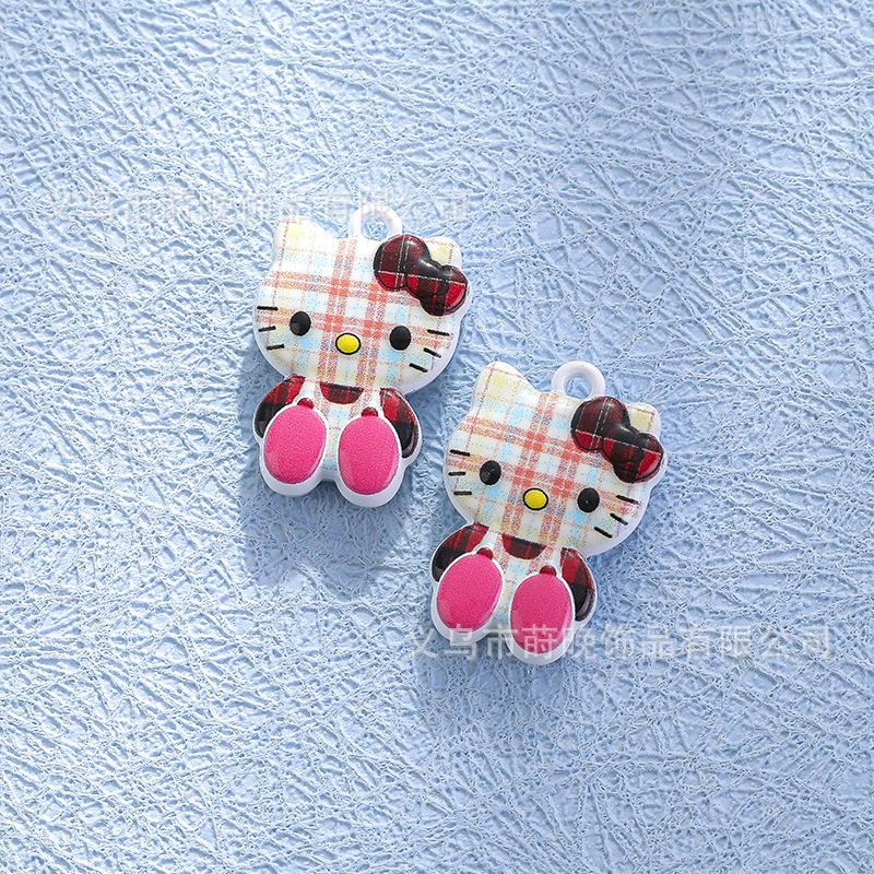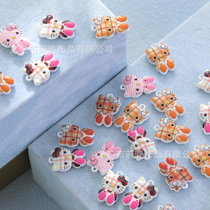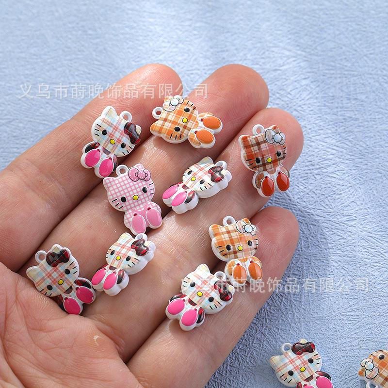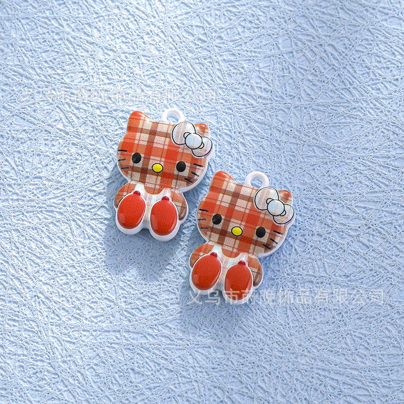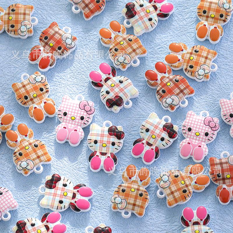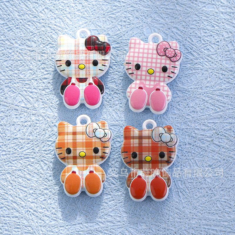 Aleación de Zinc Pintado Dibujos Animados Sentado a Cuadros Kt Cat Colgante DIY Cadena para Teléfono Móvil Llavero Pulsera Accesorios de Joyería