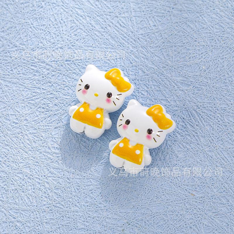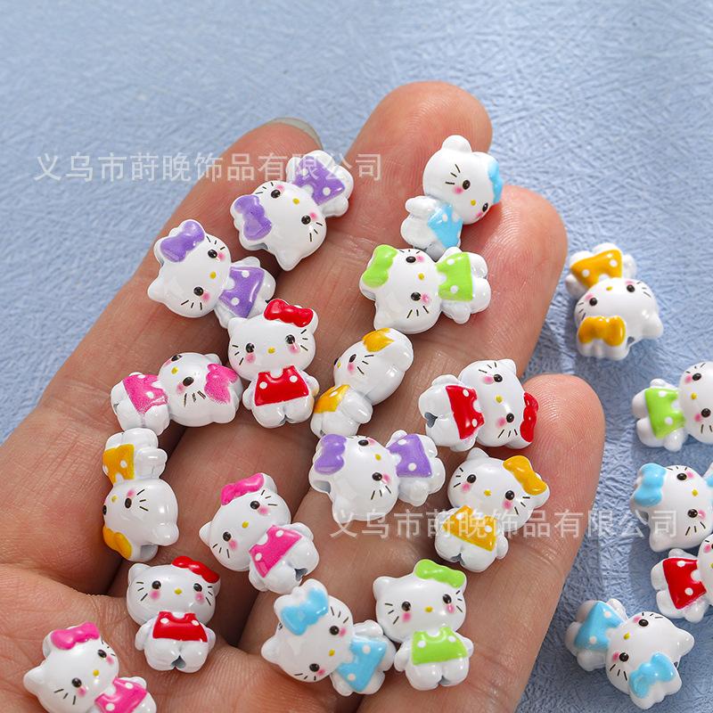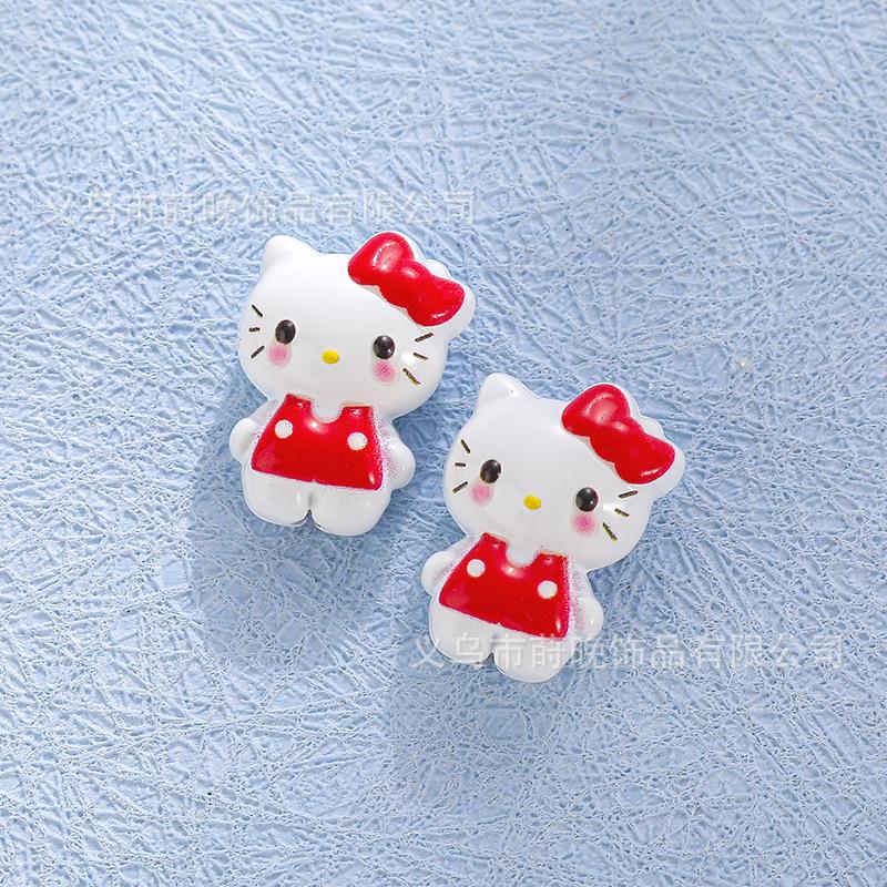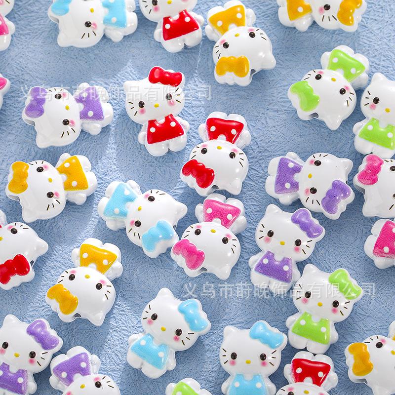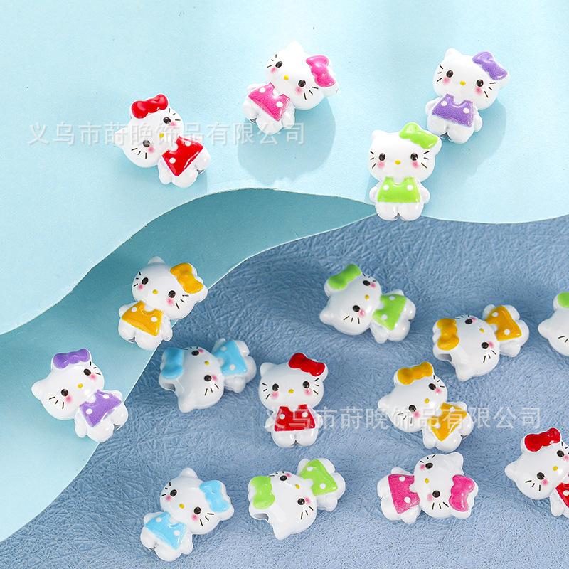Aleación de Zinc Pintado Lindo Dibujo Animado Overol Kt Cat Perforado DIY Cadena para Teléfono Móvil Accesorios para el Cabello Pulsera Accesorios con Cuentas