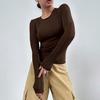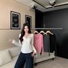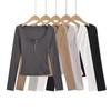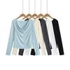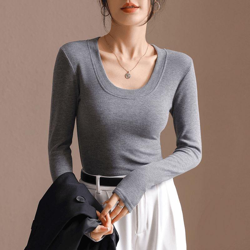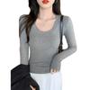 Primavera 2025 Nuevo Ropa Estilo Maillard Europeo y Americano para Mujeres de Talla Grande Deseo Puro Cuello U Ajustado Camiseta Básica