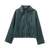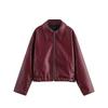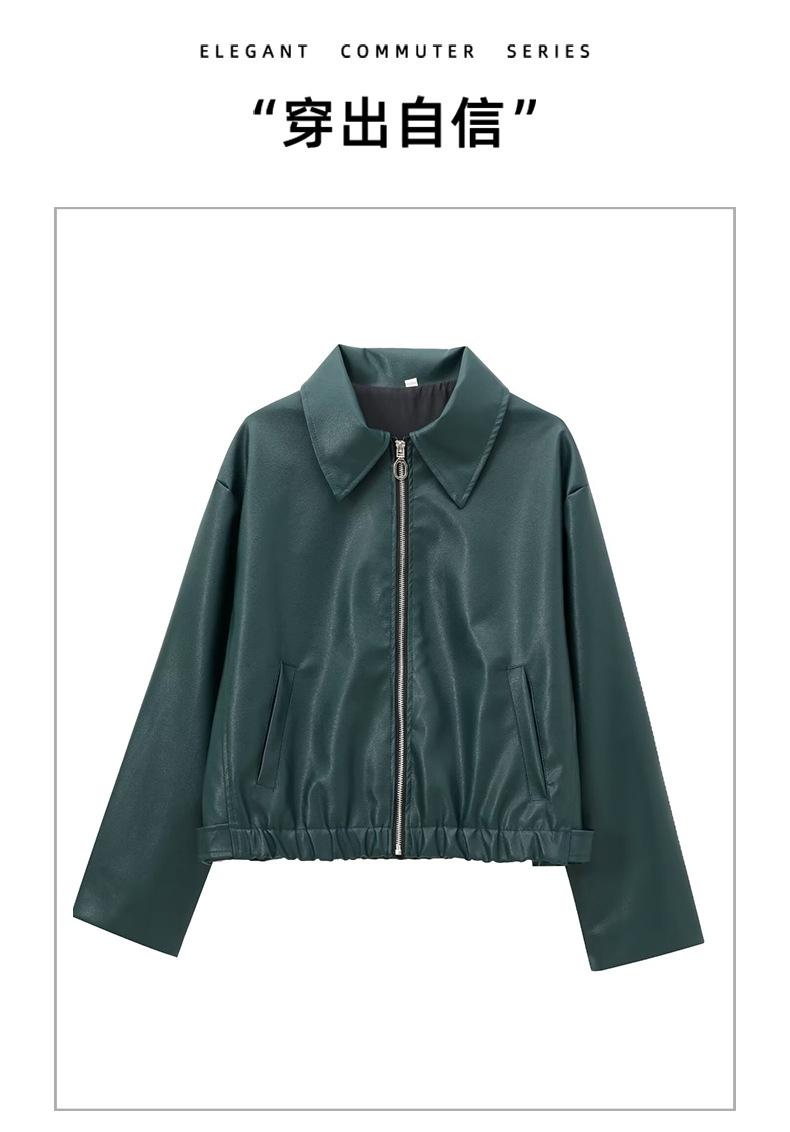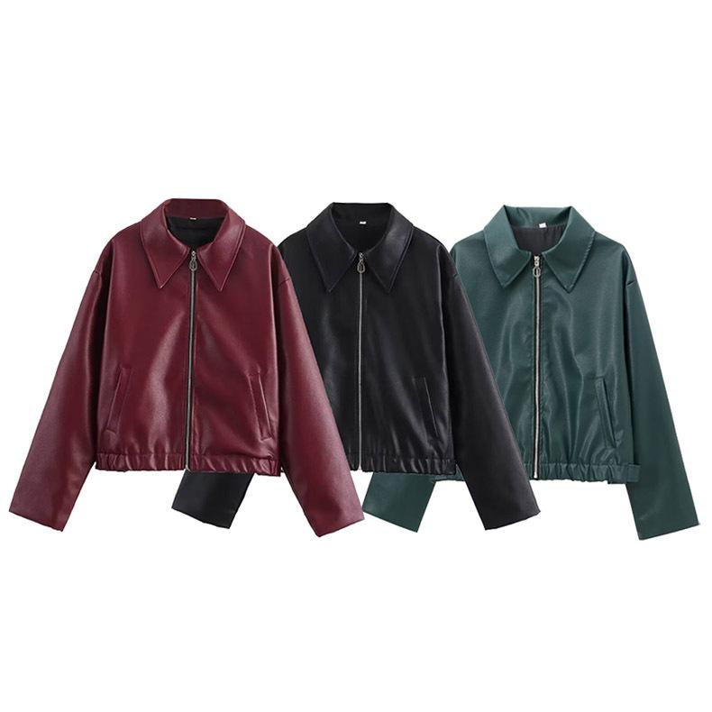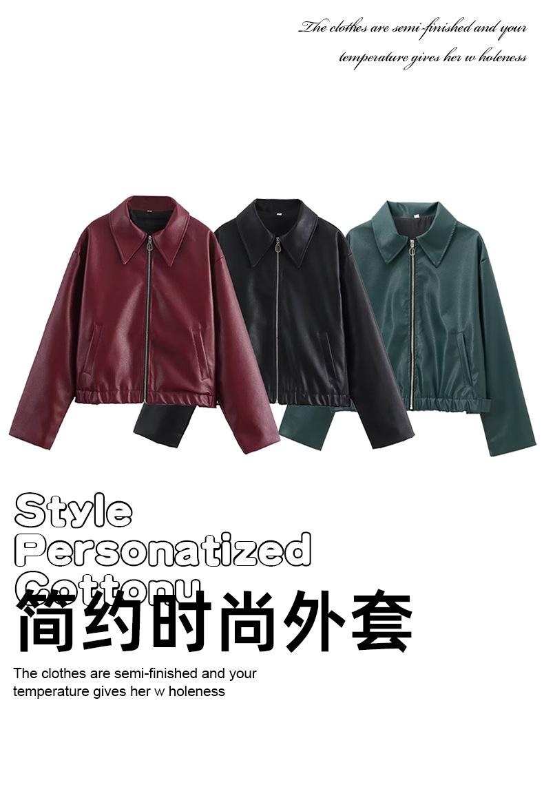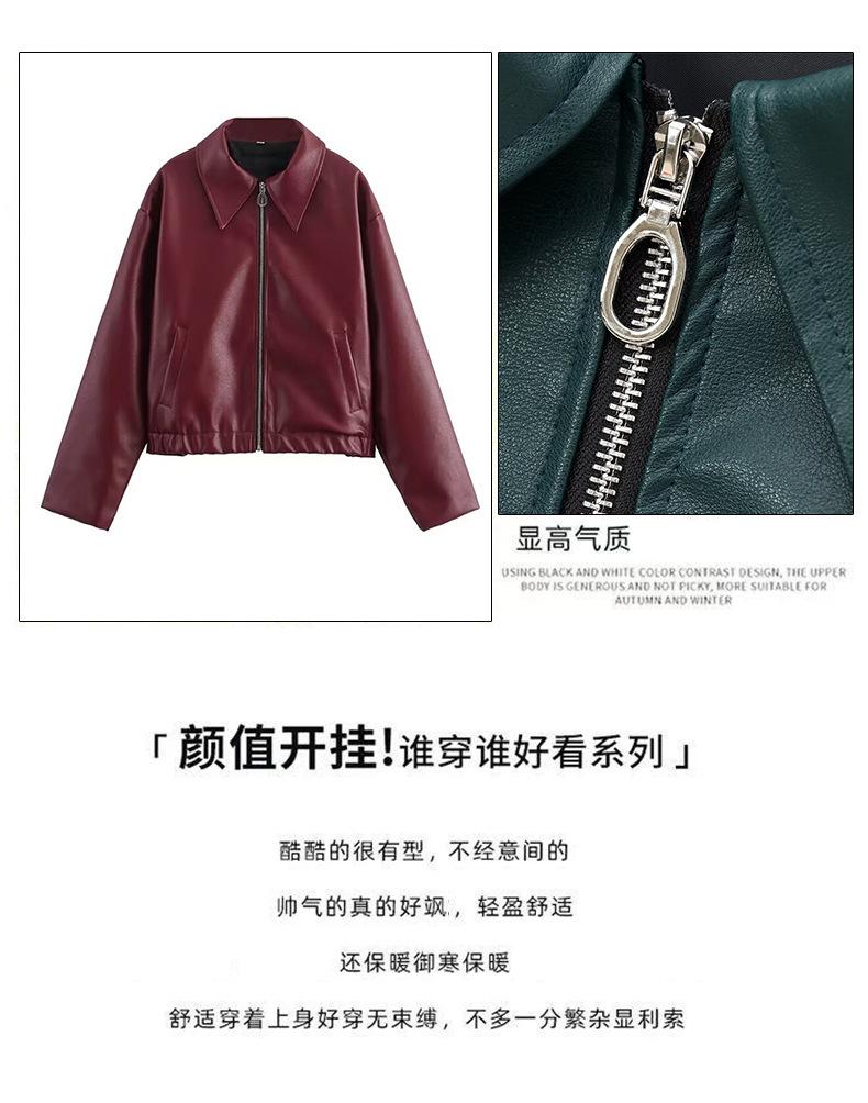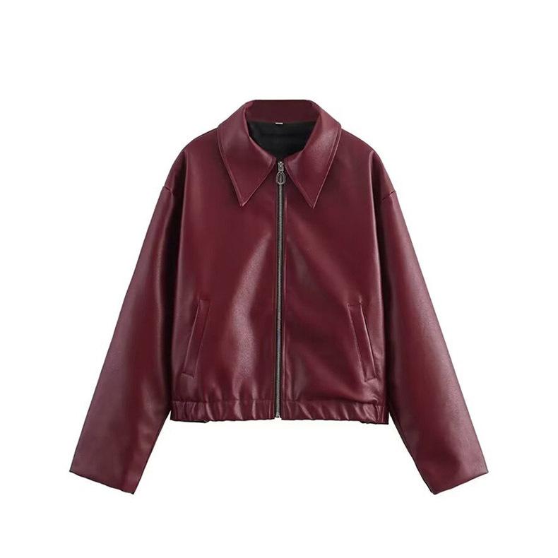 Chaqueta de Cuero de Manga Larga Estilo Motociclista Retro Chaqueta Export Ropa de Mujer 25 Nueva Chaqueta Corta de Cuero Mate con Solapa Europea y Americana para Mujer