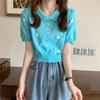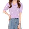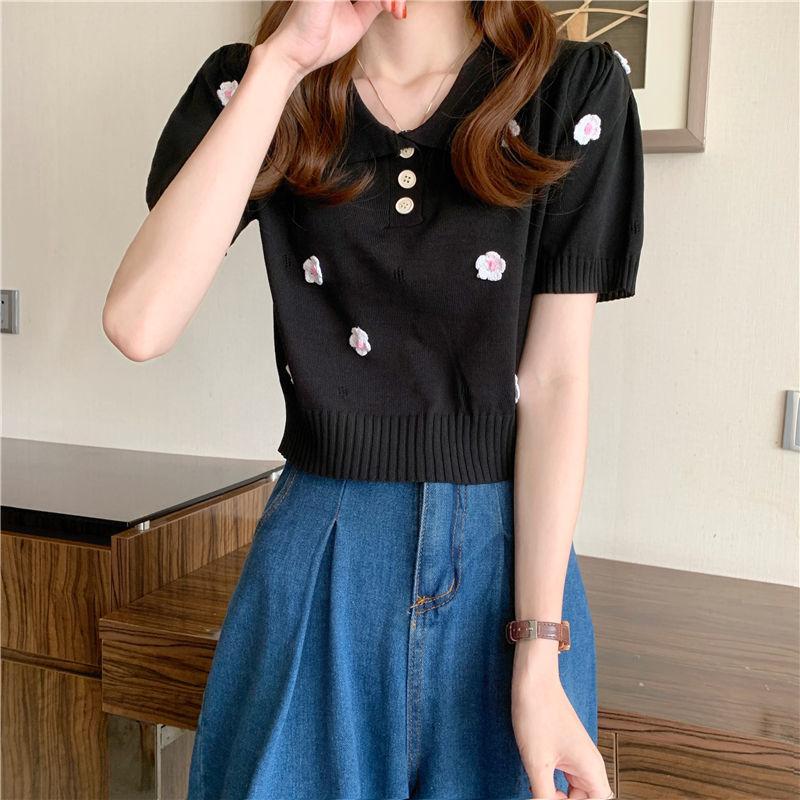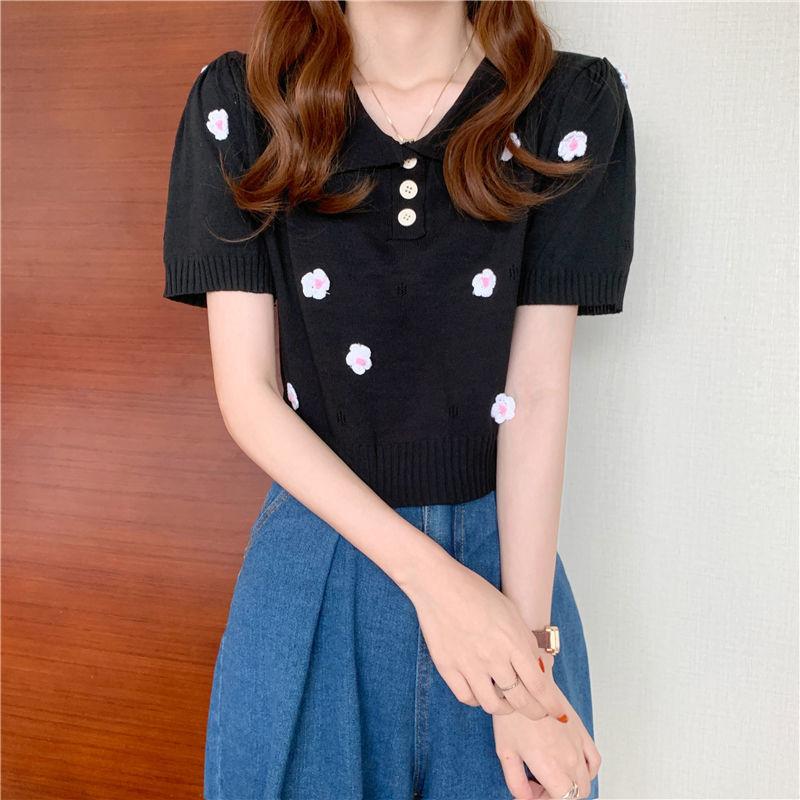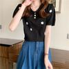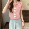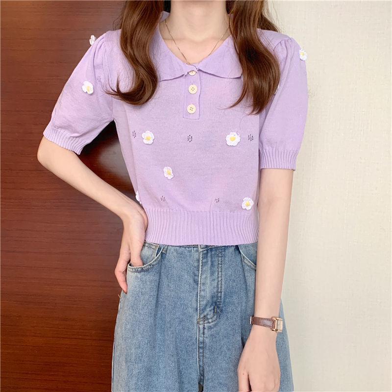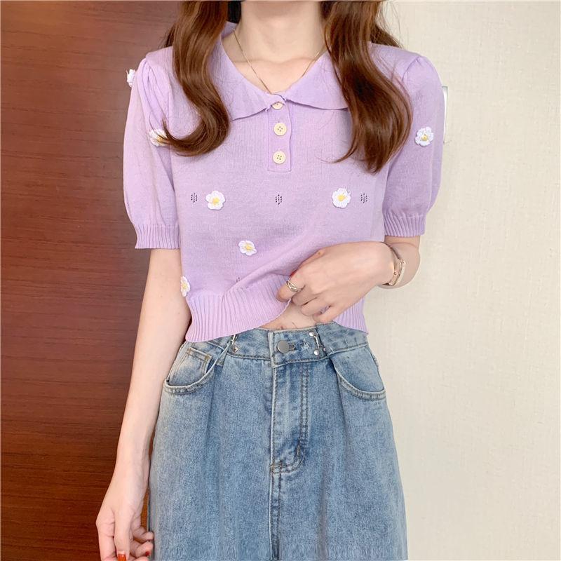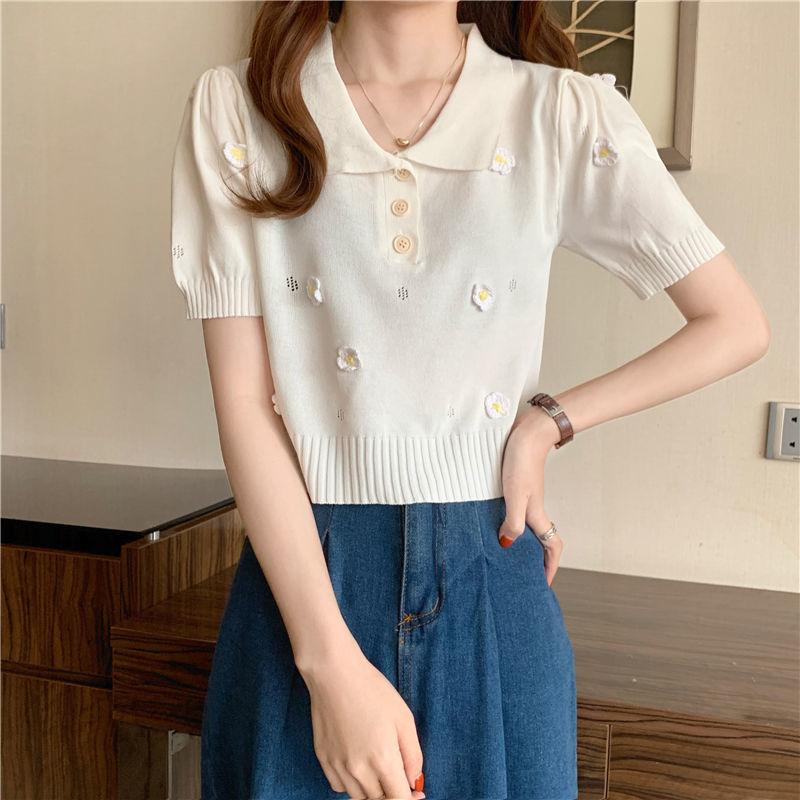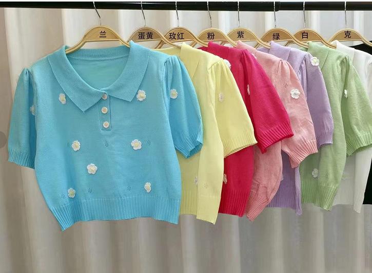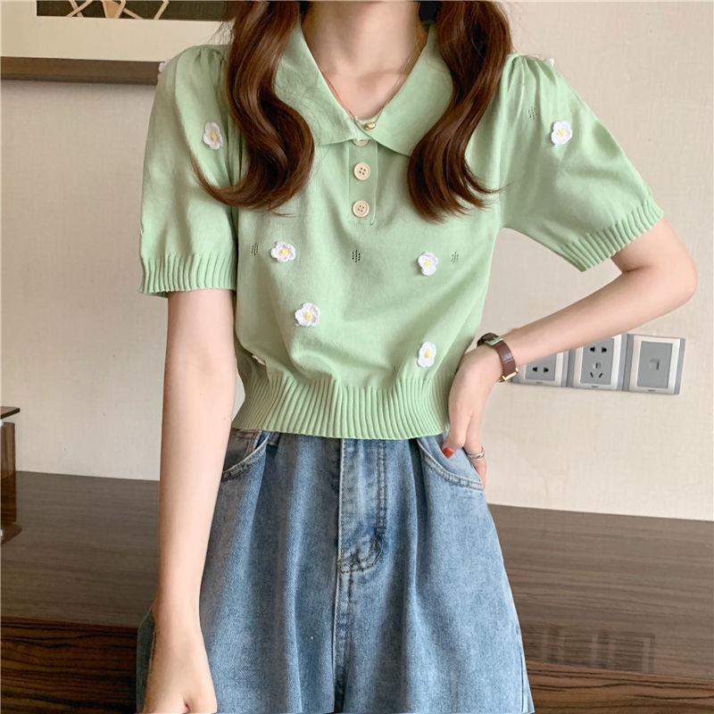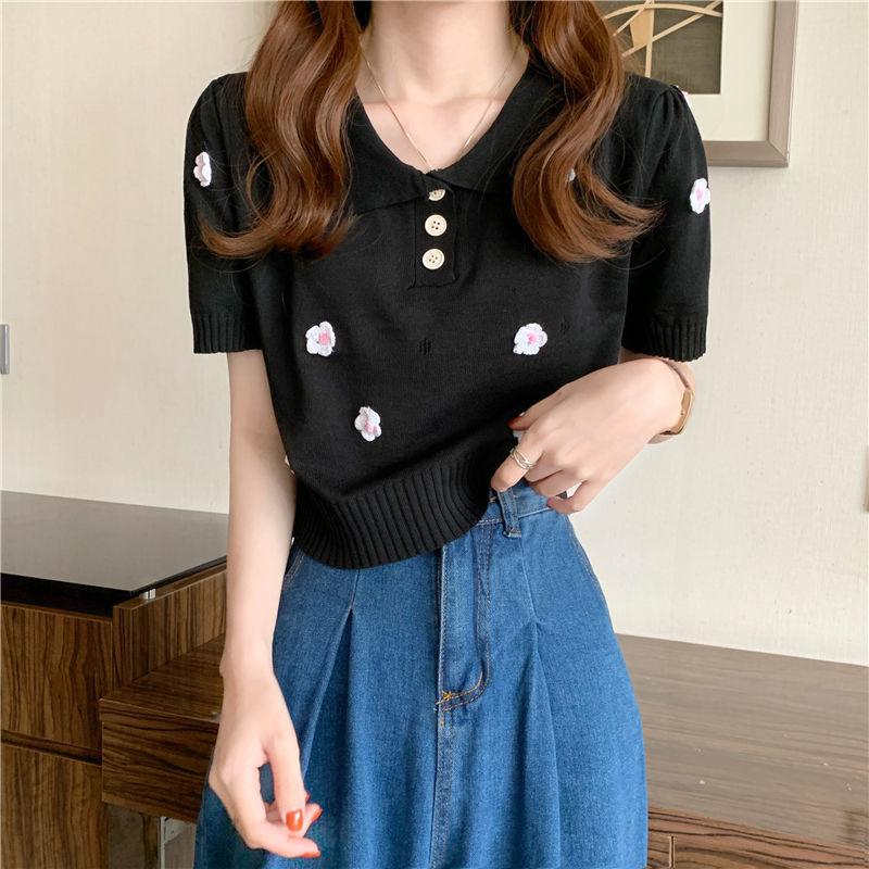 Top Interior de Punto de Manga Corta con Cuello Polo Delgado y Dulce Estilo Transfronterizo Diseño de Primavera Camiseta Corta para Mujer