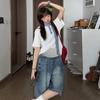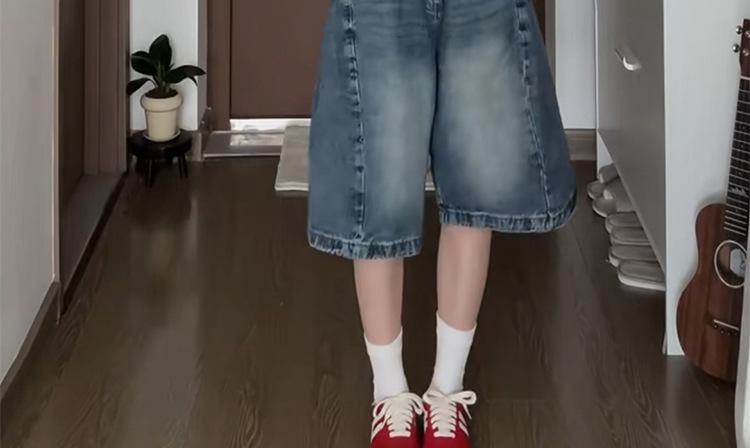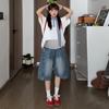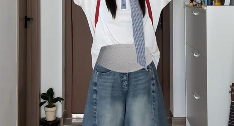 Shorts de mezclilla de maternidad para mujer, estilo delgado de verano, nuevo modelo 2025, corte holgado, adelgazantes, casuales, pantalones de pierna ancha de talla grande