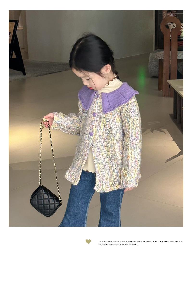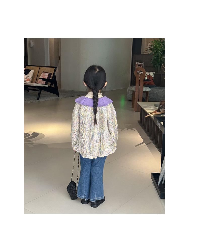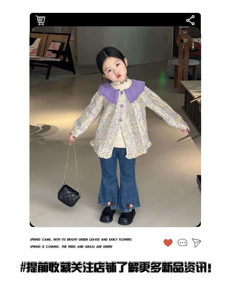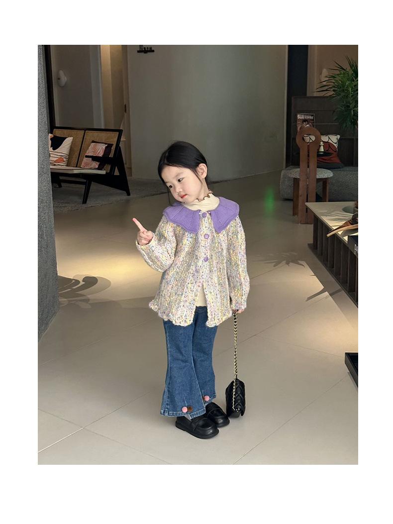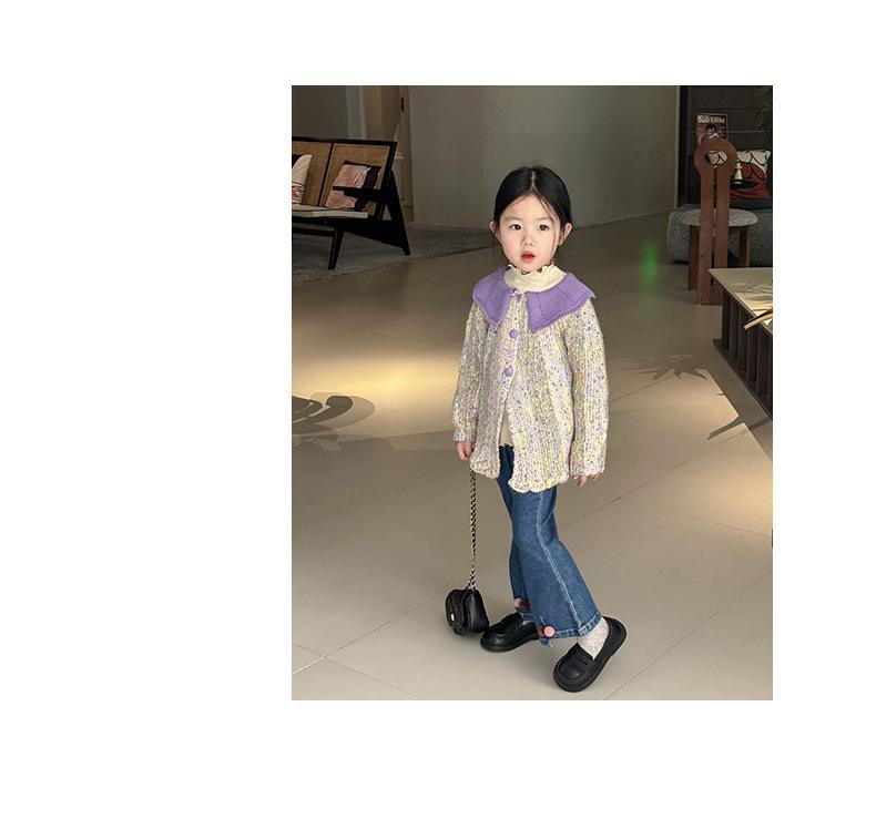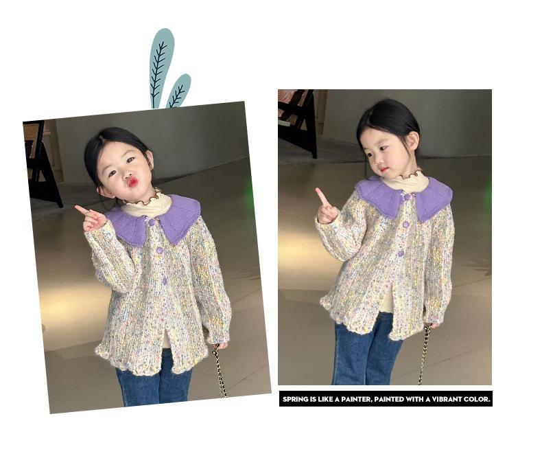 Suéter para Niñas 2025 Otoño Nuevo Estilo Cárdigan Infantil de Solapa Grande Chaqueta Tejida Dulce para Niños Pequeños y Medianos