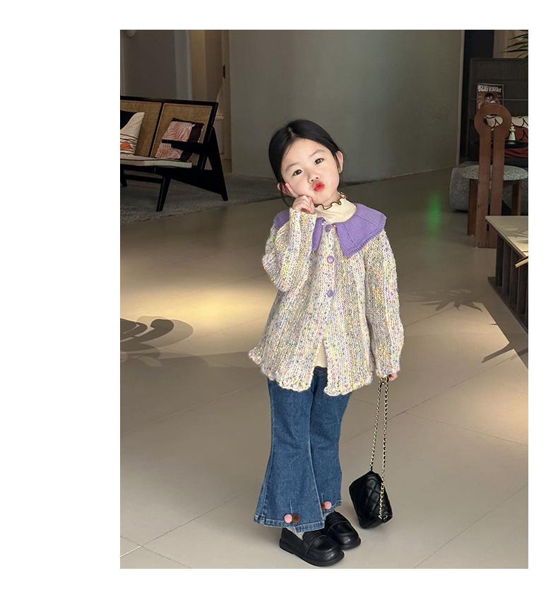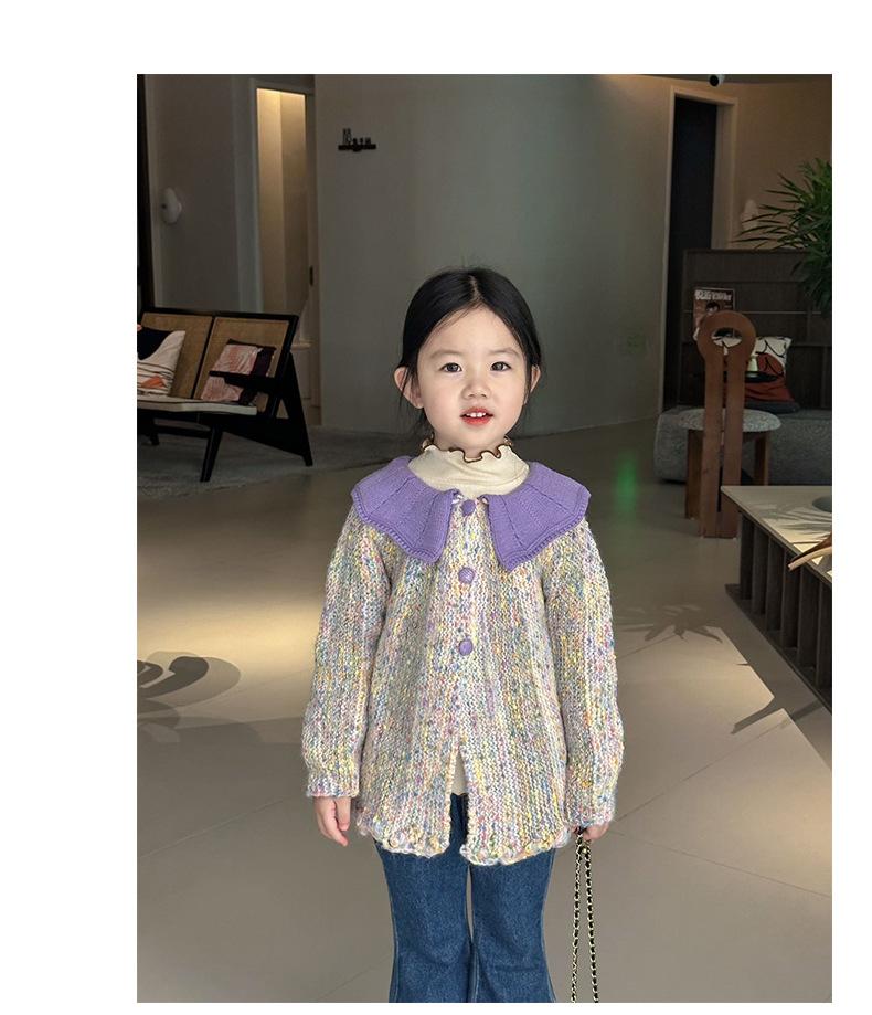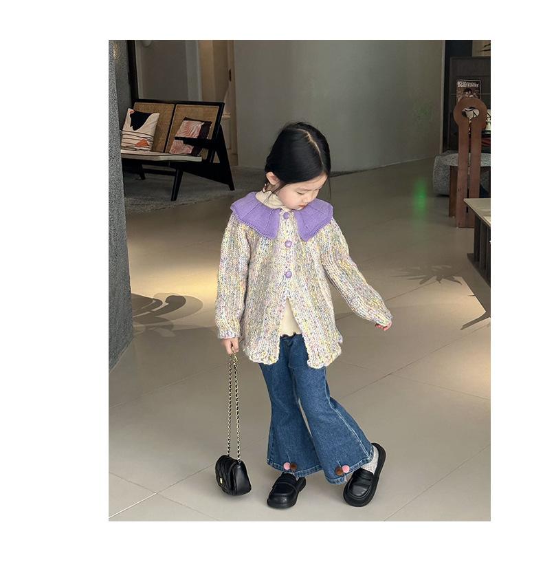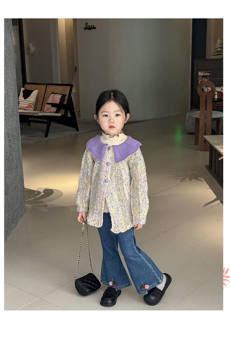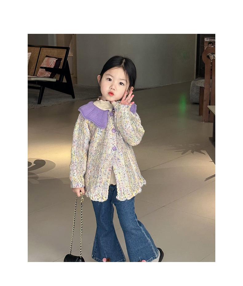 Suéter para Niñas 2025 Otoño Nuevo Estilo Cárdigan Infantil de Solapa Grande Chaqueta Tejida Dulce para Niños Pequeños y Medianos