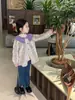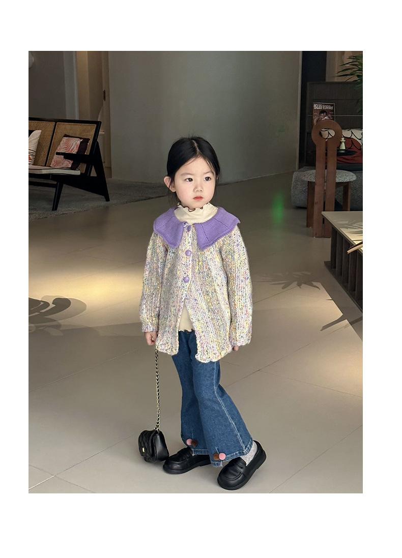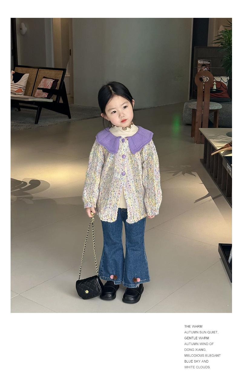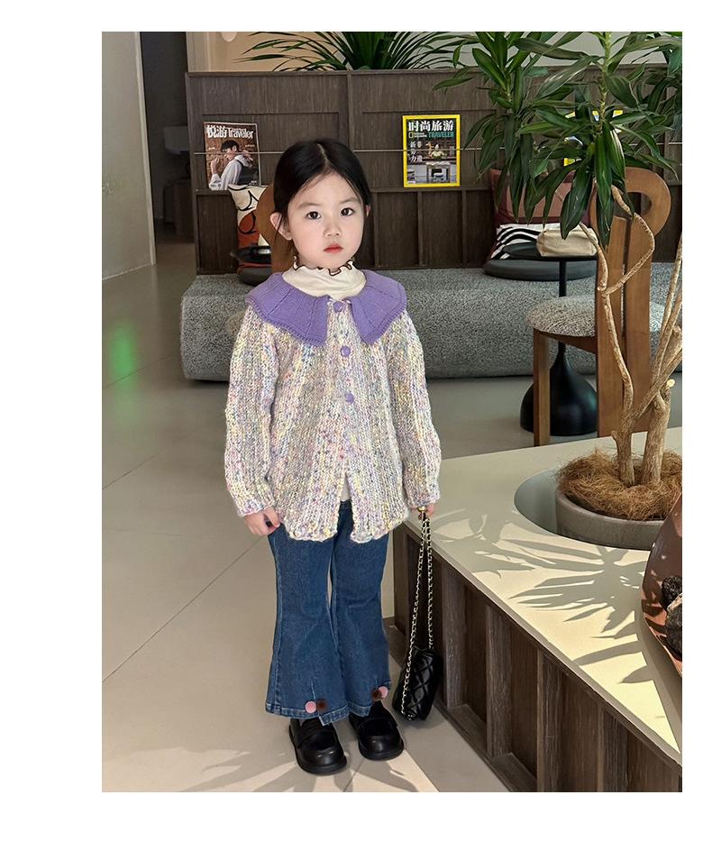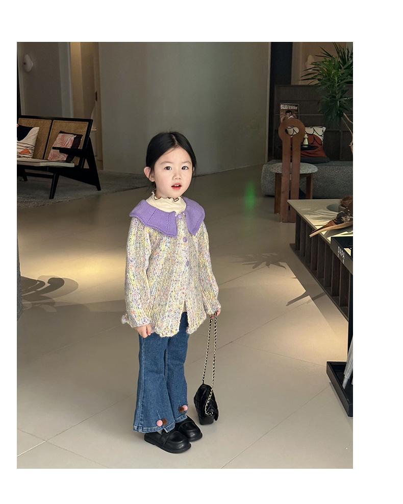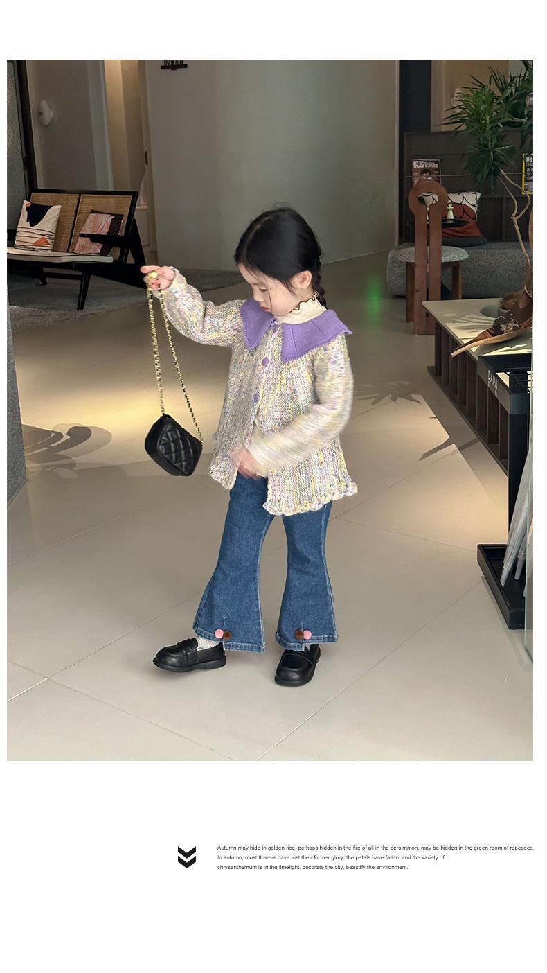 Suéter para Niñas 2025 Otoño Nuevo Estilo Cárdigan Infantil de Solapa Grande Chaqueta Tejida Dulce para Niños Pequeños y Medianos