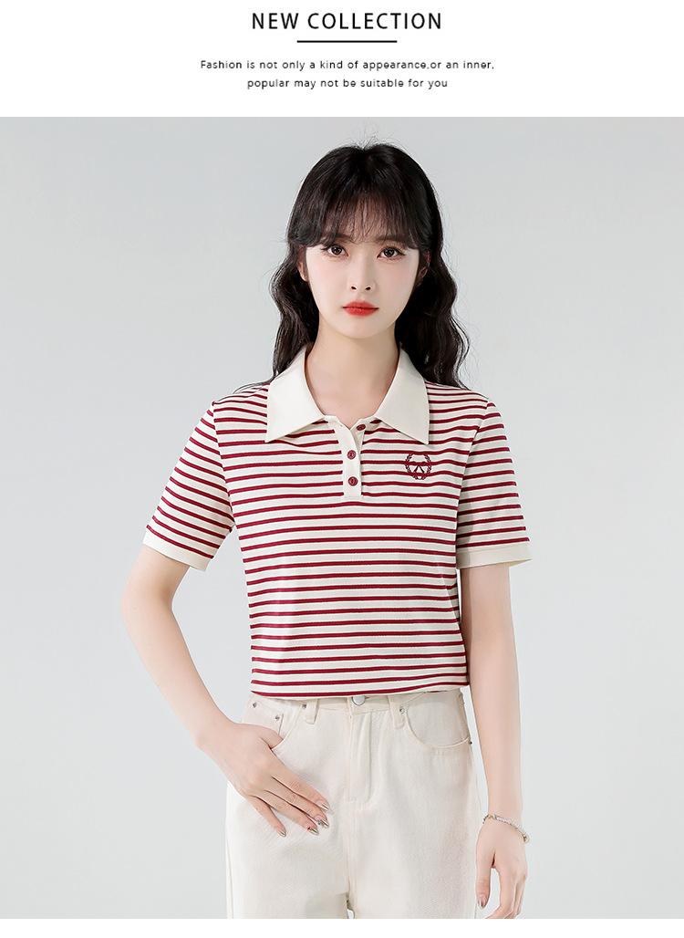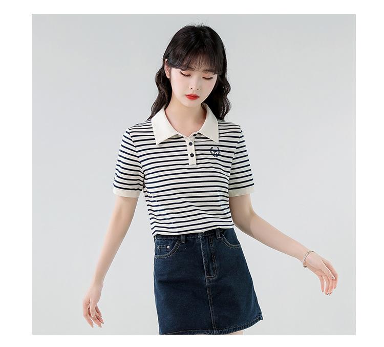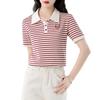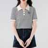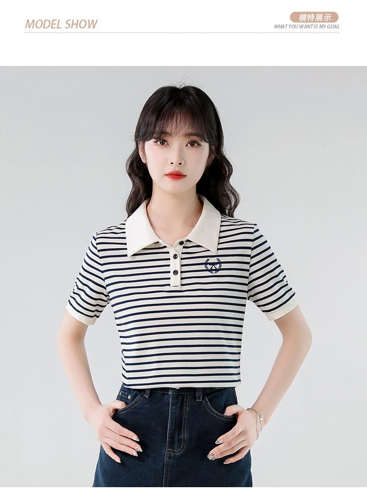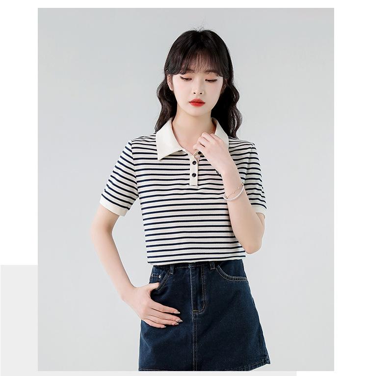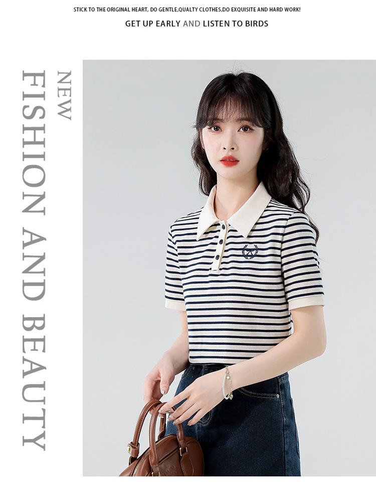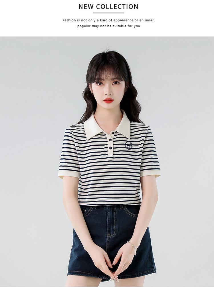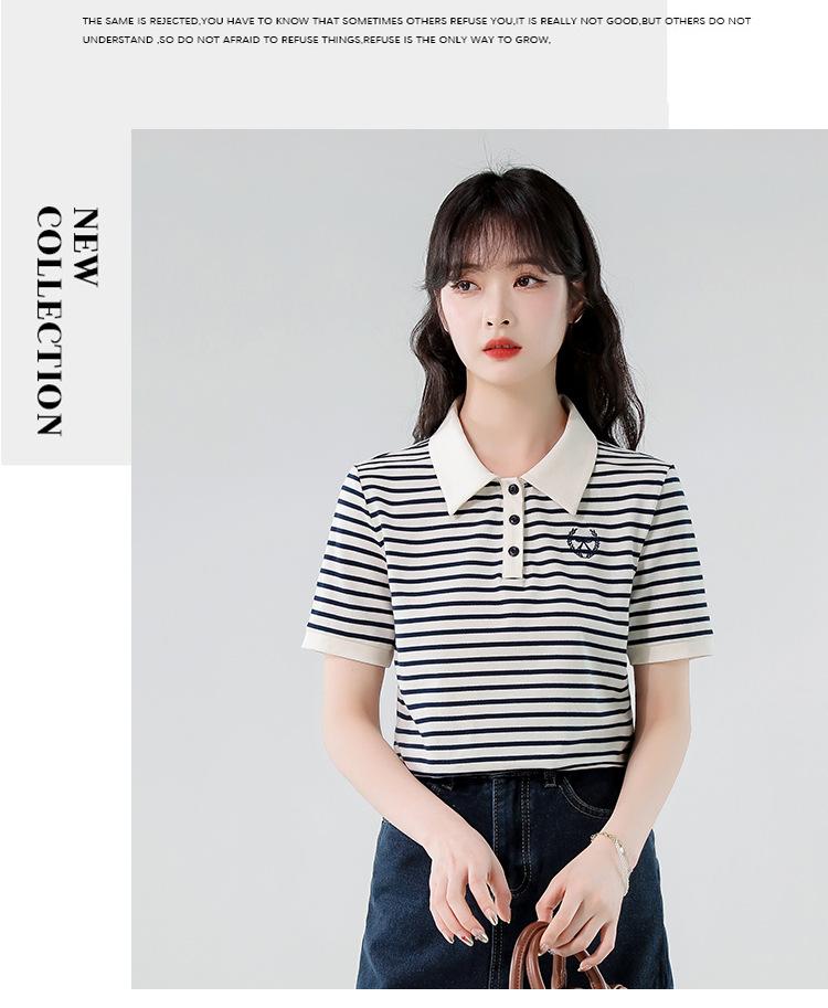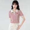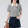 Camiseta Polo Estilo Coreano Holgada Adelgazante Rayada Manga Corta Camiseta de Verano para Mujer Nuevo Estilo Única y Versátil Top Delgado