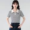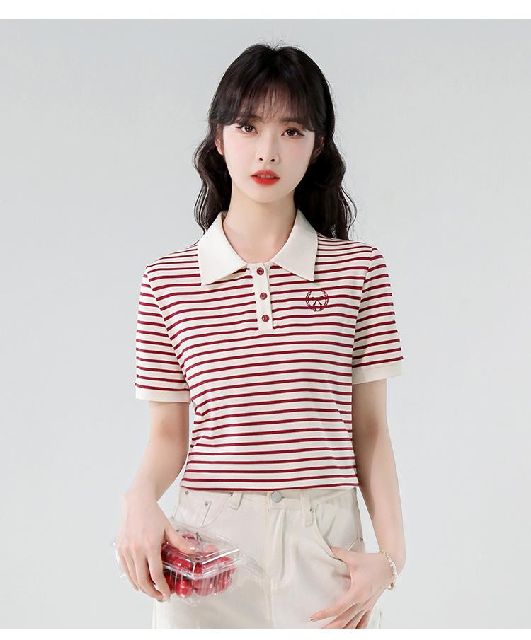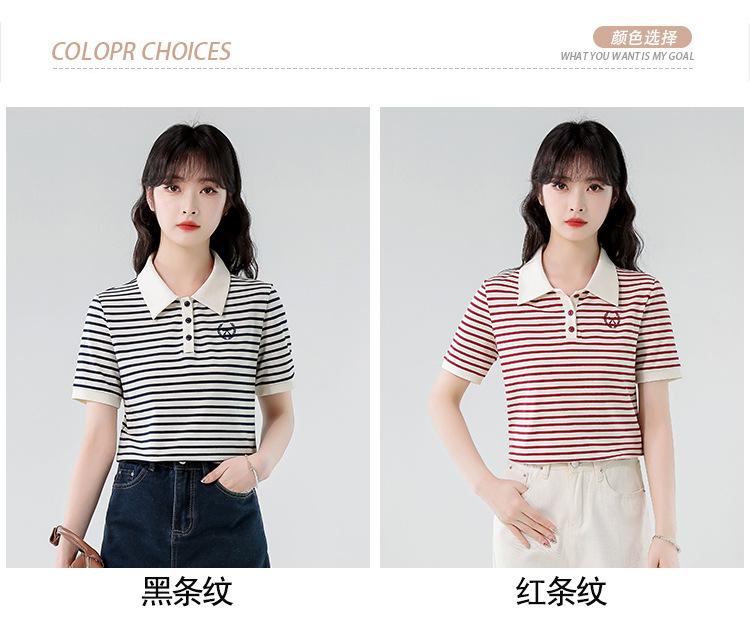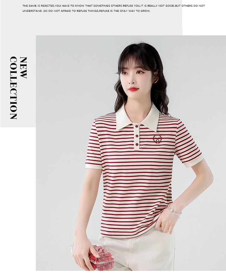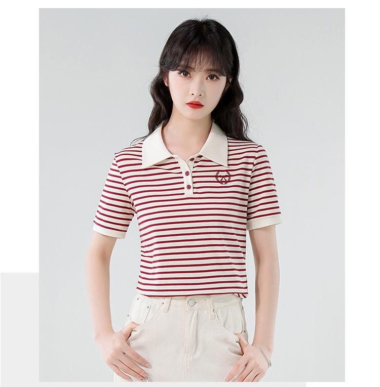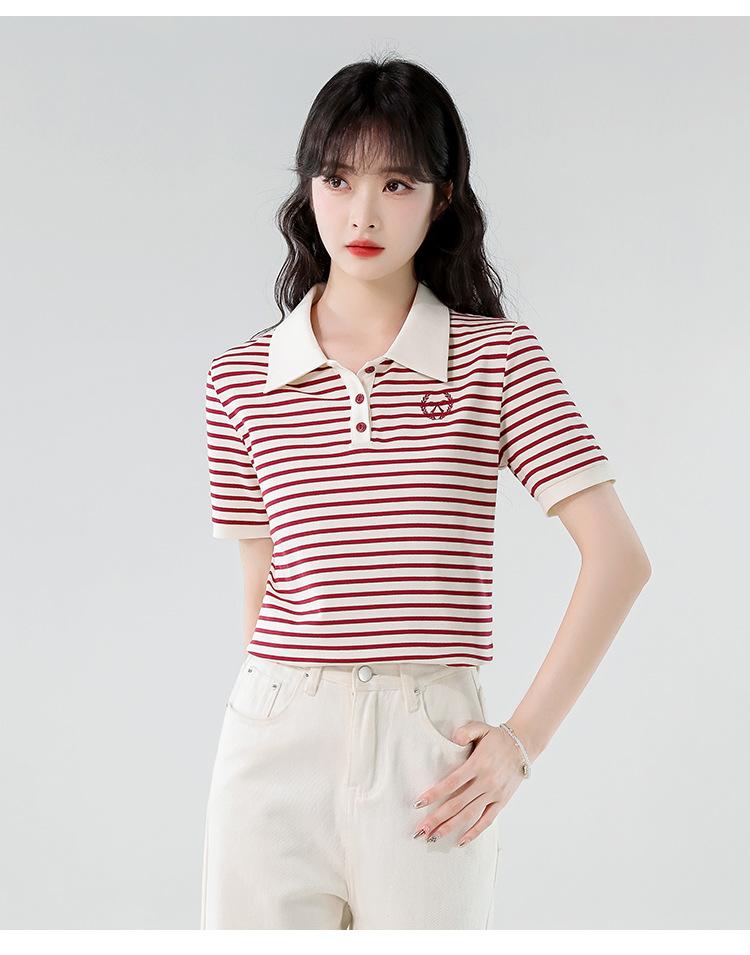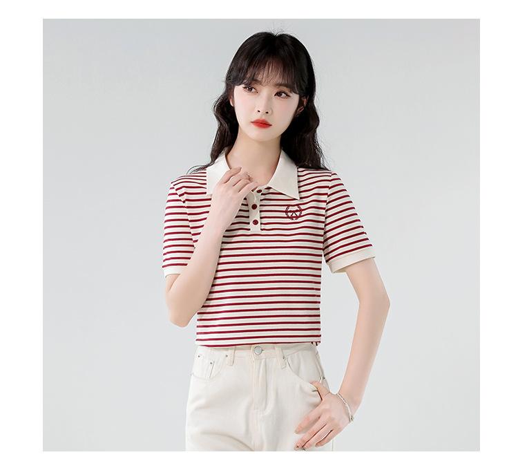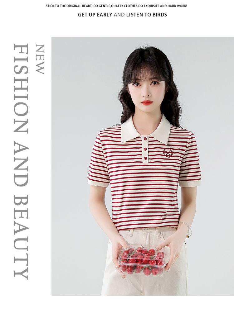 Camiseta Polo Estilo Coreano Holgada Adelgazante Rayada Manga Corta Camiseta de Verano para Mujer Nuevo Estilo Única y Versátil Top Delgado