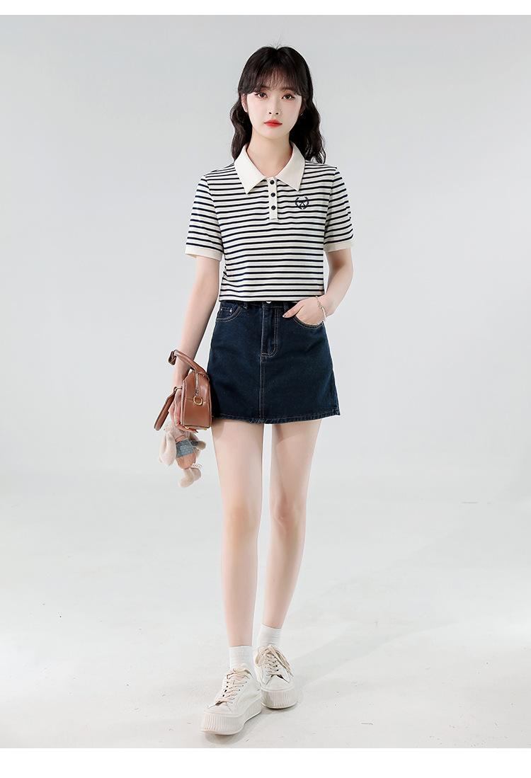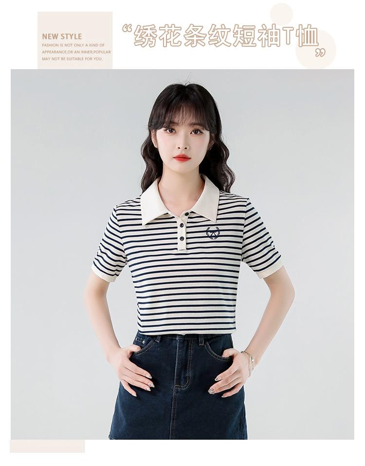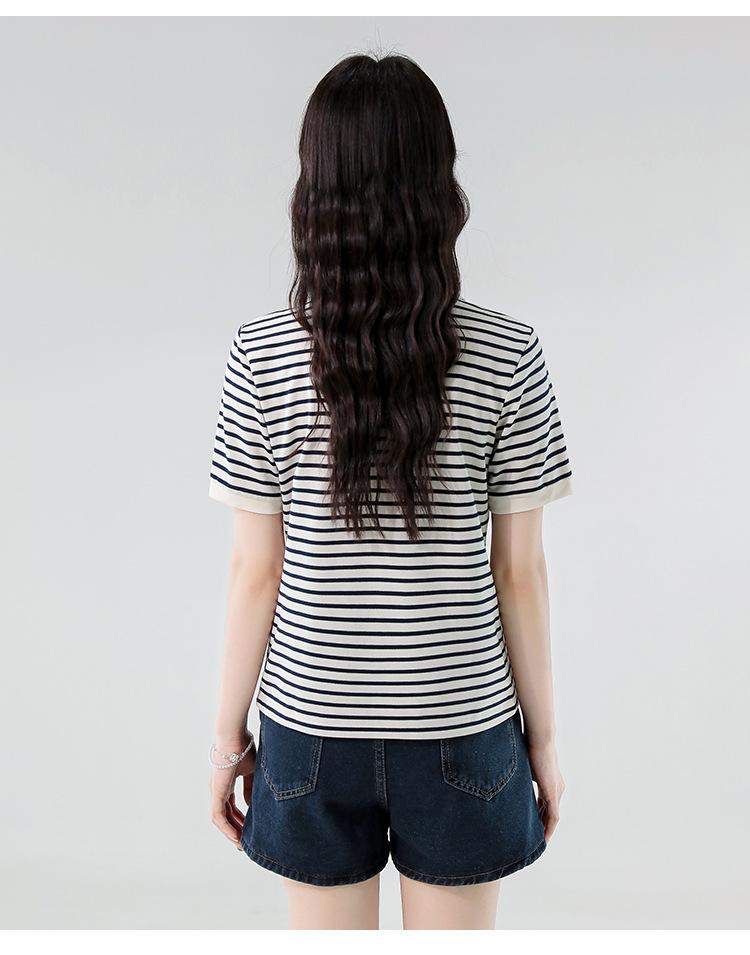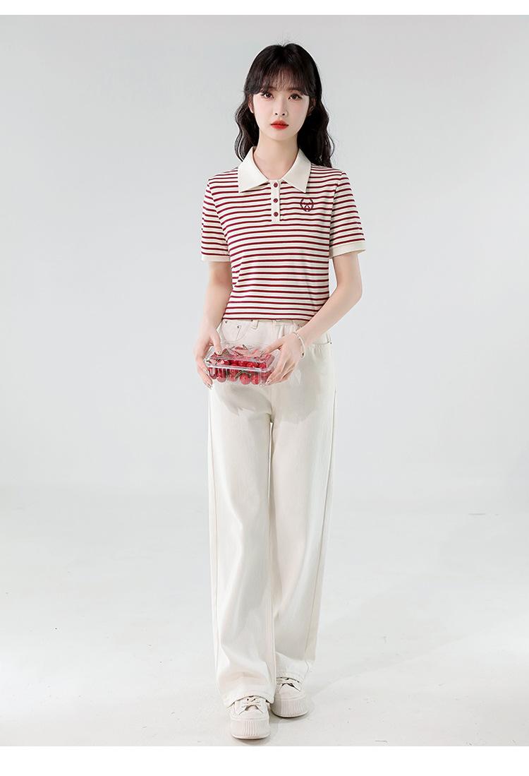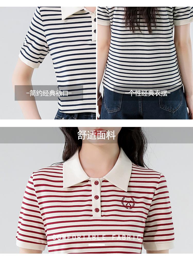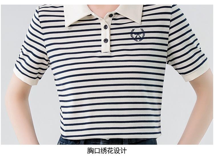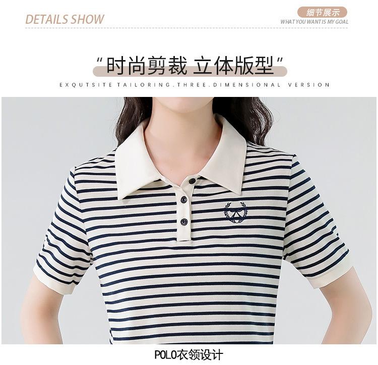 Camiseta Polo Estilo Coreano Holgada Adelgazante Rayada Manga Corta Camiseta de Verano para Mujer Nuevo Estilo Única y Versátil Top Delgado