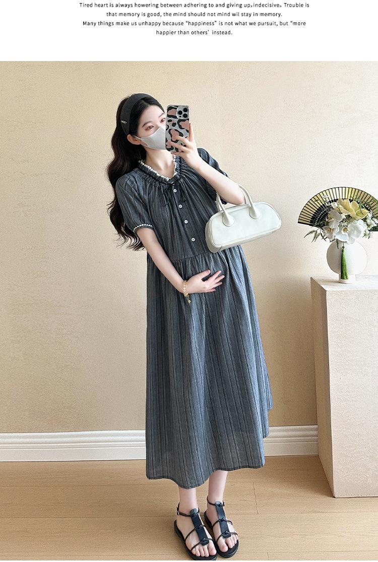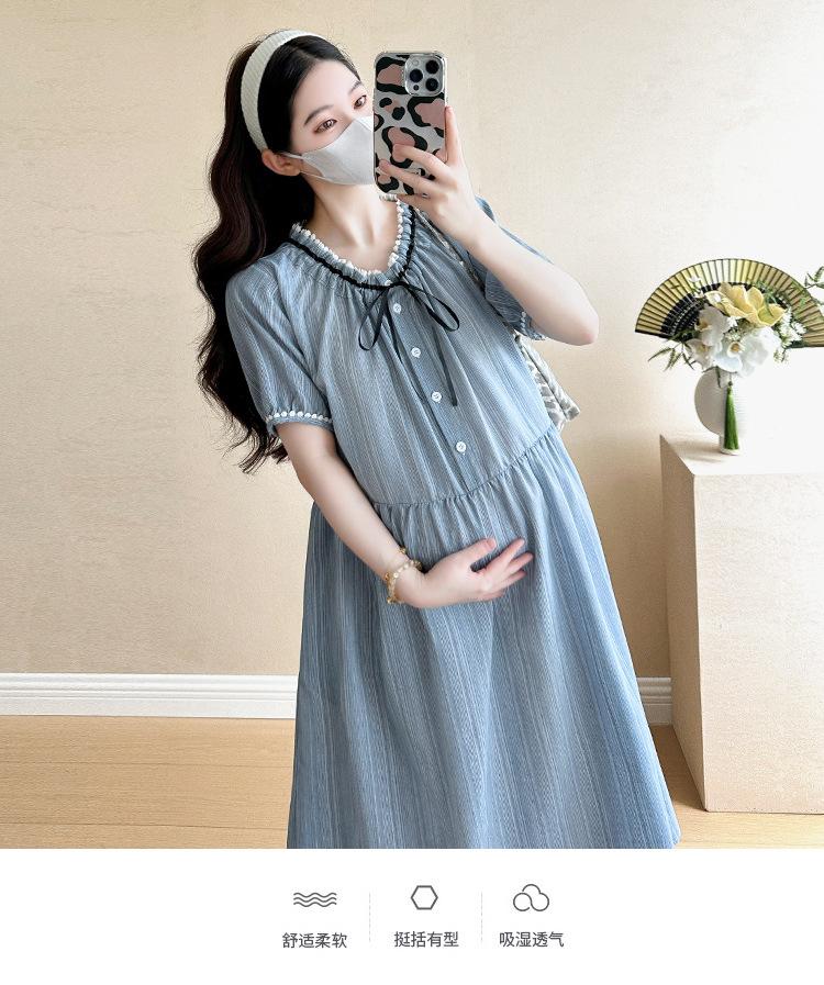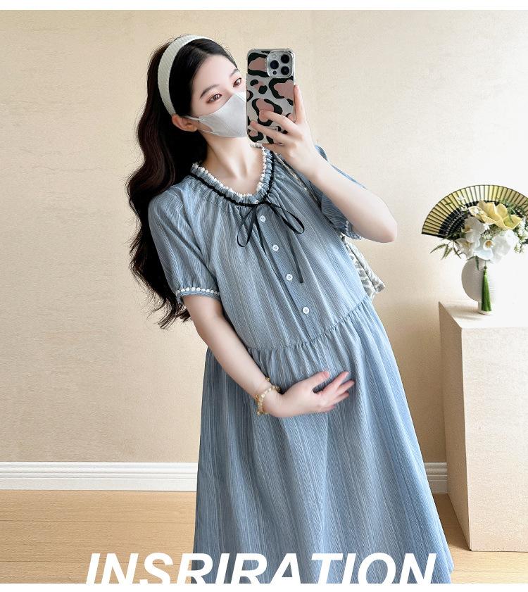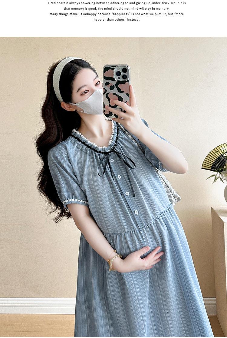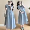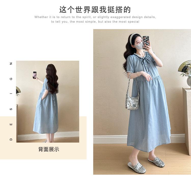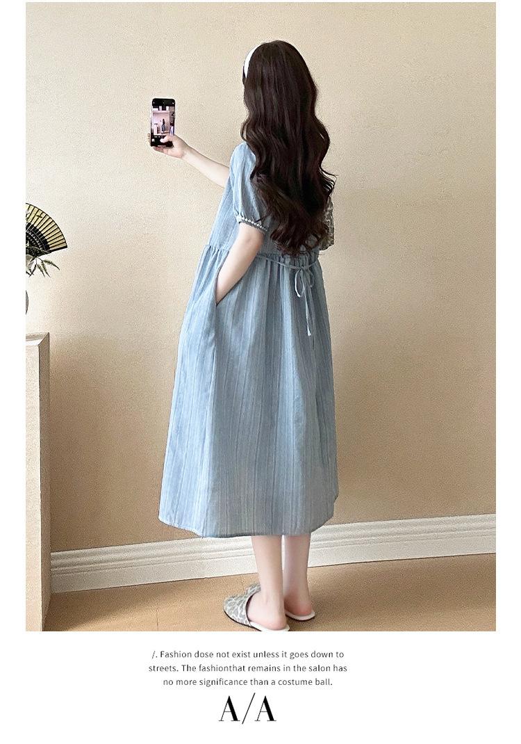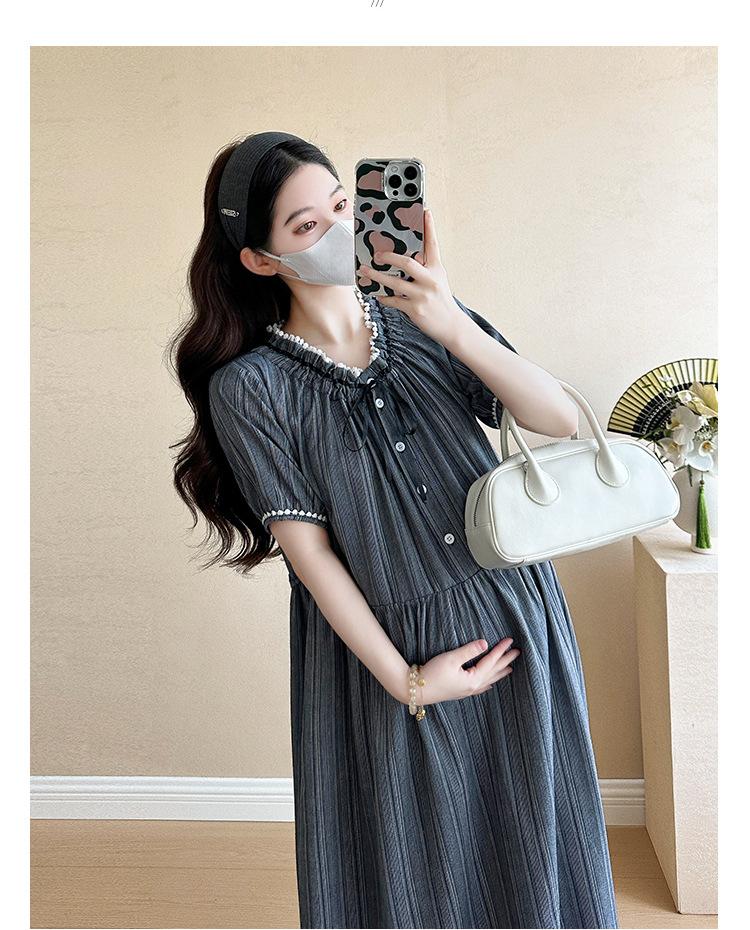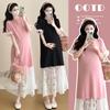 Maternidad 2025 Verano Nuevo Moda Coreana Encaje Dulce Suelto Talla Grande Vestido para Mujeres Embarazadas Lactancia