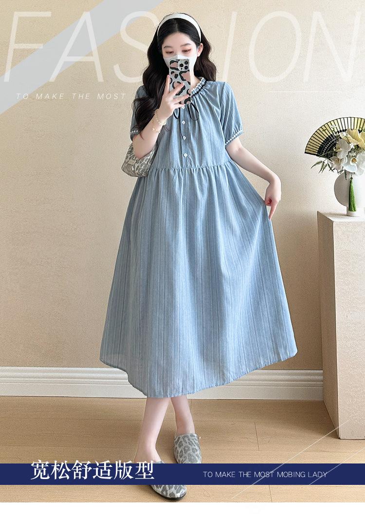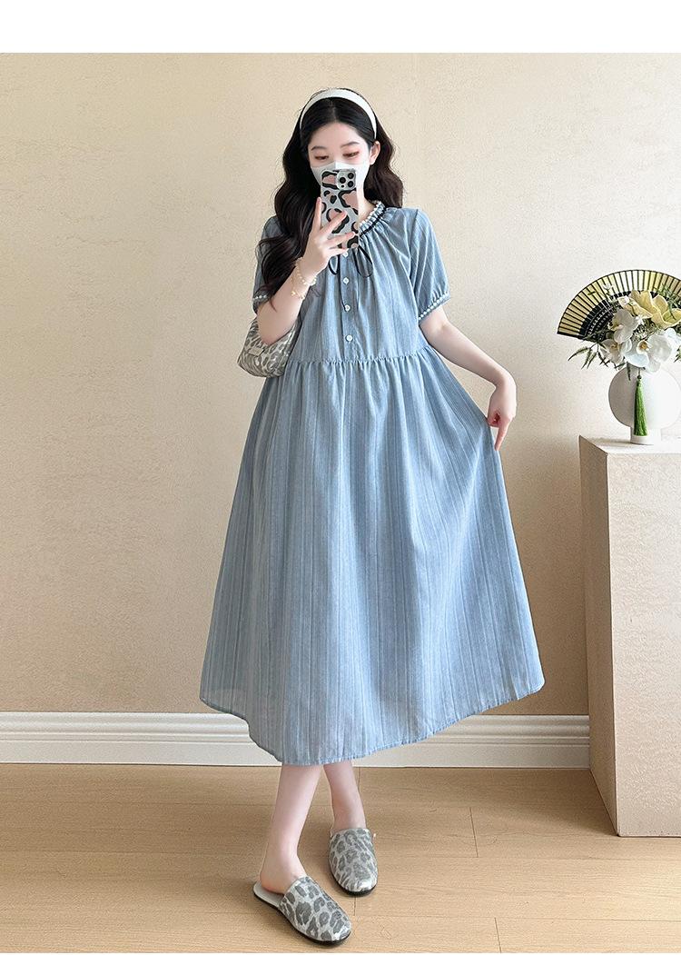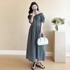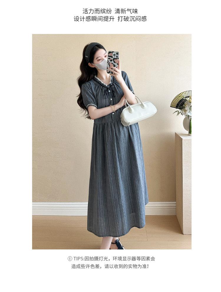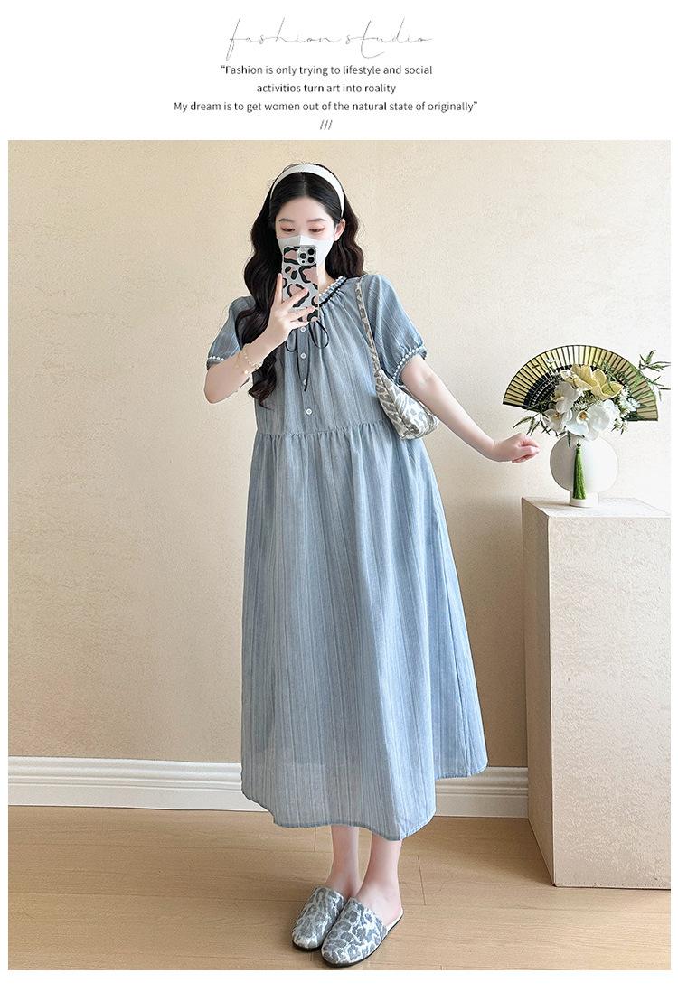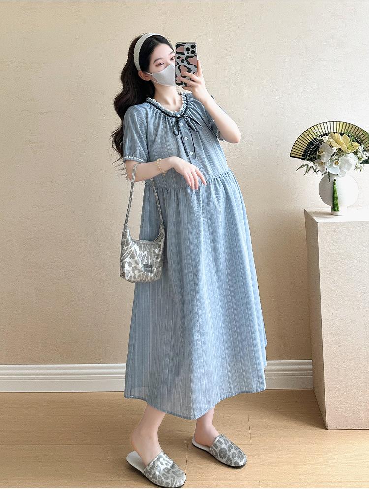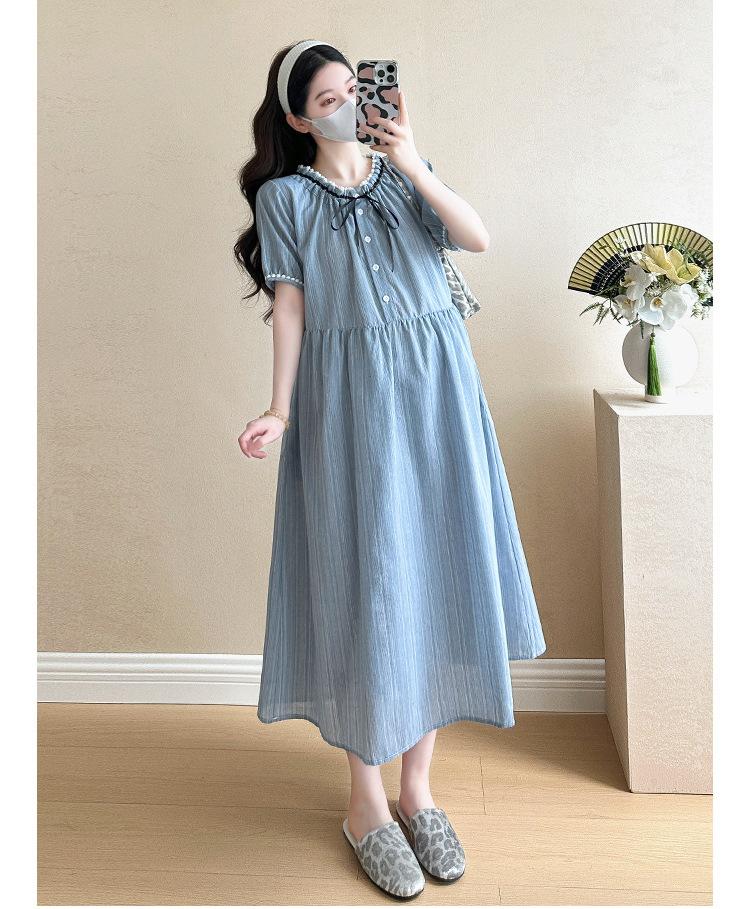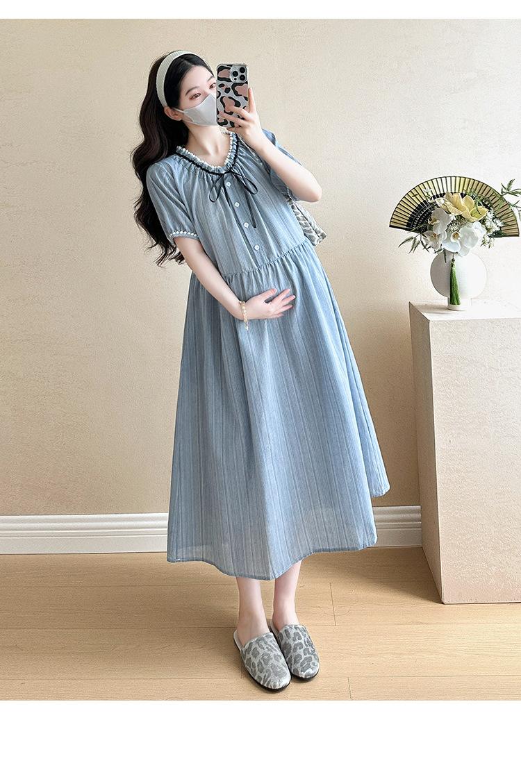 Maternidad 2025 Verano Nuevo Moda Coreana Encaje Dulce Suelto Talla Grande Vestido para Mujeres Embarazadas Lactancia