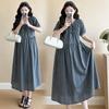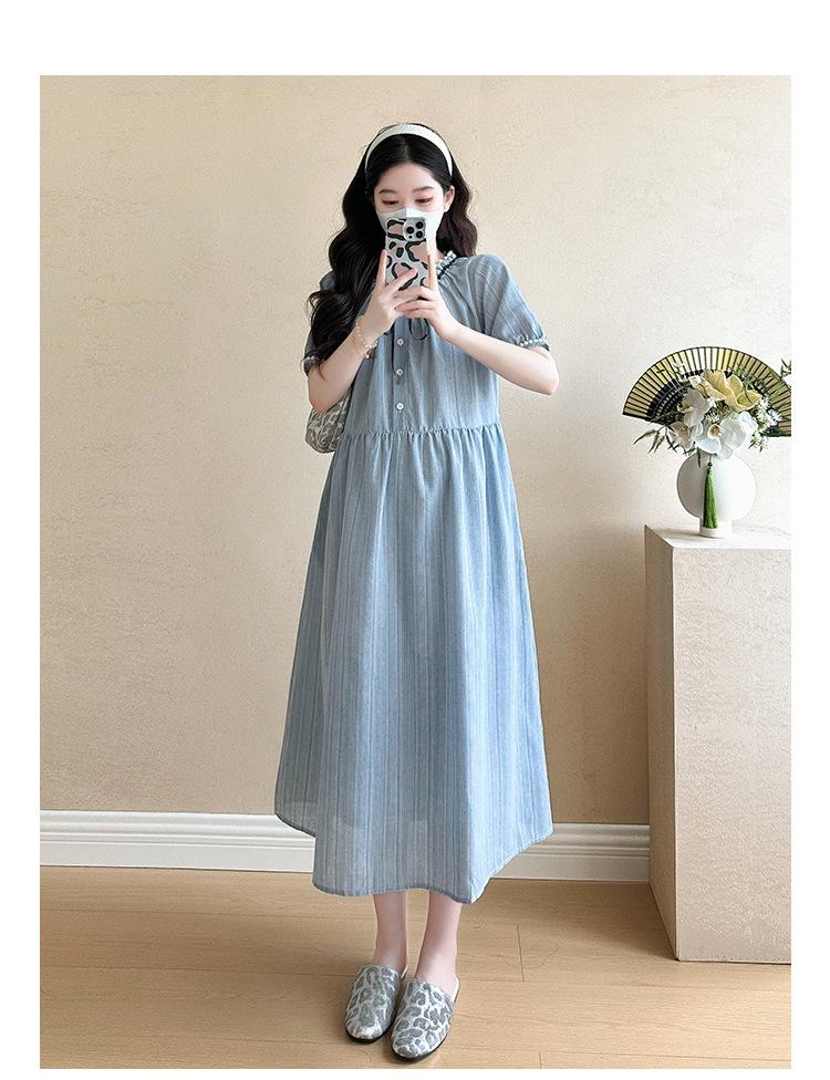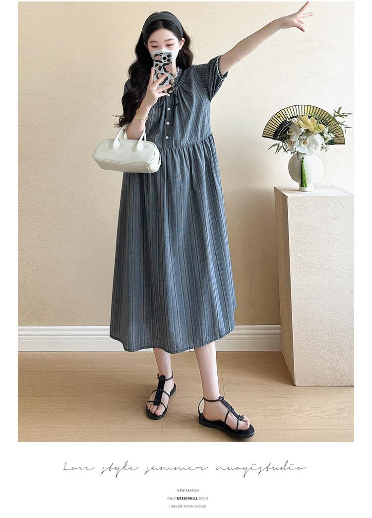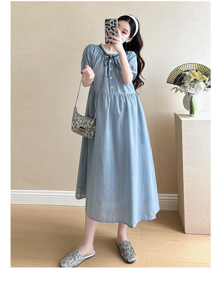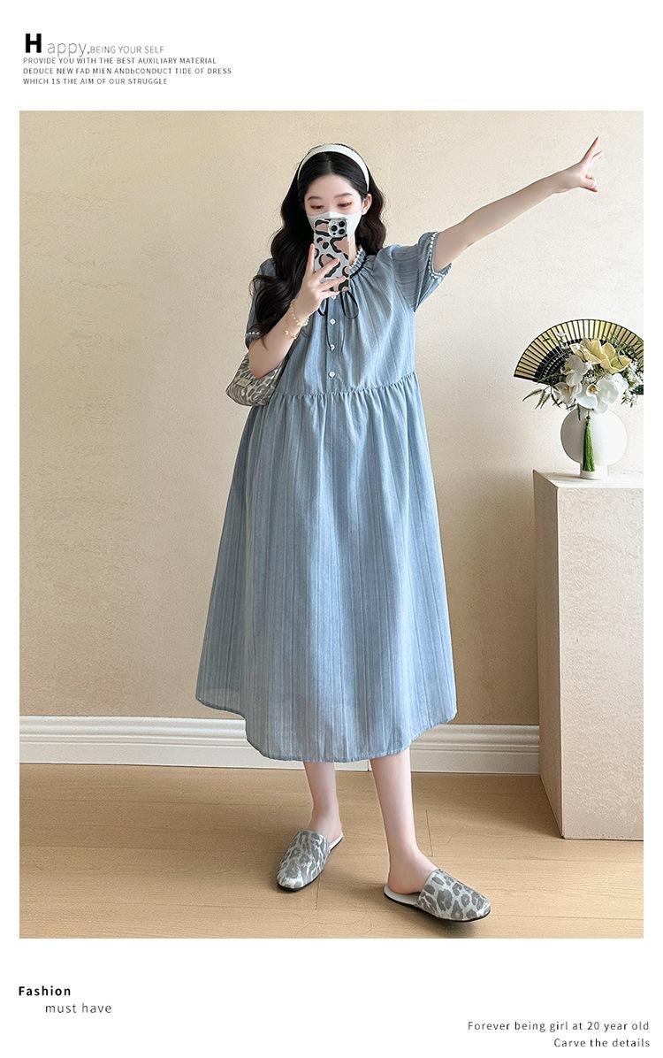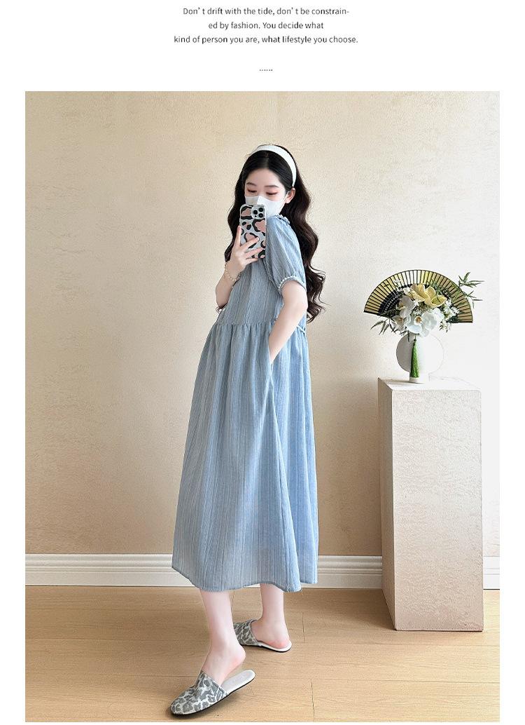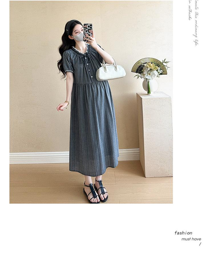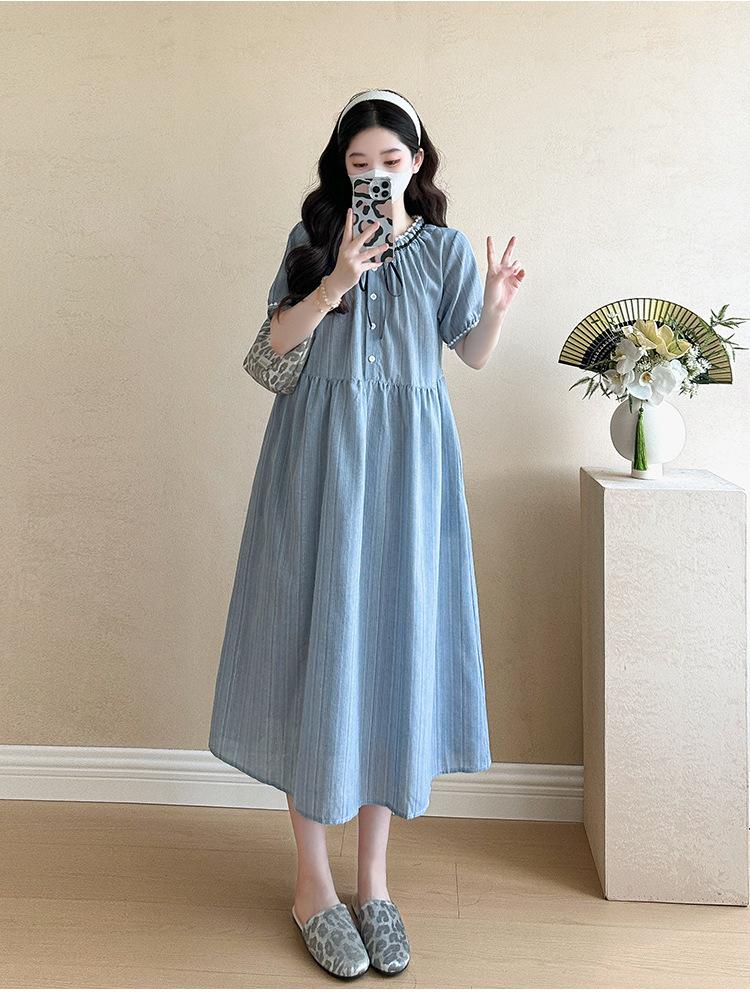 Maternidad 2025 Verano Nuevo Moda Coreana Encaje Dulce Suelto Talla Grande Vestido para Mujeres Embarazadas Lactancia