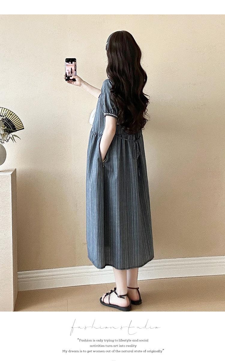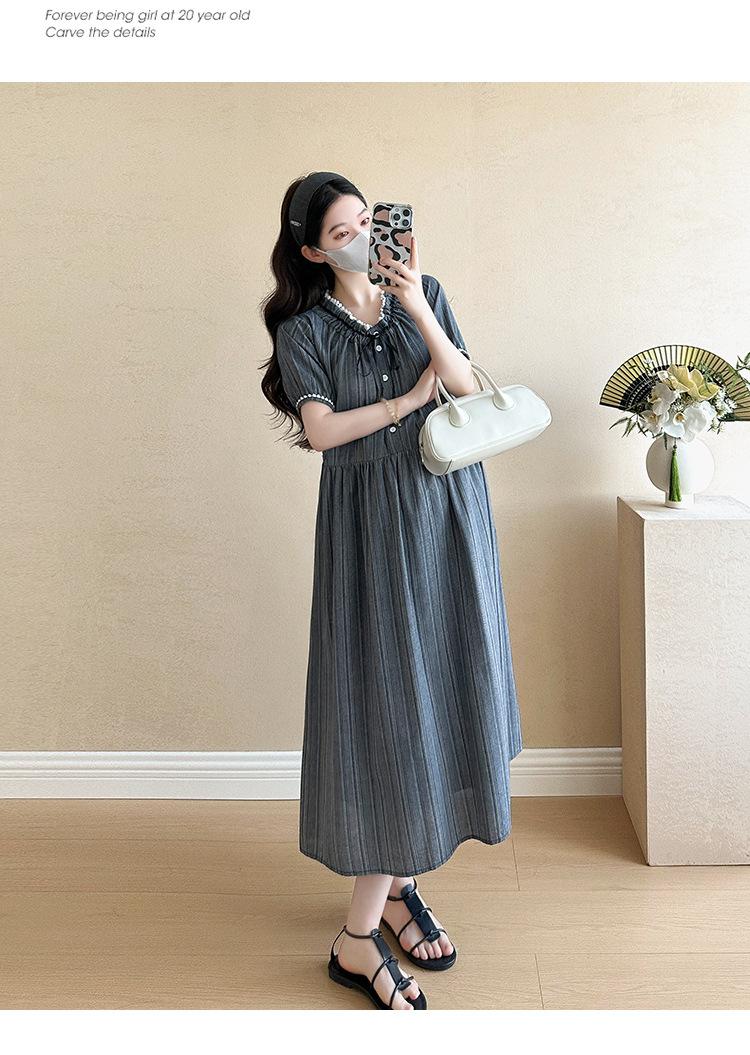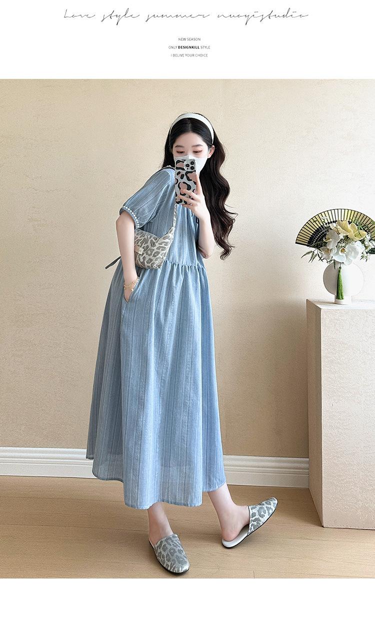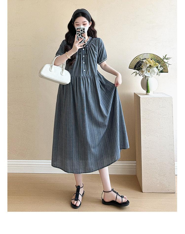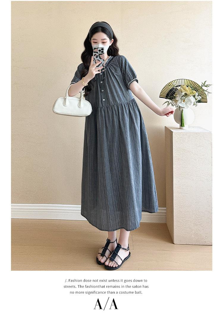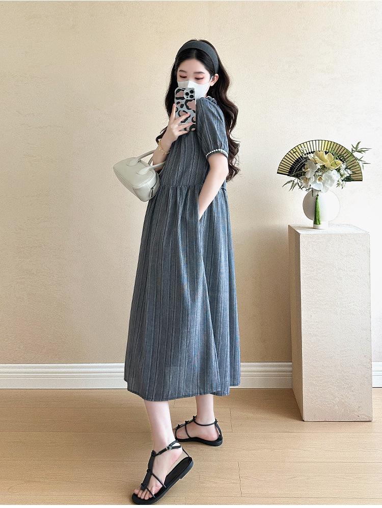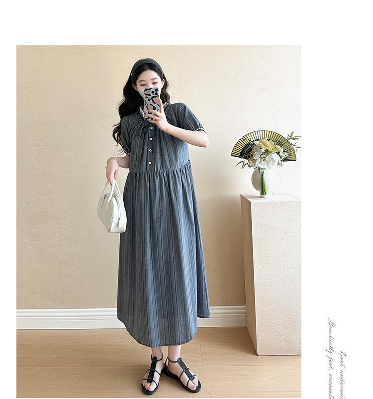 Maternidad 2025 Verano Nuevo Moda Coreana Encaje Dulce Suelto Talla Grande Vestido para Mujeres Embarazadas Lactancia