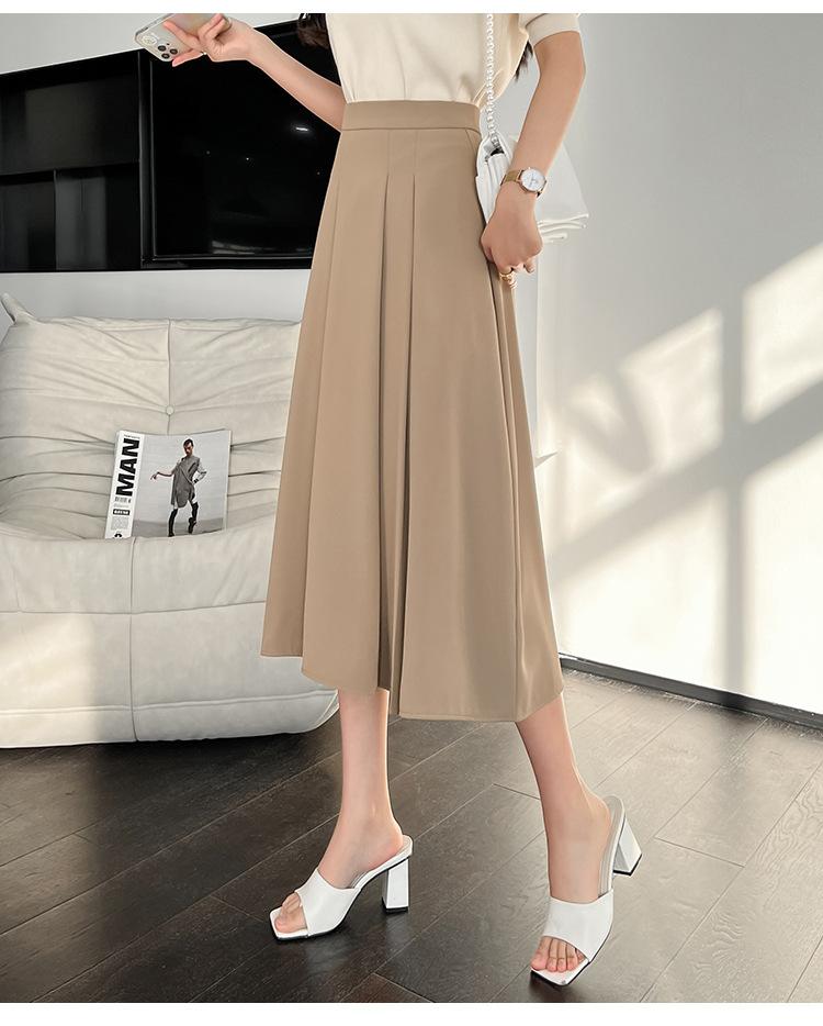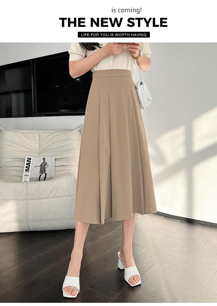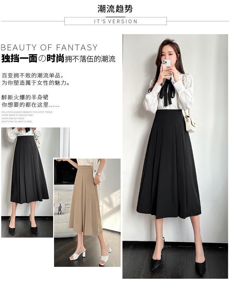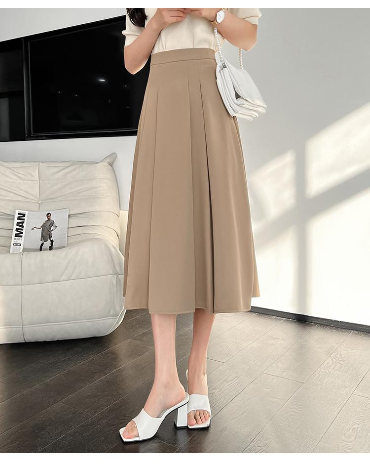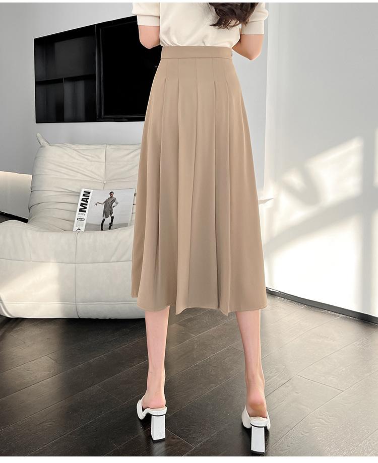 Falda Midi para Mujer en Stock Primavera y Otoño 2025 Cintura Alta Acampanada Línea A Ol Hasta la Rodilla Traje Falda Plisada Paraguas
