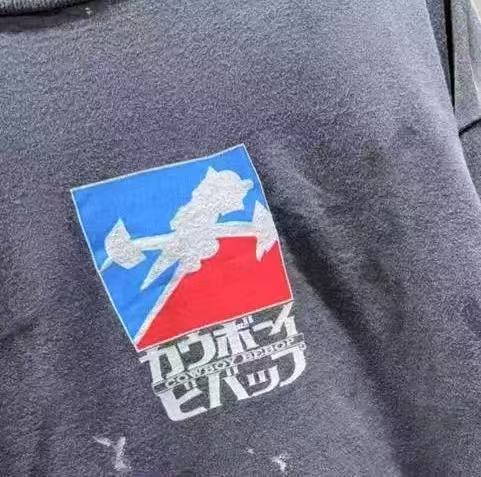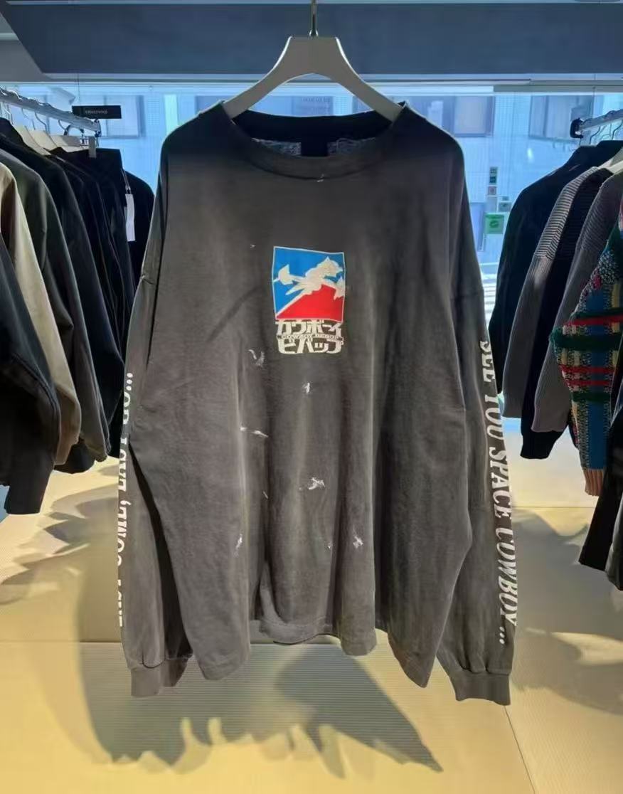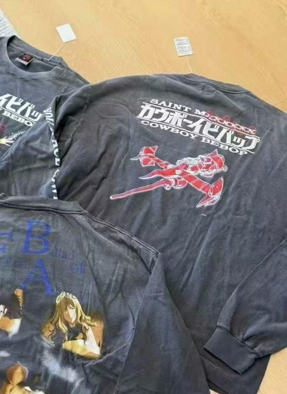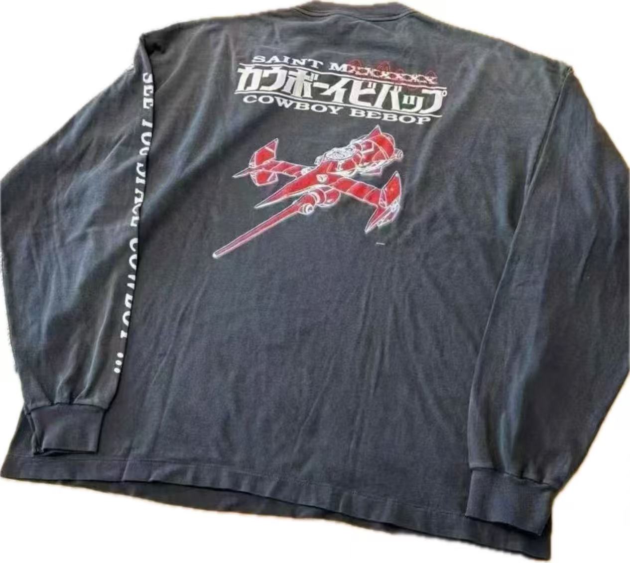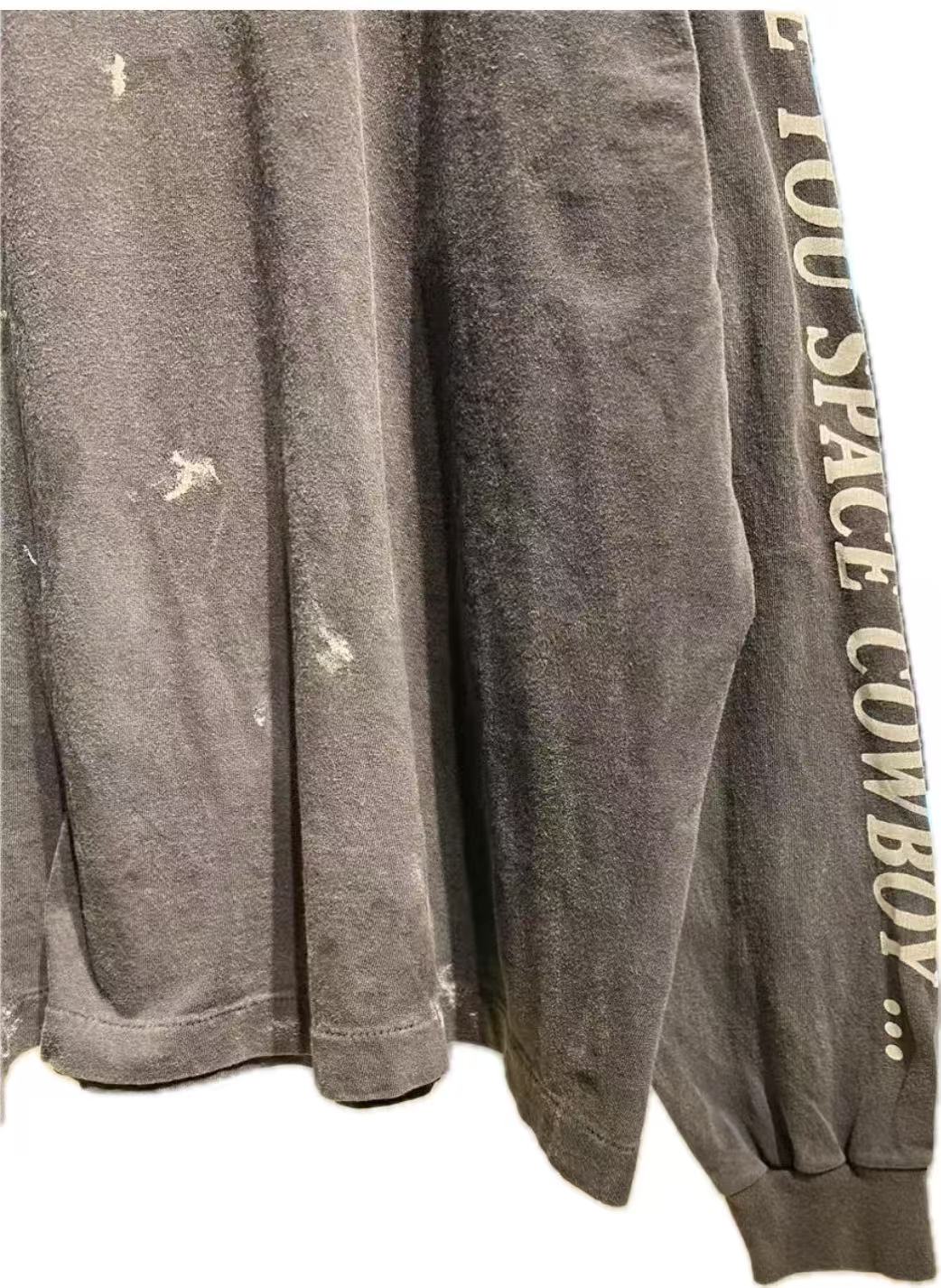 Santo de Miguel Marca de Moda Urbana Americana Cowboy Bebop Lavada y Destruida Camiseta Holgada de Manga Larga para Hombre y Mujer