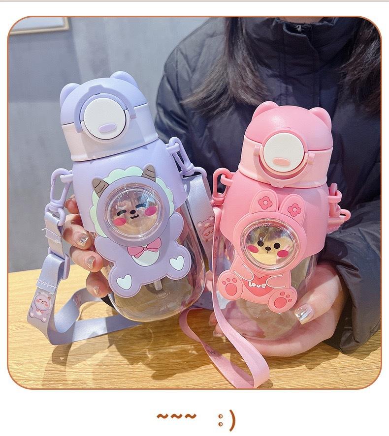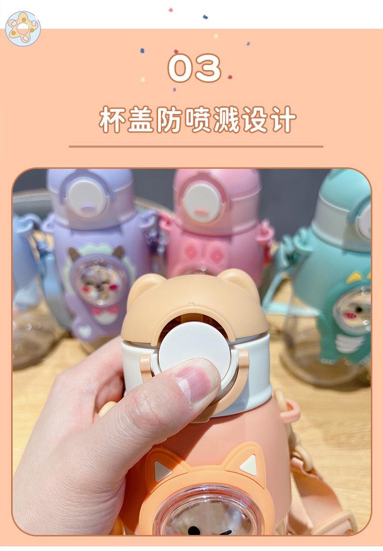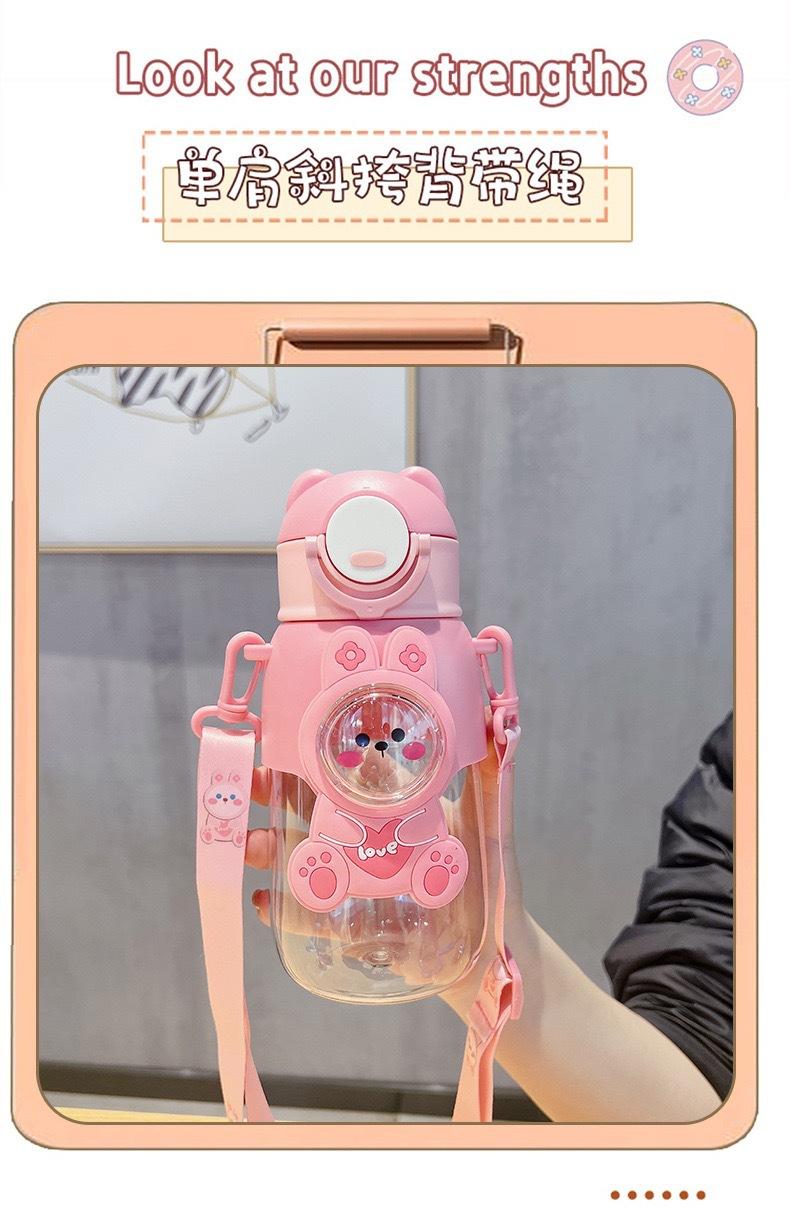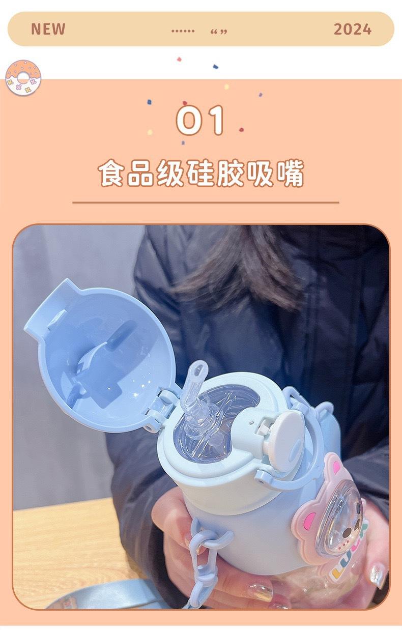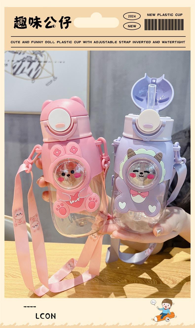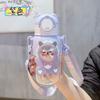 Vaso de plástico con pajita de dibujos animados para estudiantes de primaria Vaso portátil para niños Vaso de agua de verano de alta apariencia y gran capacidad Regalo Venta al por mayor