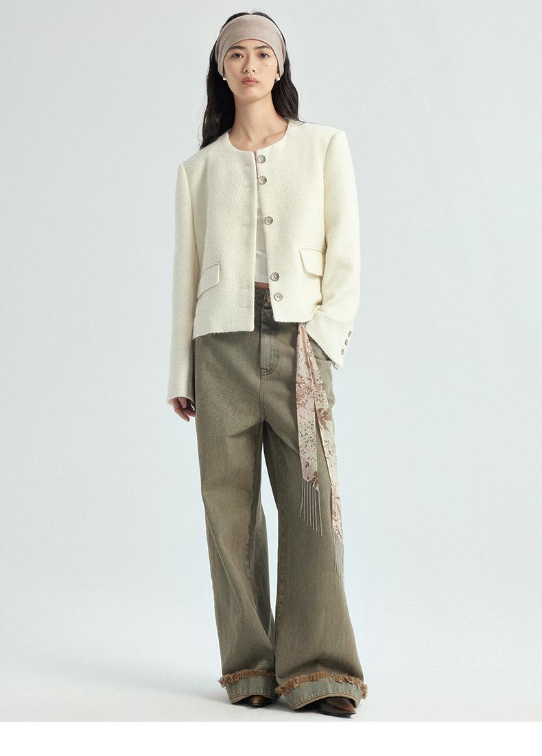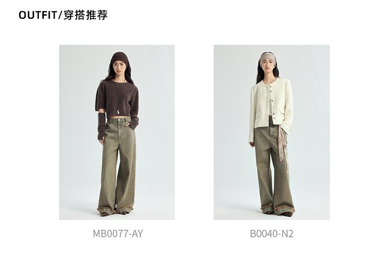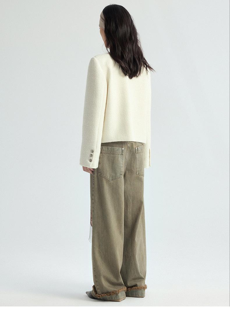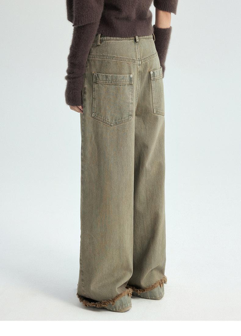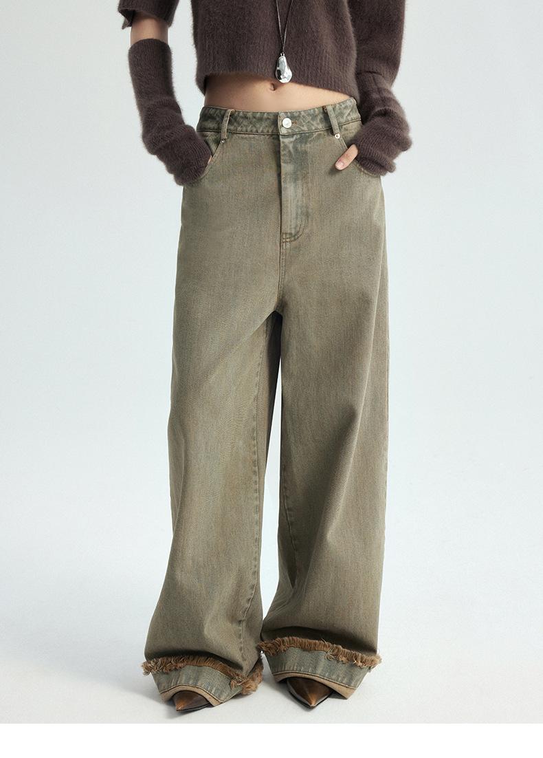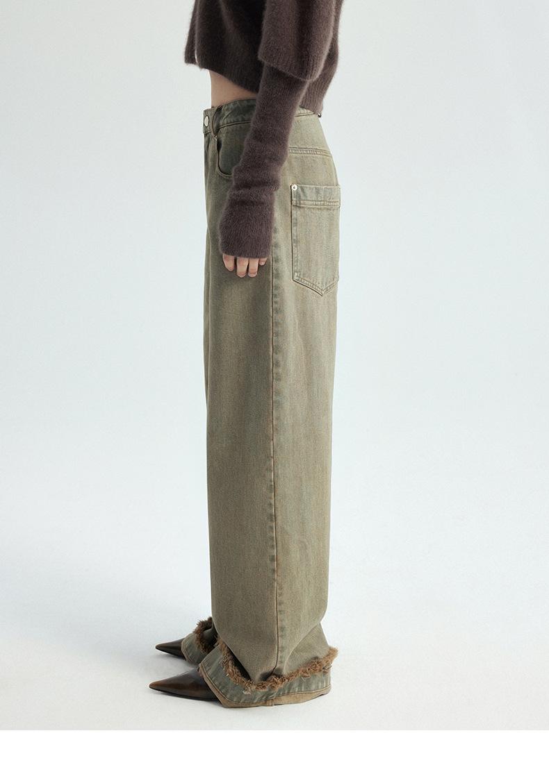 Jeans Vintage de Estilo Americano con Flecos para Mujer, Pantalones de Otoño para Adelgazar de Gama Alta de Pierna Recta para Mujer