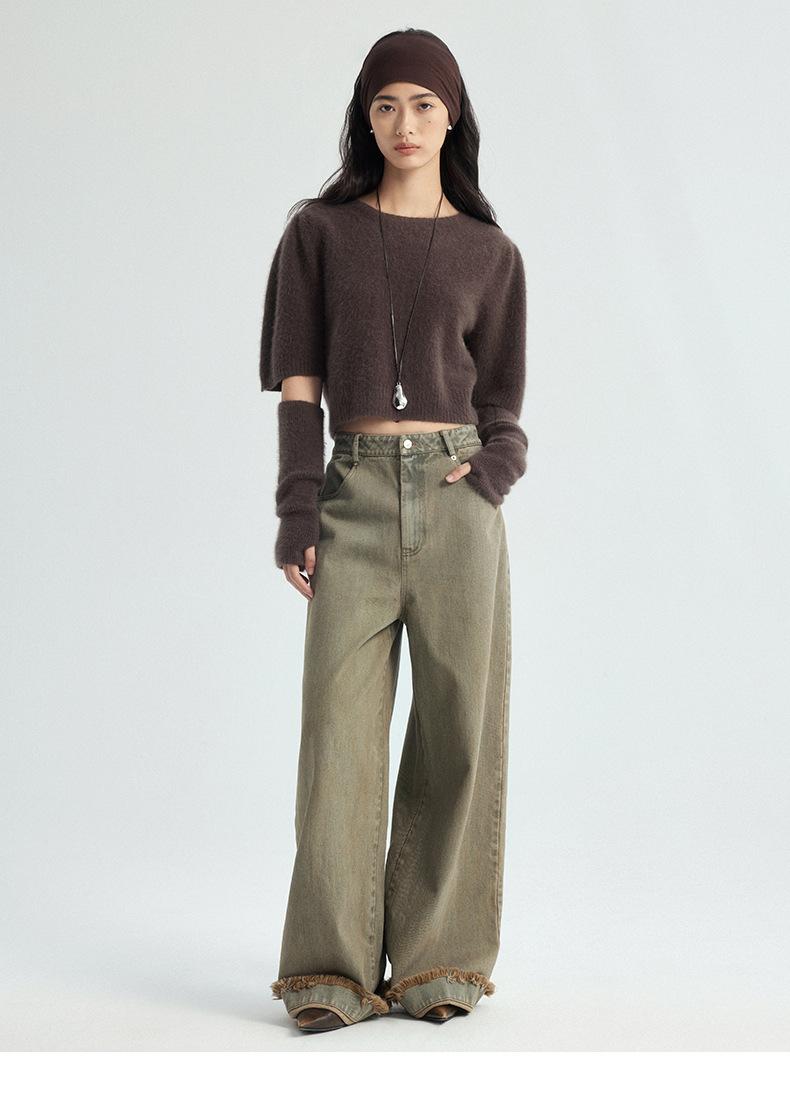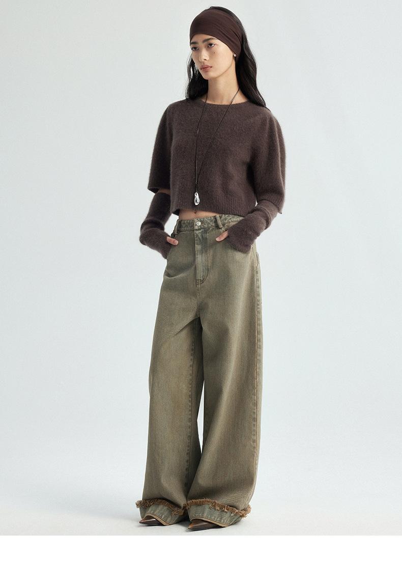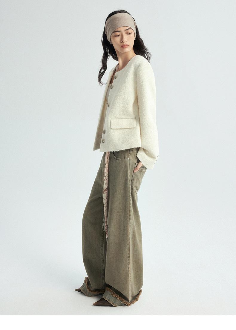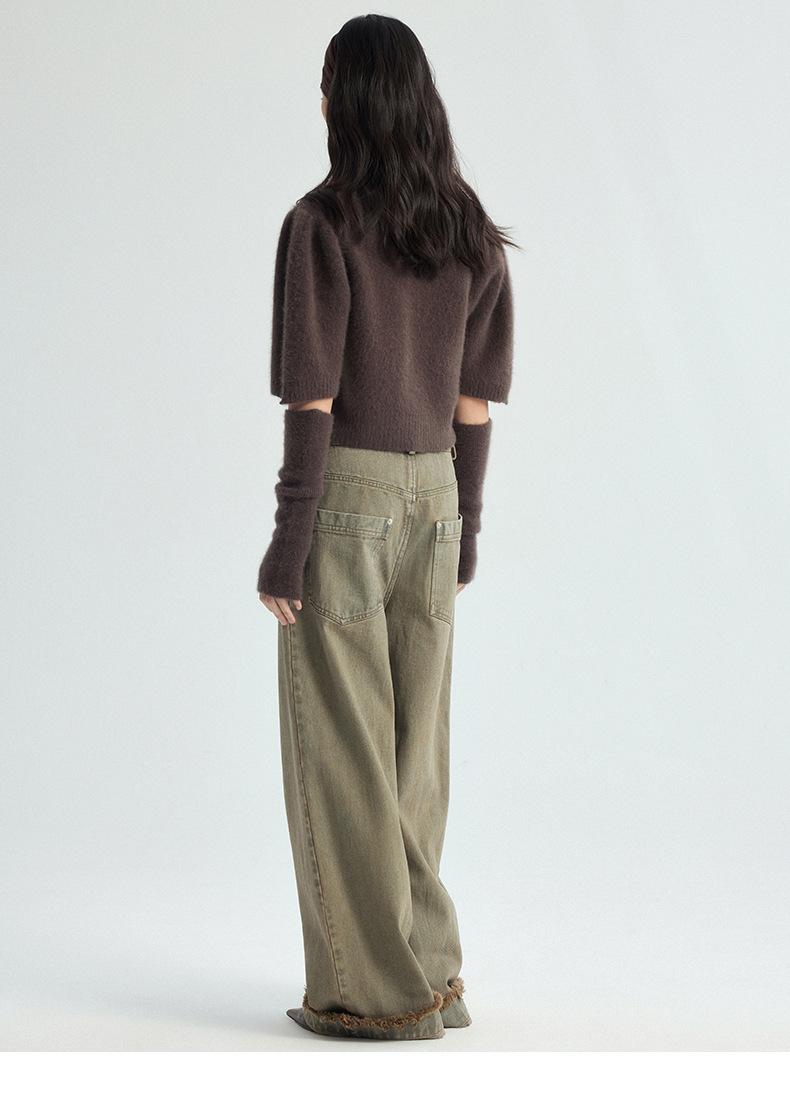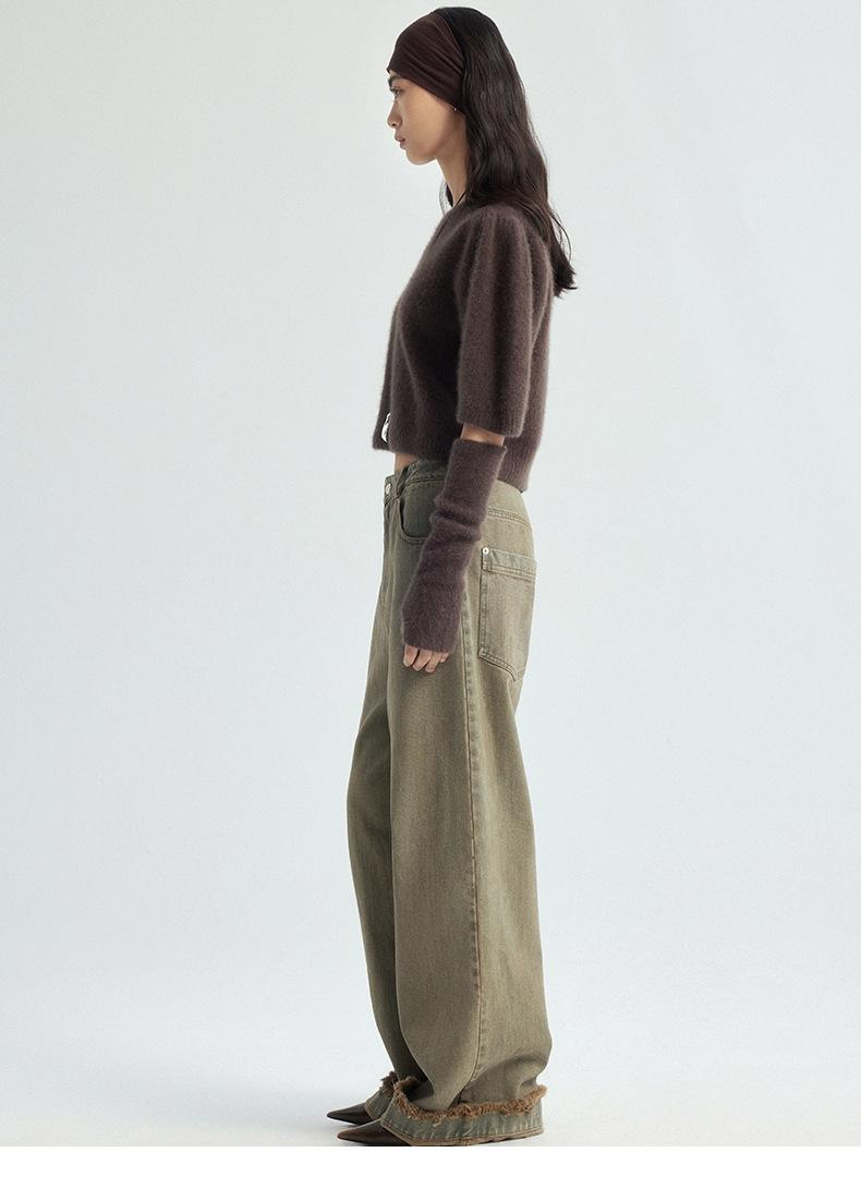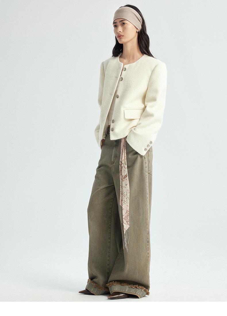 Jeans Vintage de Estilo Americano con Flecos para Mujer, Pantalones de Otoño para Adelgazar de Gama Alta de Pierna Recta para Mujer