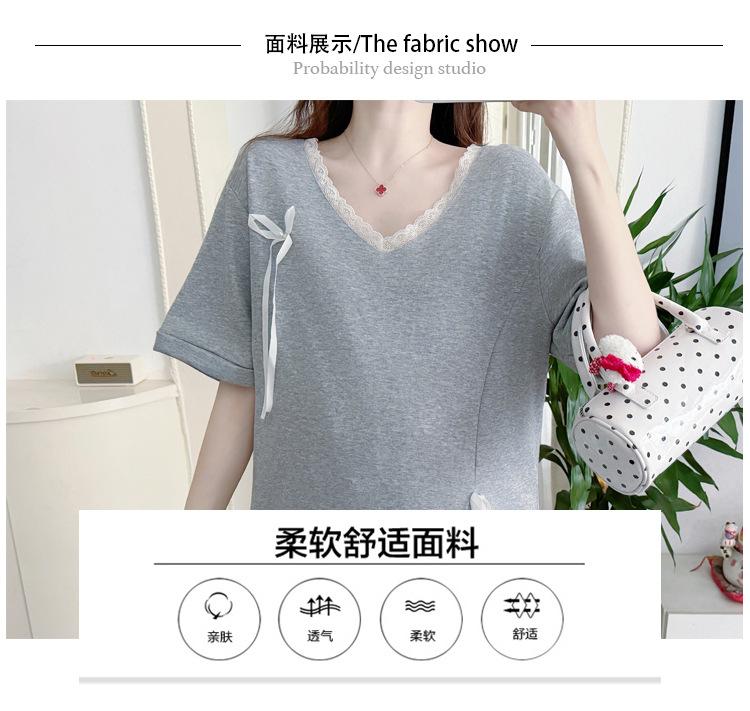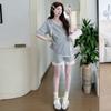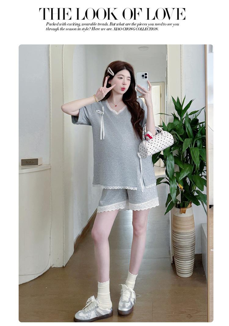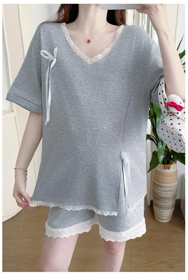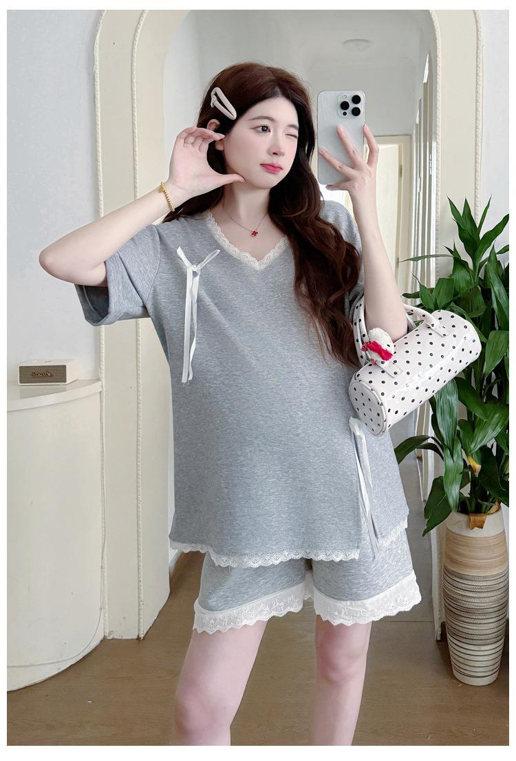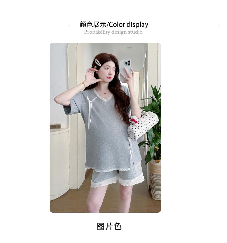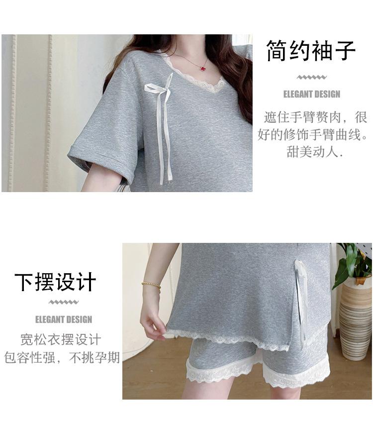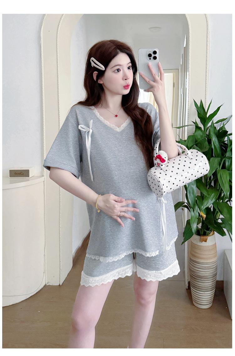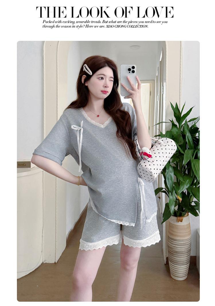 Ropa de Maternidad 2025 Verano Nuevo Estilo Encaje Empalmado Reductor de Edad Versátil Top Holgado Shorts Traje de Maternidad de Dos Piezas