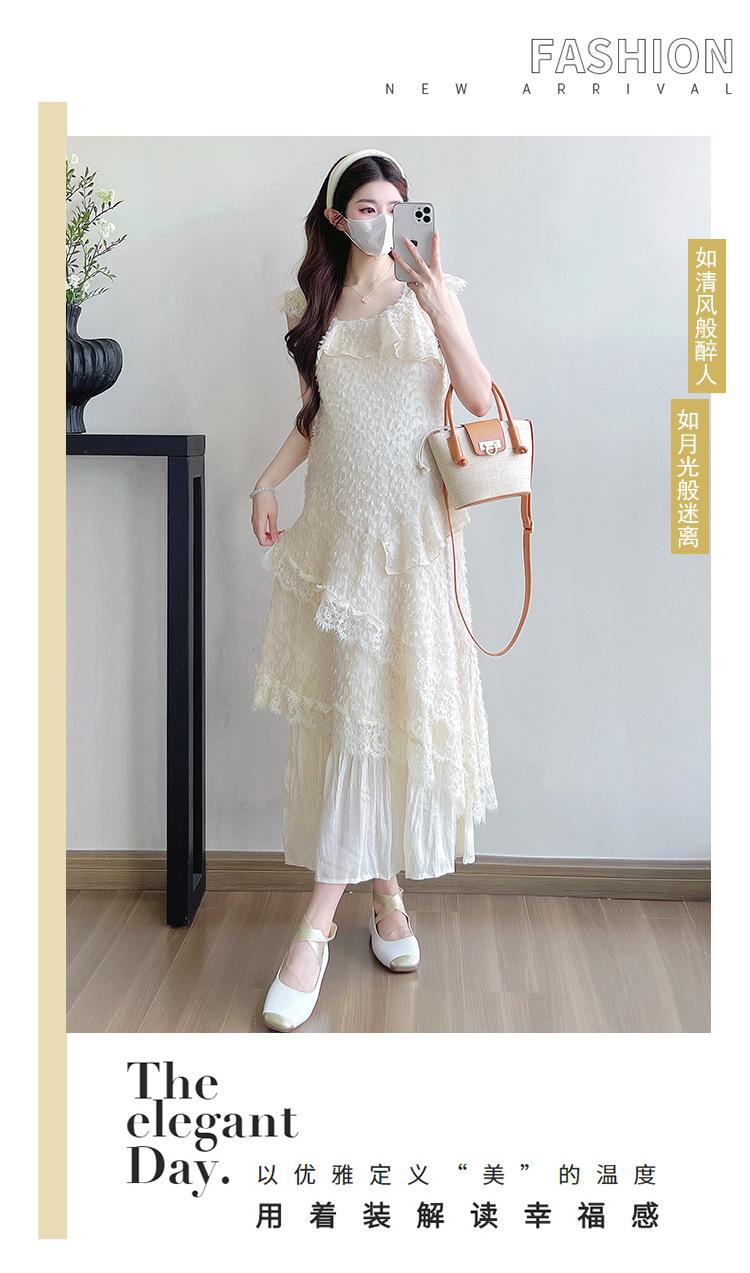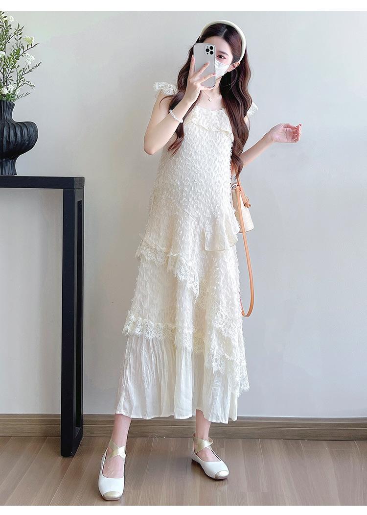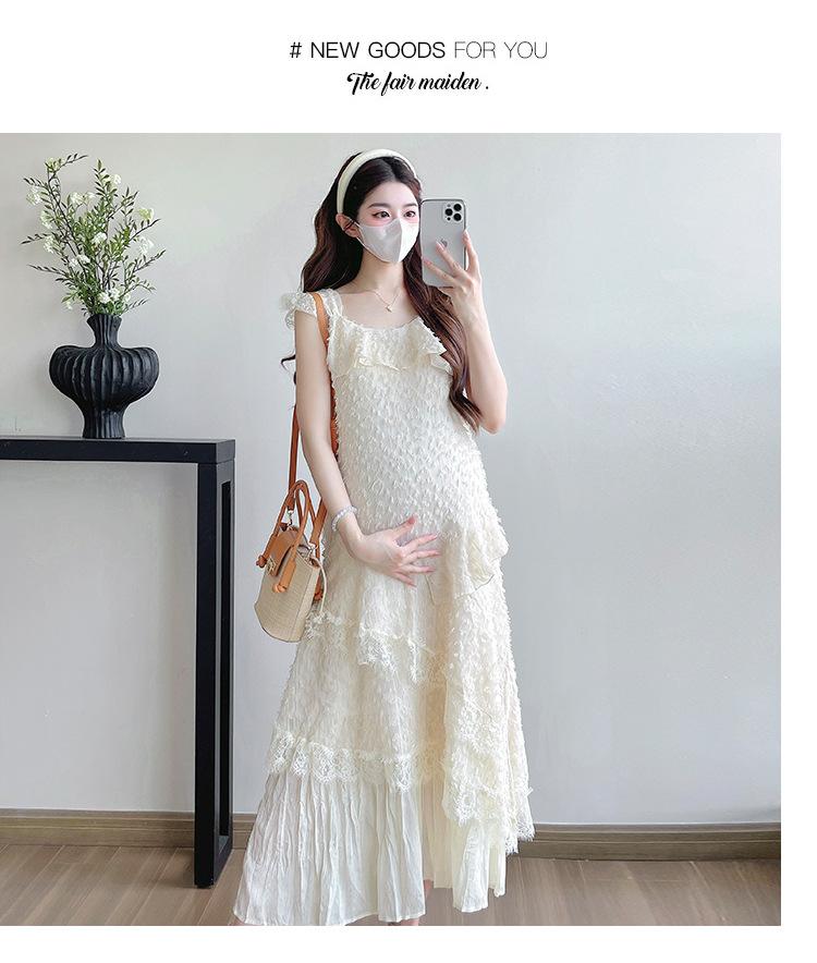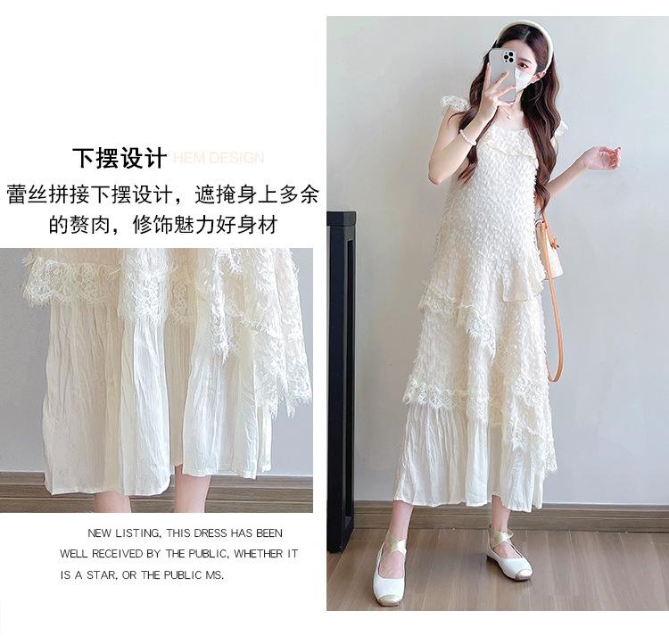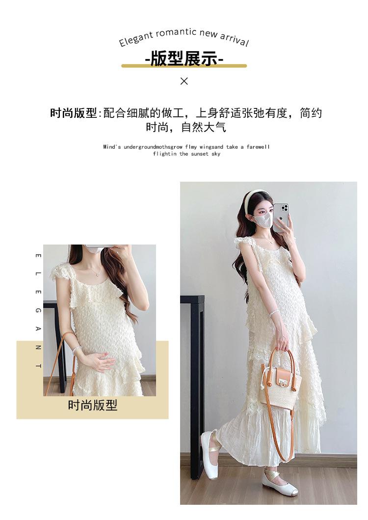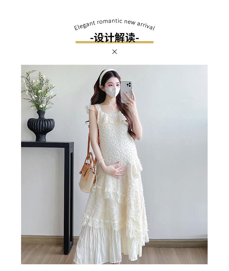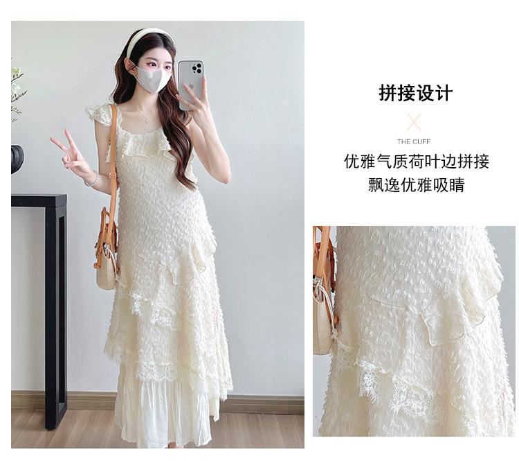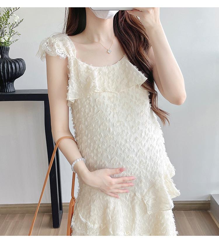 Ropa de Maternidad Verano 2025 Nueva Moda Encaje Dulce Mangas Cortas Volantes Falda de Pastel Talla Grande Vestido de Maternidad