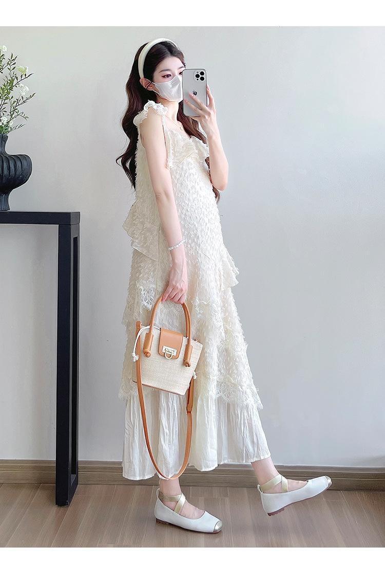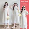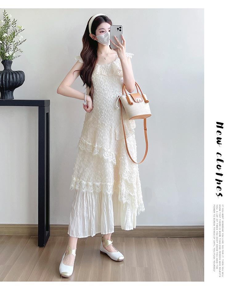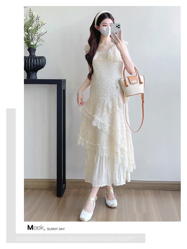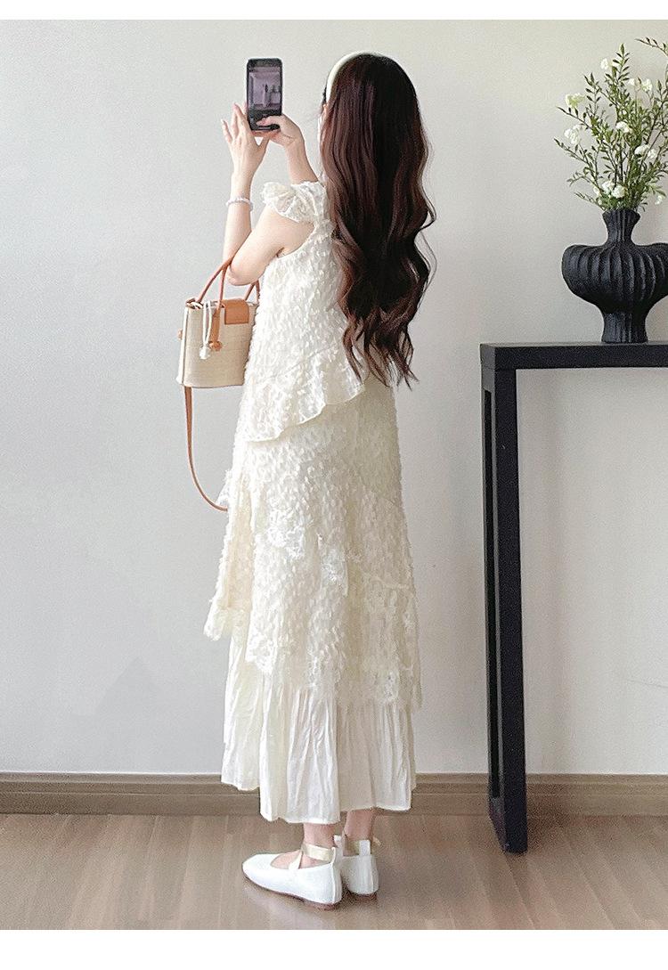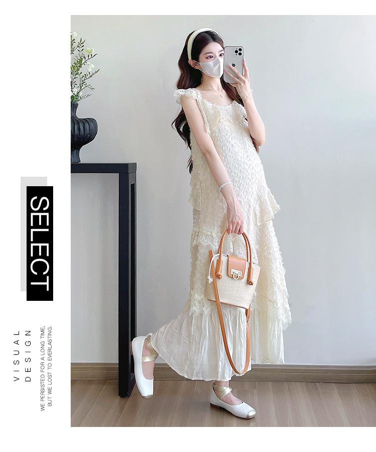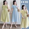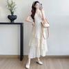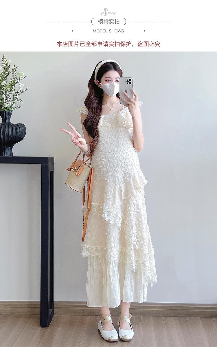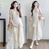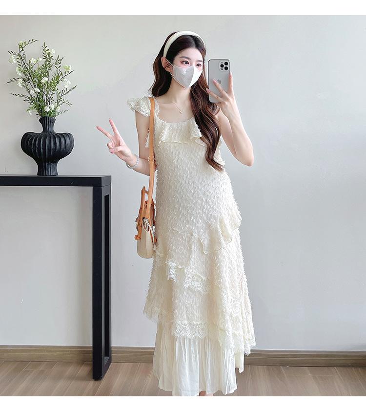 Ropa de Maternidad Verano 2025 Nueva Moda Encaje Dulce Mangas Cortas Volantes Falda de Pastel Talla Grande Vestido de Maternidad