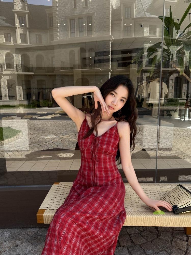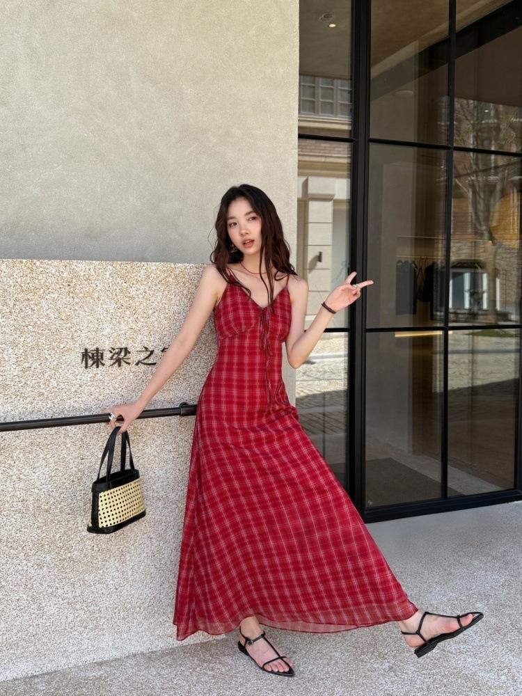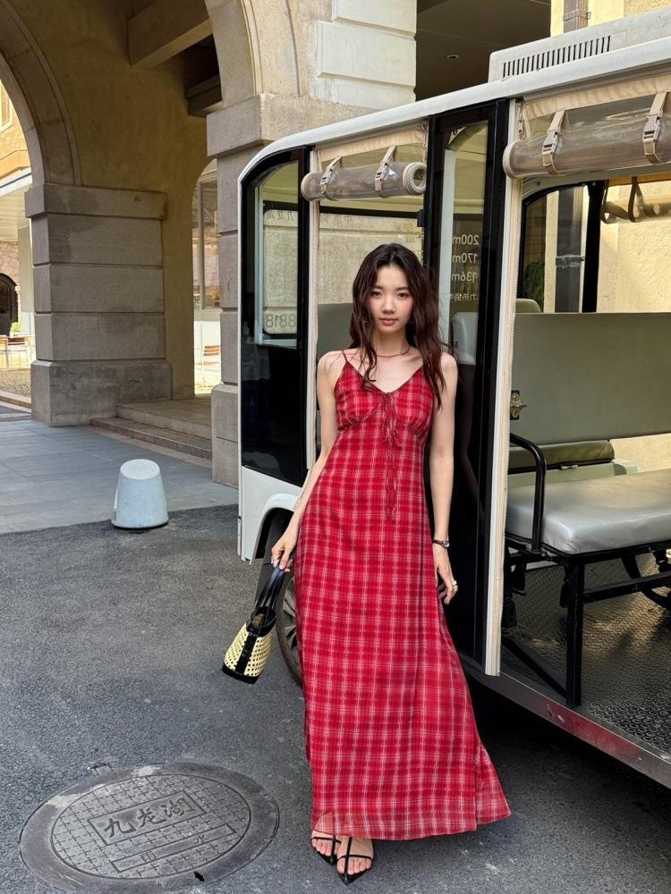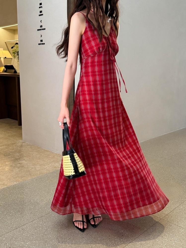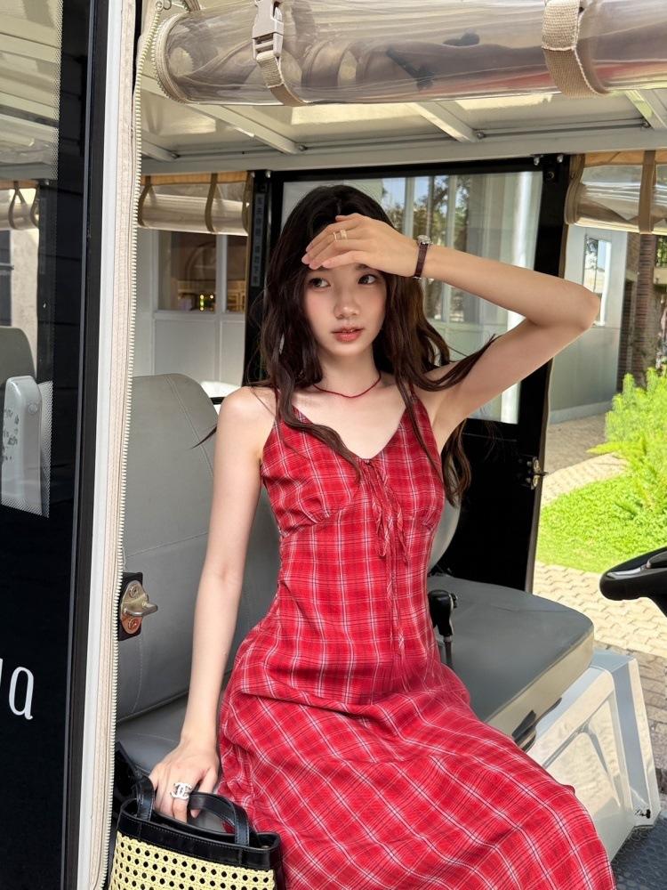Foto Real de Falda de Tirantes Estilo Retro 2025 Verano Elegante Tirantes Adelgazante y Blanco Vestido Elegante