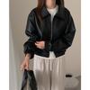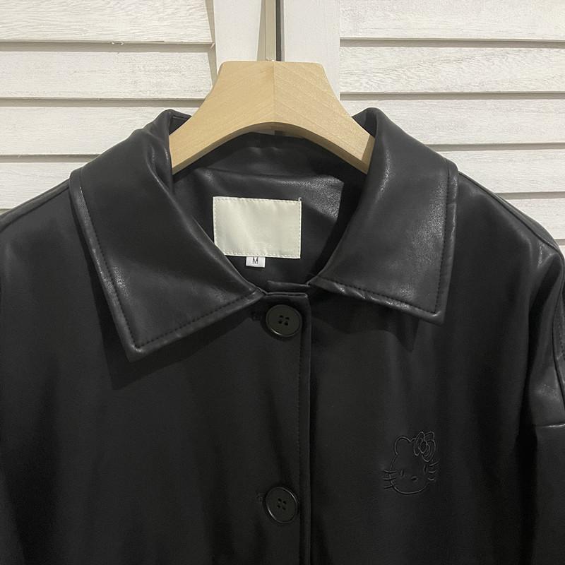 Abrigo chaqueta de PU acolchado grueso de solapa retro abrigo de cuero para mujer chica dulce y picante